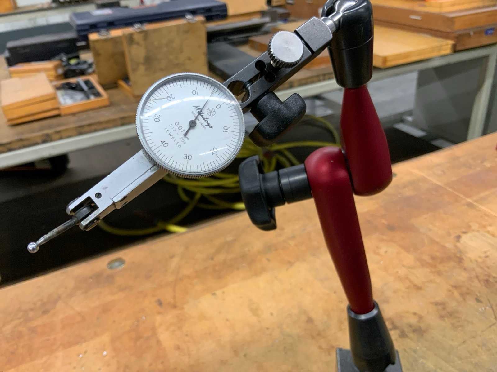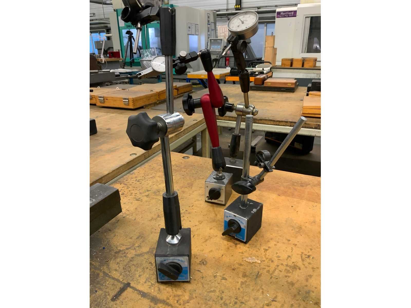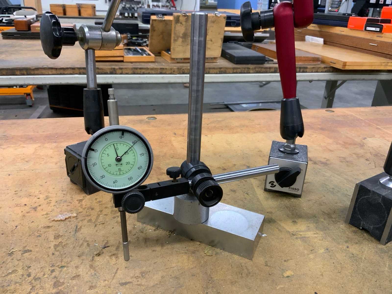Diverse meetklokken op standaard waarvan enkele magnetische standaards Nee Merk: Mitutoyo