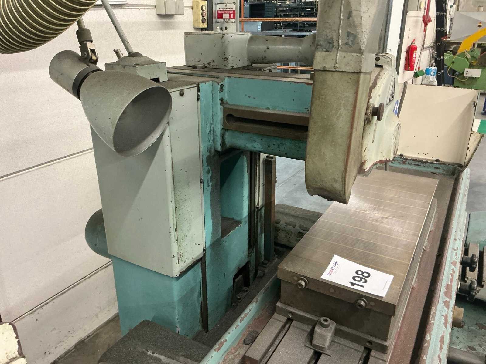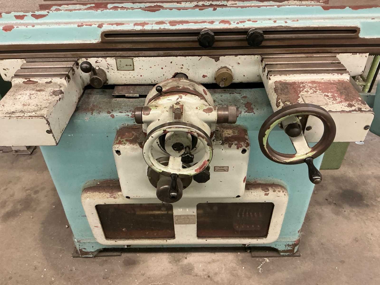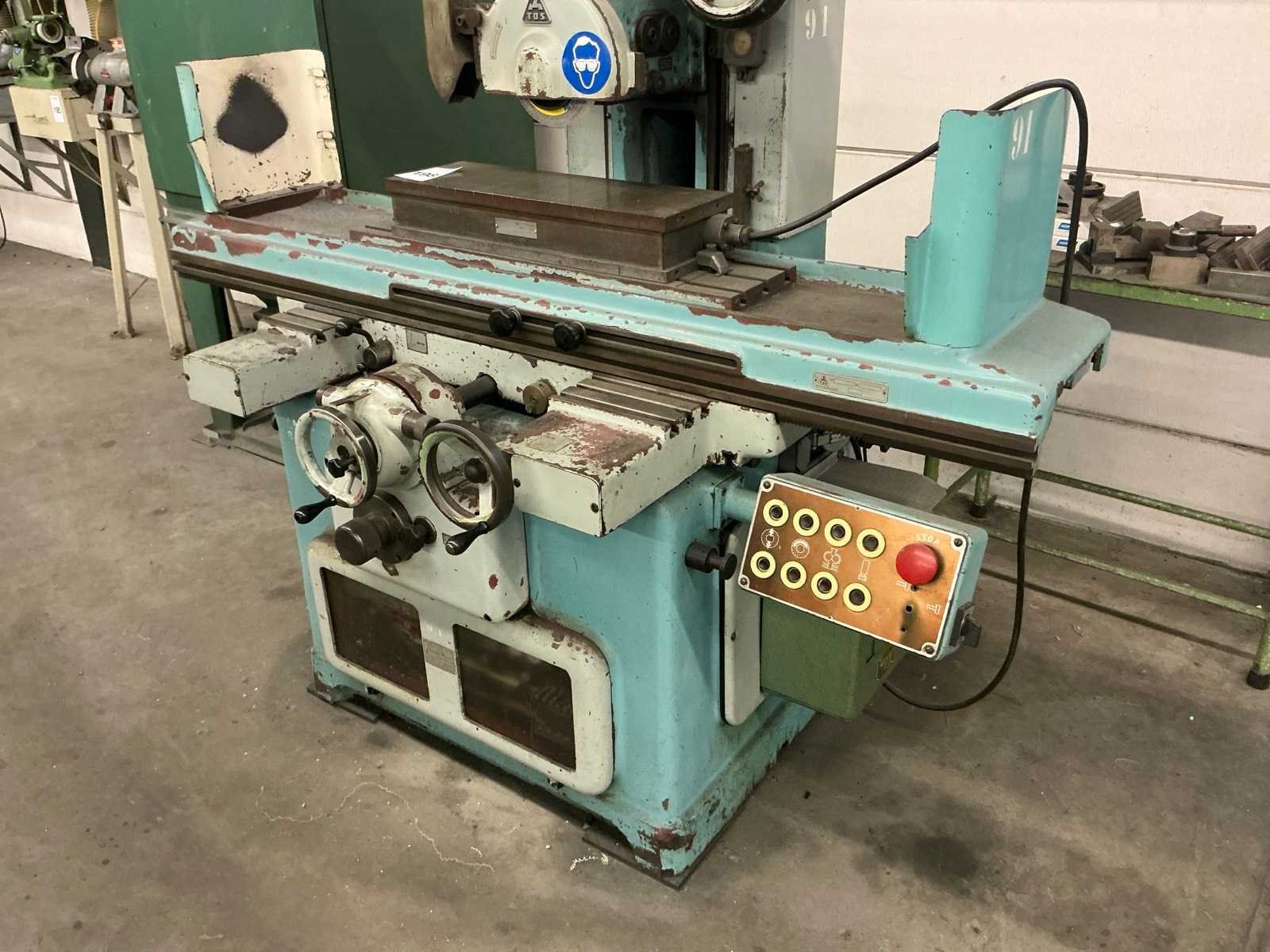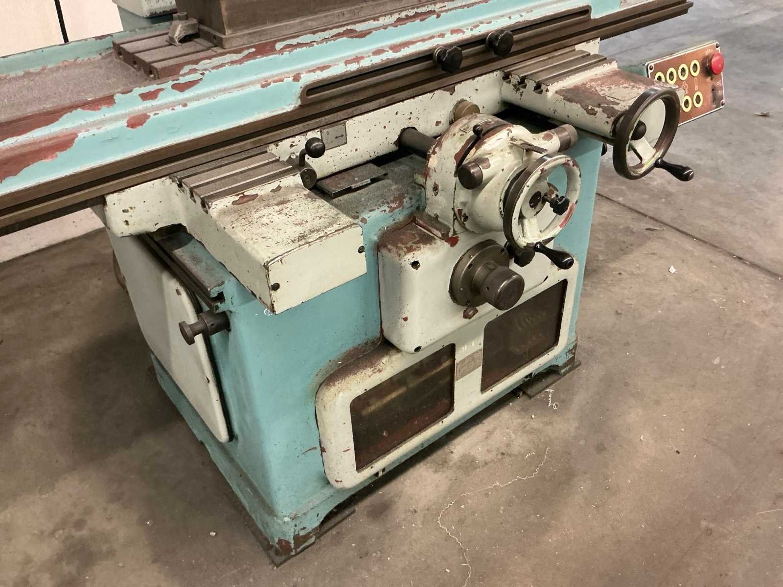 Voorzien van magnetische tafel afm ca. 600x200 mm Alsmede diverse opspangereedschappen en metalen bijzettafel afm ca. 80x40x84 cm Nee Merk: TOS Type: BPH-20 NA Bouwjaar: 1974 Serienummer: 503466 Tafel afmeting l: 830mm Tafel afmeting b: 20mm Slijpsteen Ø: 250mm Magnetische opspantafel afm.: 600mm Aansluiting: 400V Machinegewicht: 1700kg Afmeting l: 1800mm Afmeting b: 1100mm Afmeting h: 1500mm