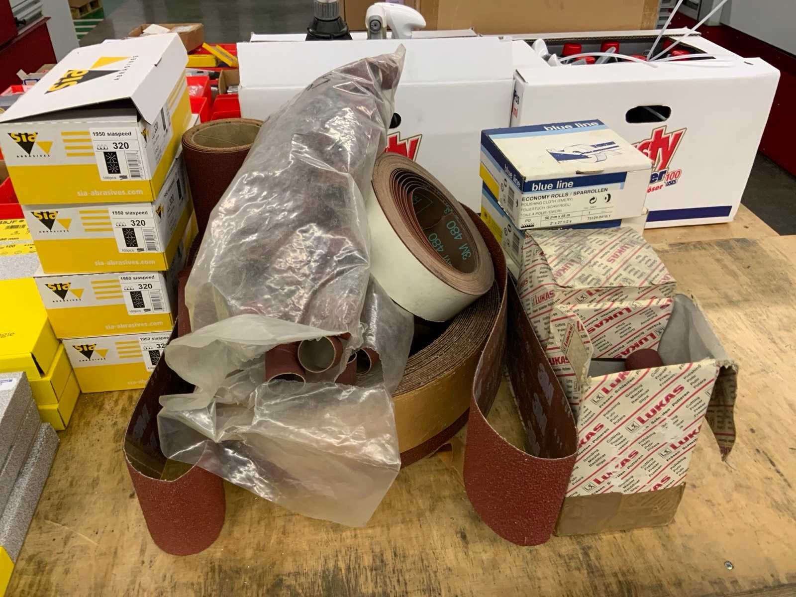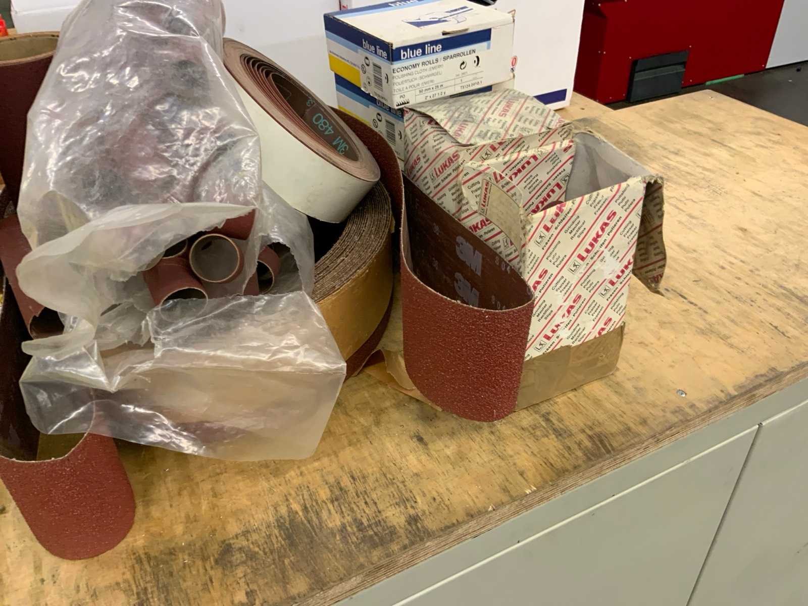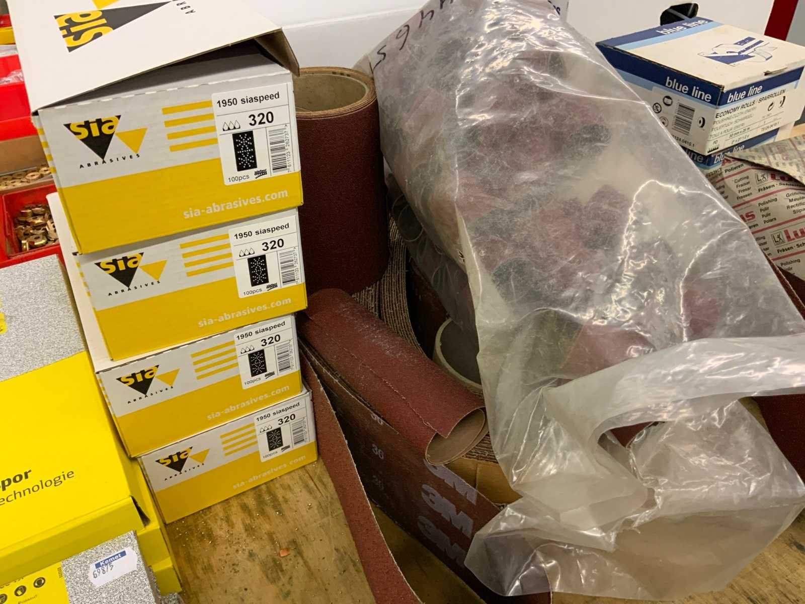 Diverse korrelgrootte o.a. 100, 150, 240,320, 400, 500 en 600 Nee Merk: Klingspor, Sia, 3M Model: KL385JF Lengte: 2800 Breedte: 2300