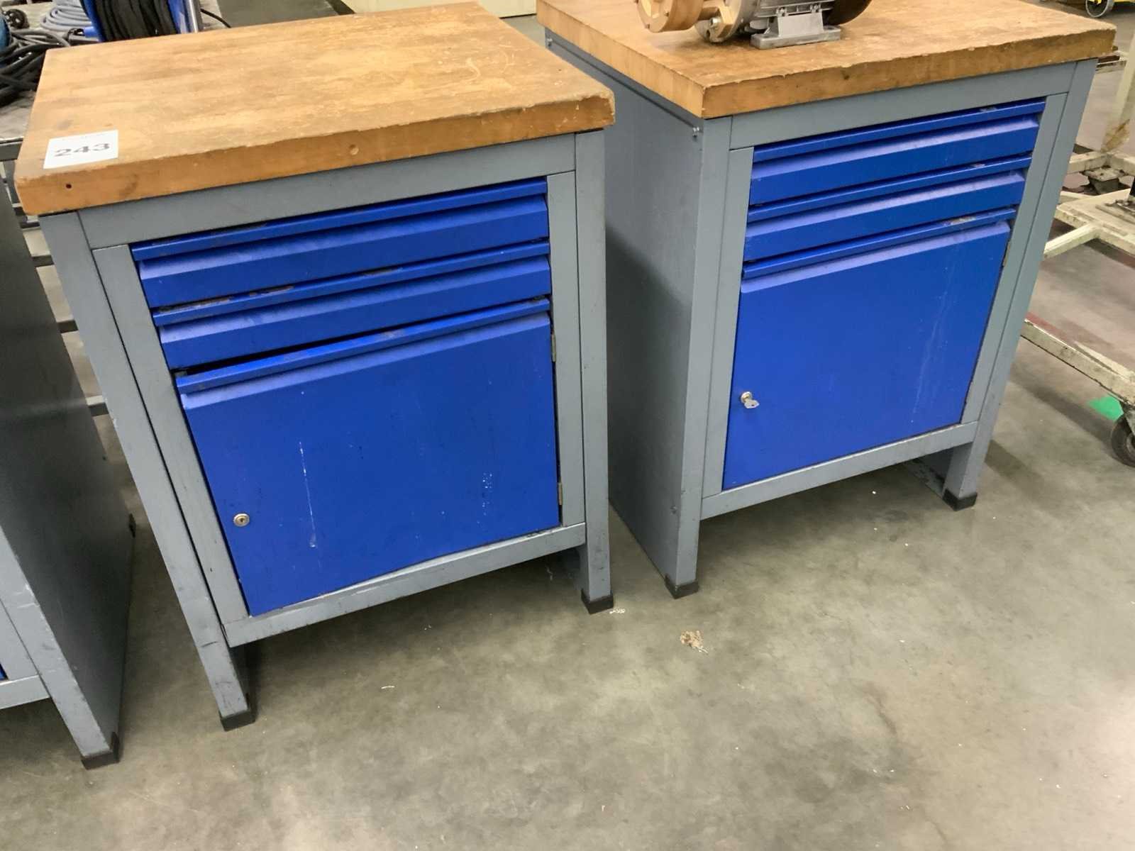 Voorzien van kast en 2 lades, met inhoud Nee Breedte: 580mm Lengte: 650mm Hoogte: 870mm Materiaal: Metaal, hout