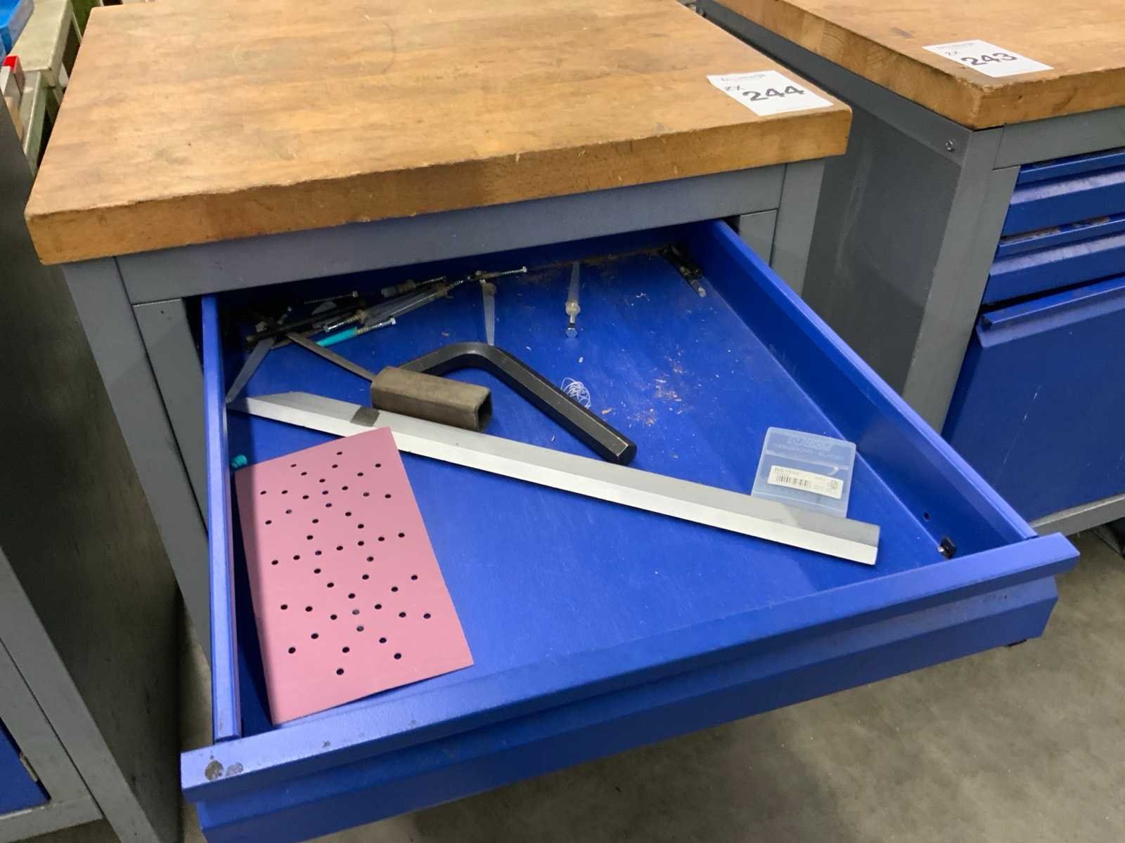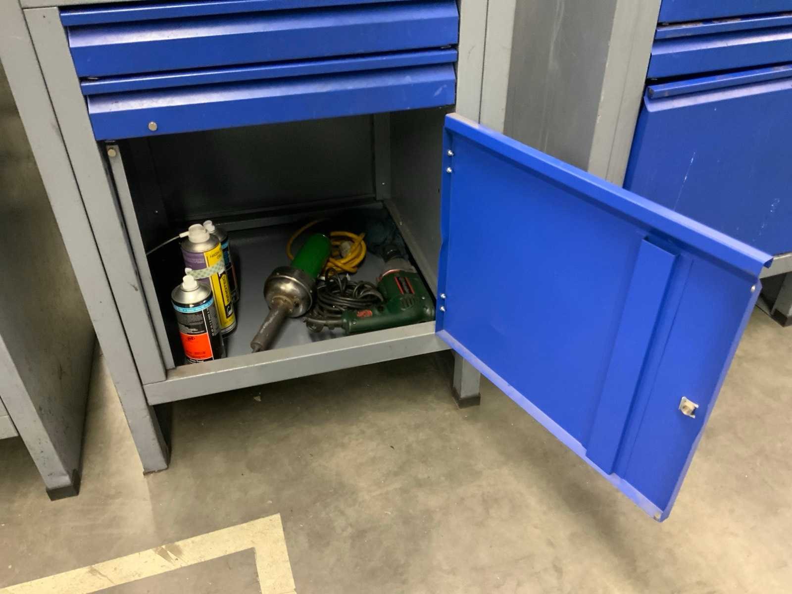 Voorzien van kast en 2 lades, met inhoud Nee Breedte: 580mm Lengte: 650mm Hoogte: 870mm Materiaal: Metaal, hout