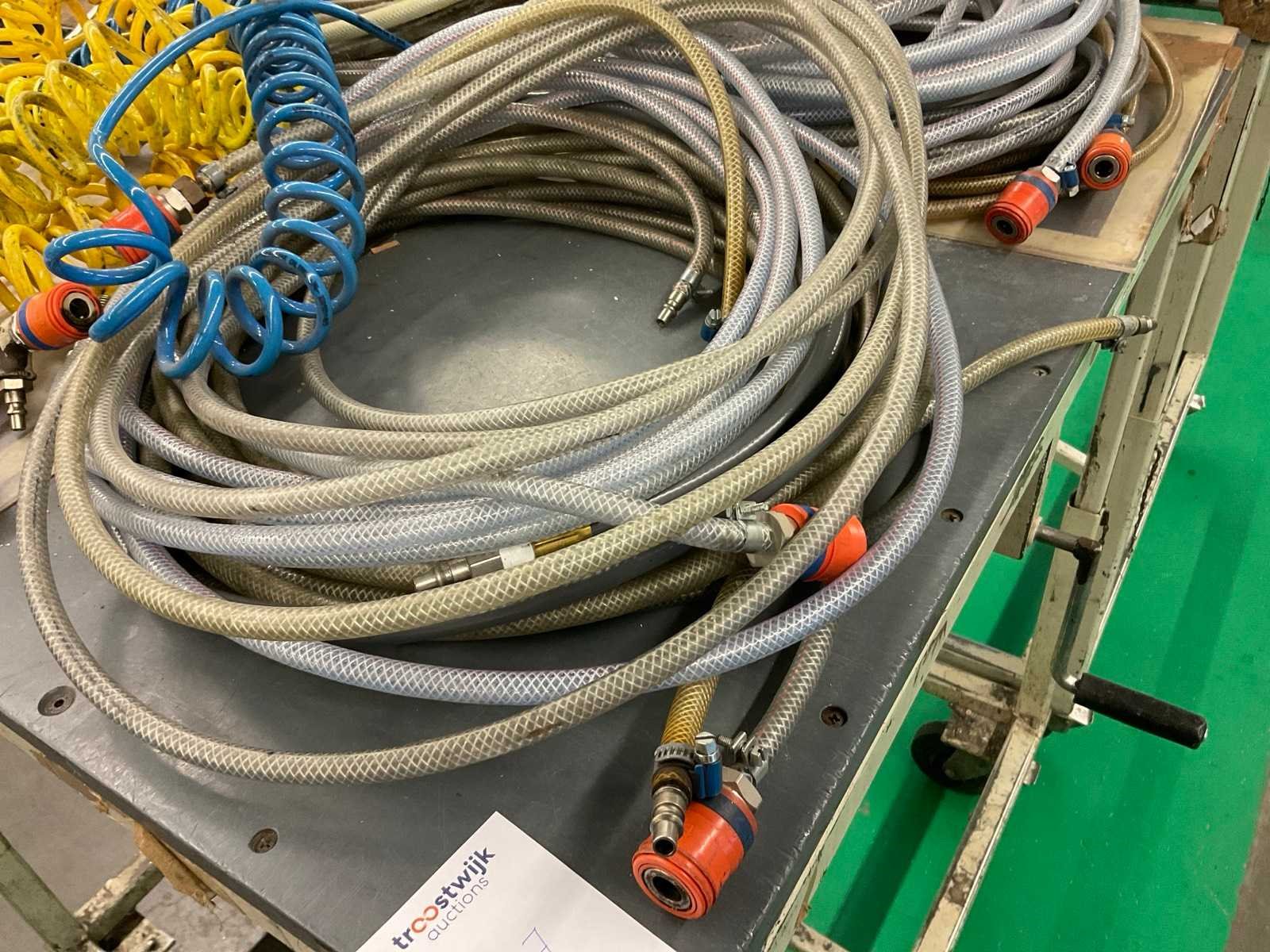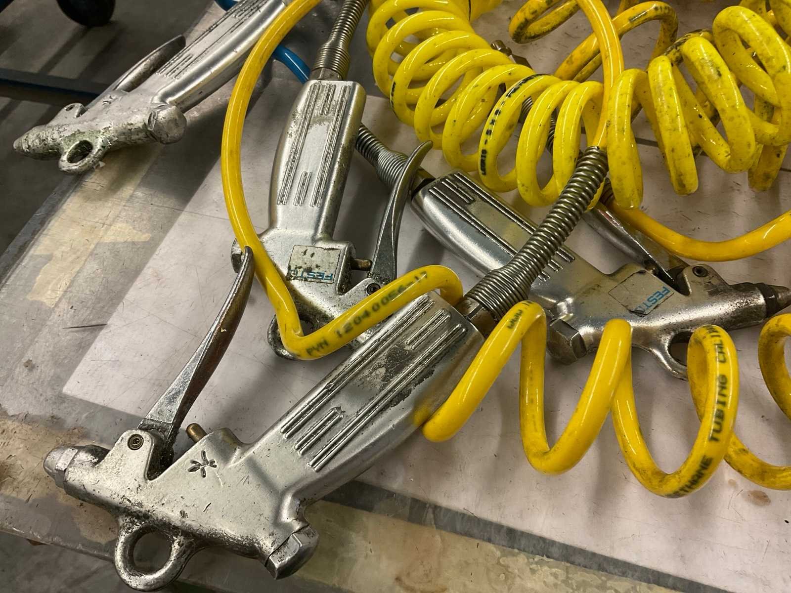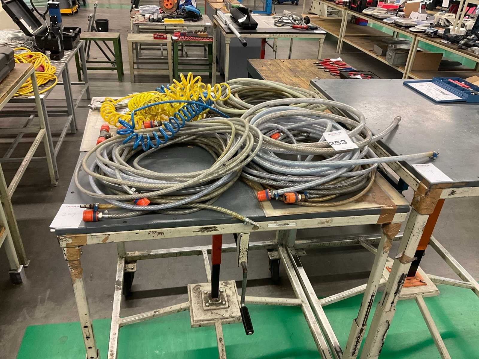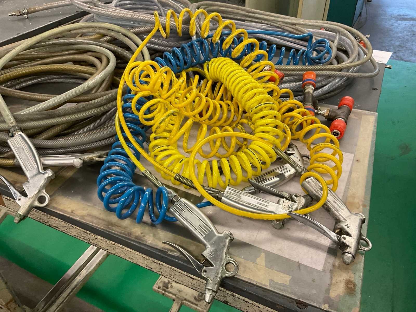 Diverse lengtes luchtslangen met koppelingen/aansluitingen, t-stukken en blaaspistolen ca. 6 stuks, werktafel niet inbegrepen Nee Merk: Rectus, Festo