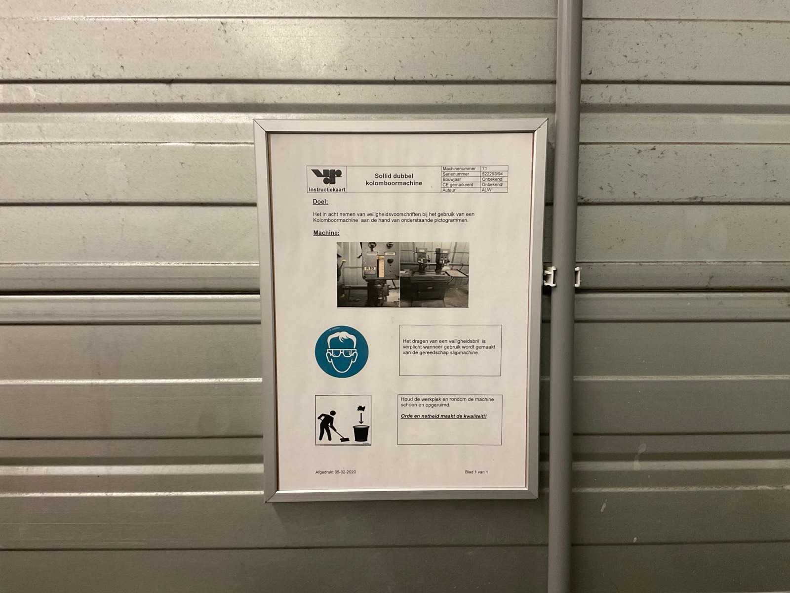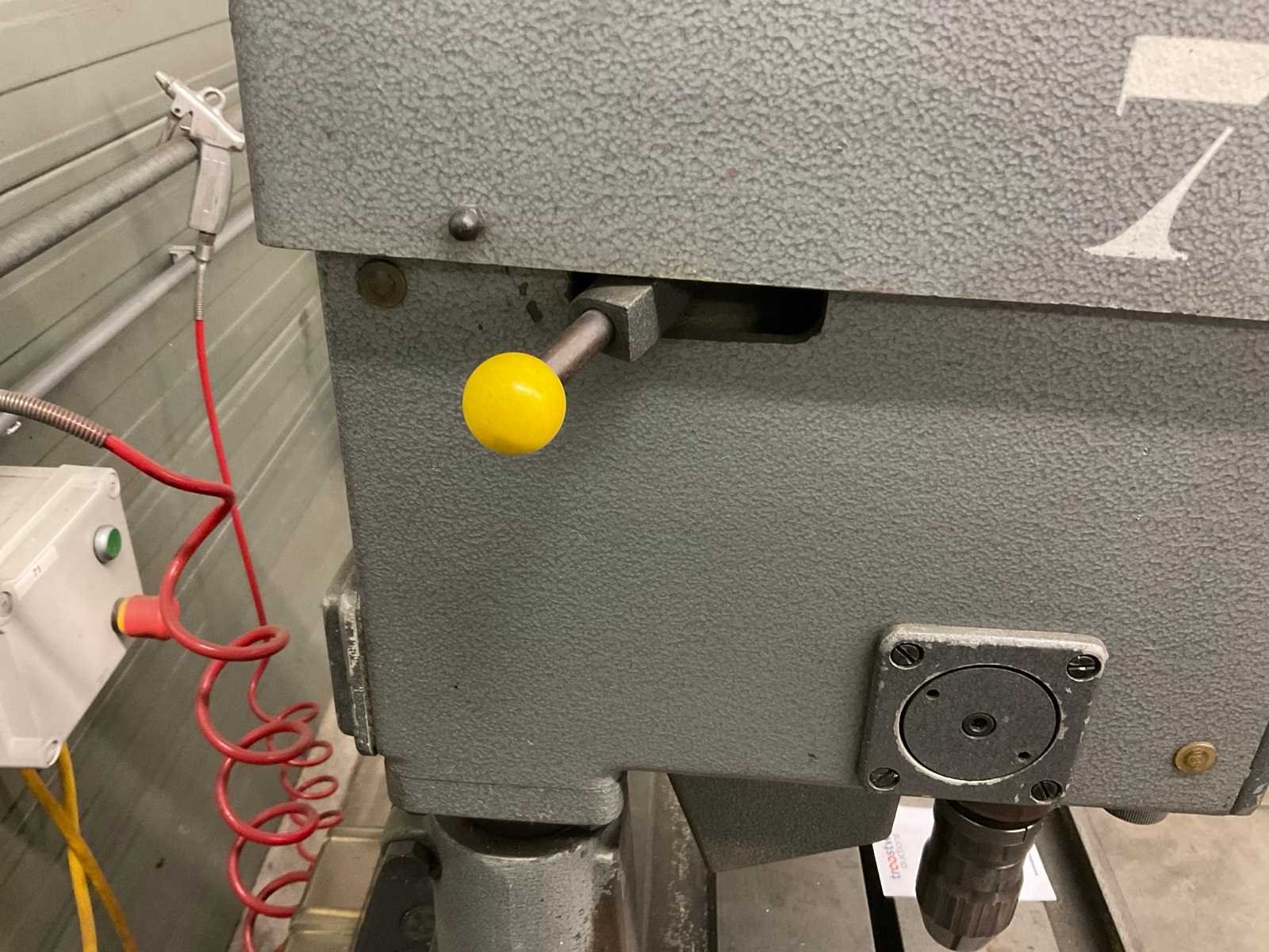 Solid dubbele kolomboormachine, aansluiting 380v, totale afmeting 116 x 60 x 145 cm Nee Merk: Solid Type: R10 Serienummer: 522293/94 Spindelsnelheid van n =: 368rpm Spindelsnelheid tot n =: 2800rpm Tafel afmeting l: 600mm Tafel afmeting b: 300mm Aansluiting: 380V Afmeting l: 1160mm Afmeting b: 600mm Afmeting h: 1450mm