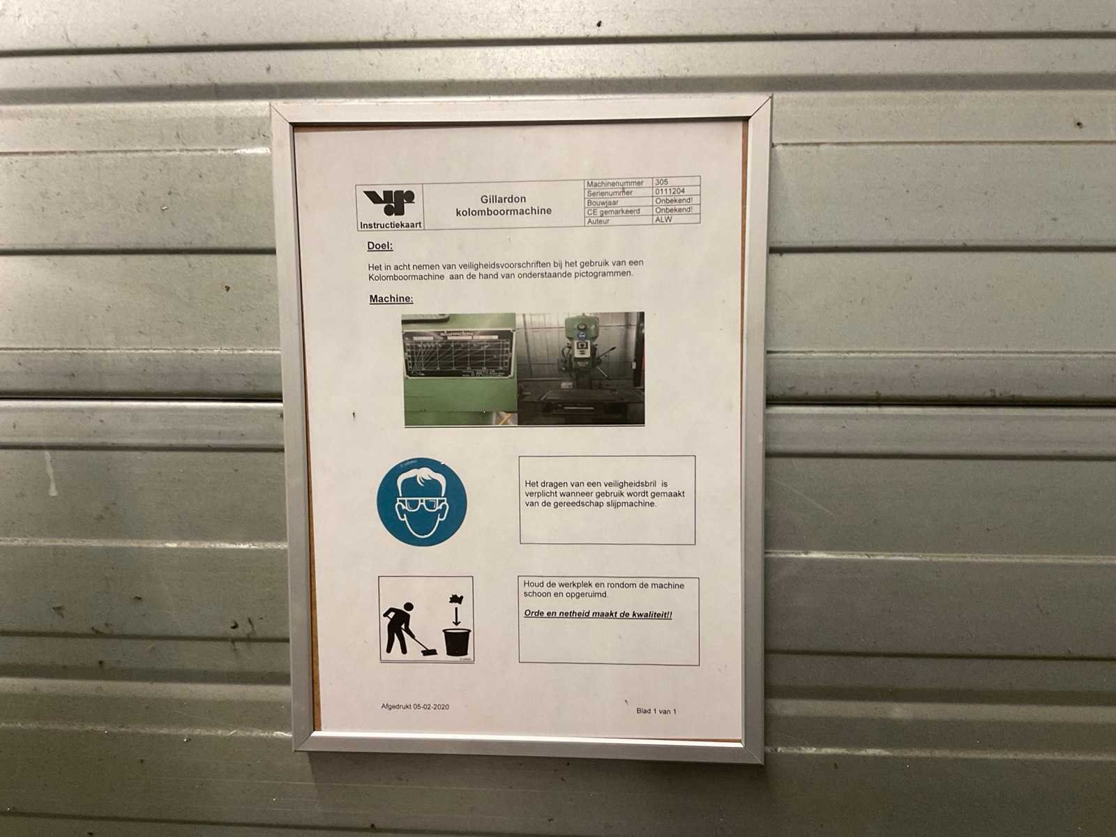 Gillardon kolomboormachine, tafelafmeting ca. 75 x 40 cm, aansluiting 380v, totale afmeting machine ca. 105 x 115 x 215 cm Nee Merk: Gillardon Type: GB50V Serienummer: 0111204