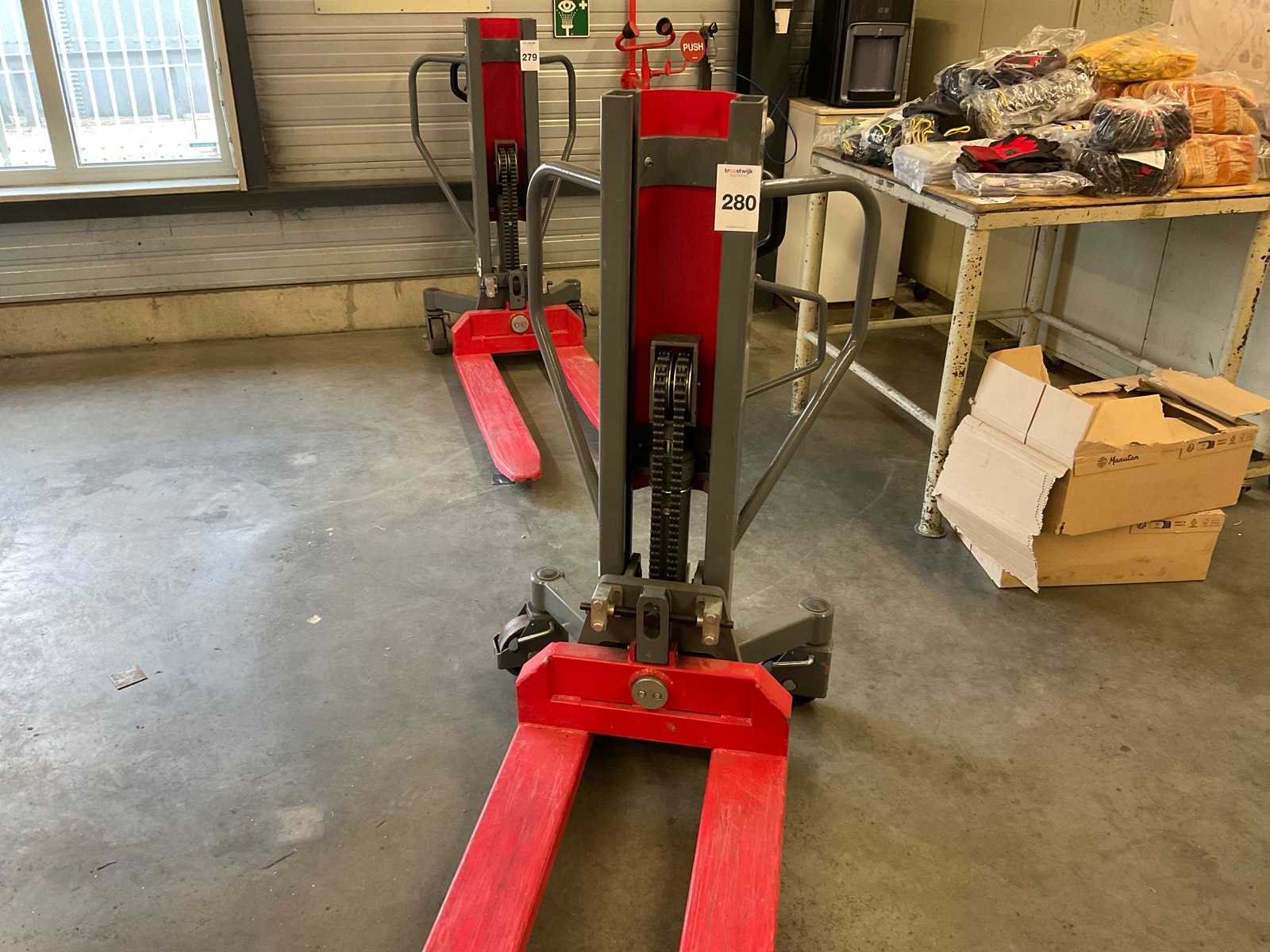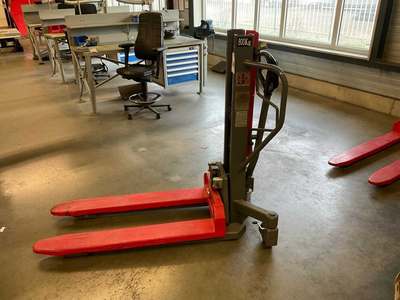 Hoogheffende palletwagen, merk Papro, Nee Merk: Papro Bouwjaar: 2017 Serienummer: A117612 Hoogheffer: true Hefvermogen: 800kg Hefhoogte: 800mm Lepellengte: 1100mm Totale afmeting L: 1700mm Totale afmeting Breedte: 700mm Totale afmeting Hoogte: 1330mm