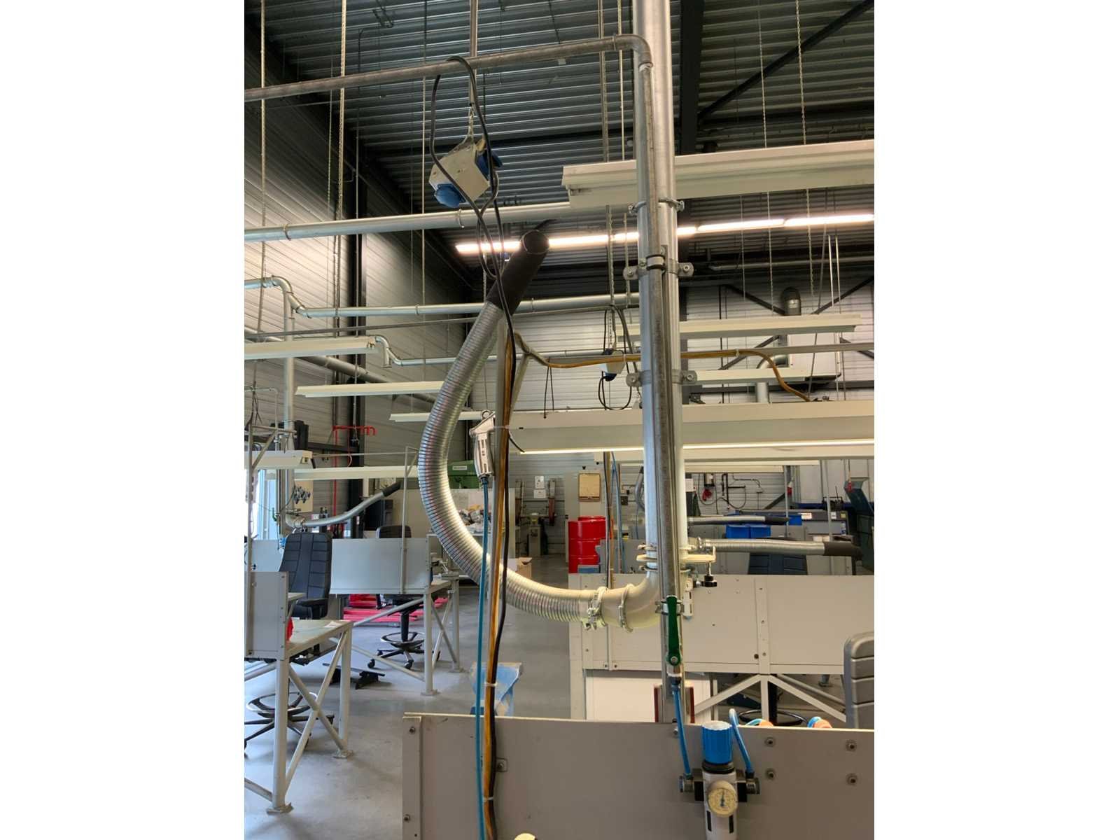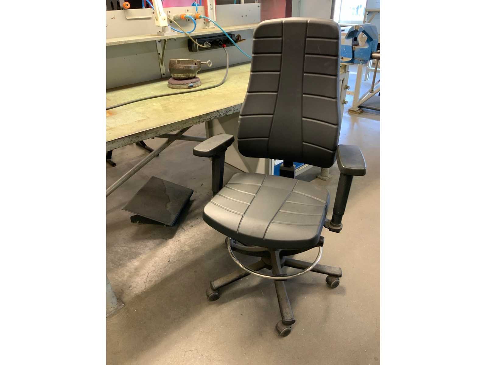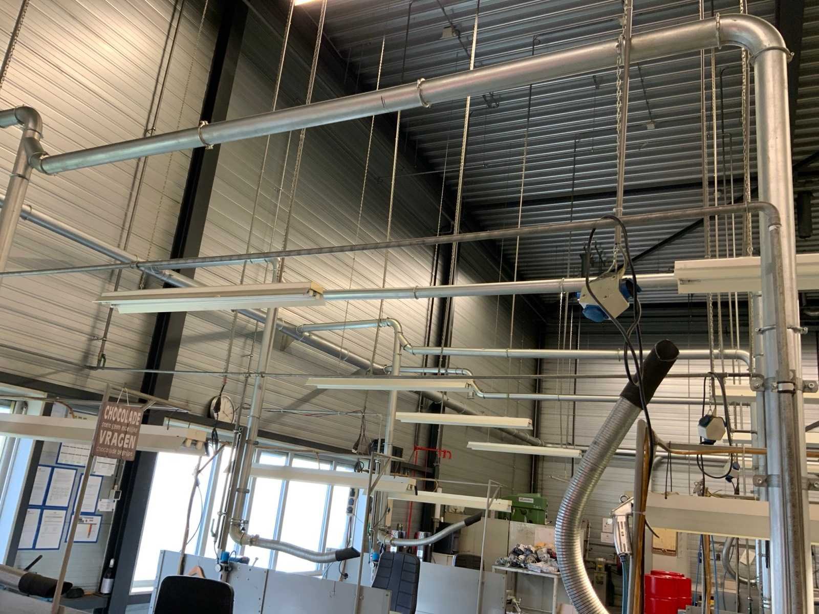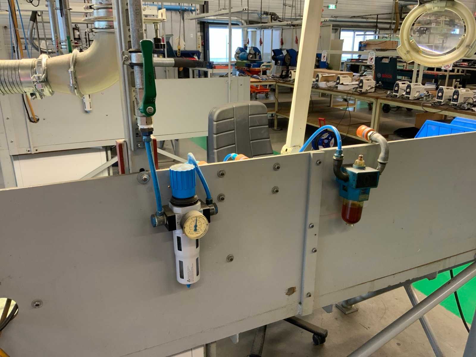 Metalen werkbank met verlichtingsbalk, bureaustoel en voetensteun, inclusief ladenblok met inhoud, inclusief gereedschap klem, loep op statief en bankschroef Voorzien van perslucht welke koper los dient te koppelen voor aanvang verticale buis welke toebehoort aan kavel 283 Alsmede luchtafvoersysteem, welke koper los dient te koppelen net voor de aanvang van de verticale buis Nee Merk: Garant Breedte: 810mm Lengte: 1880mm Hoogte: 2000mm Materiaal: Metaal