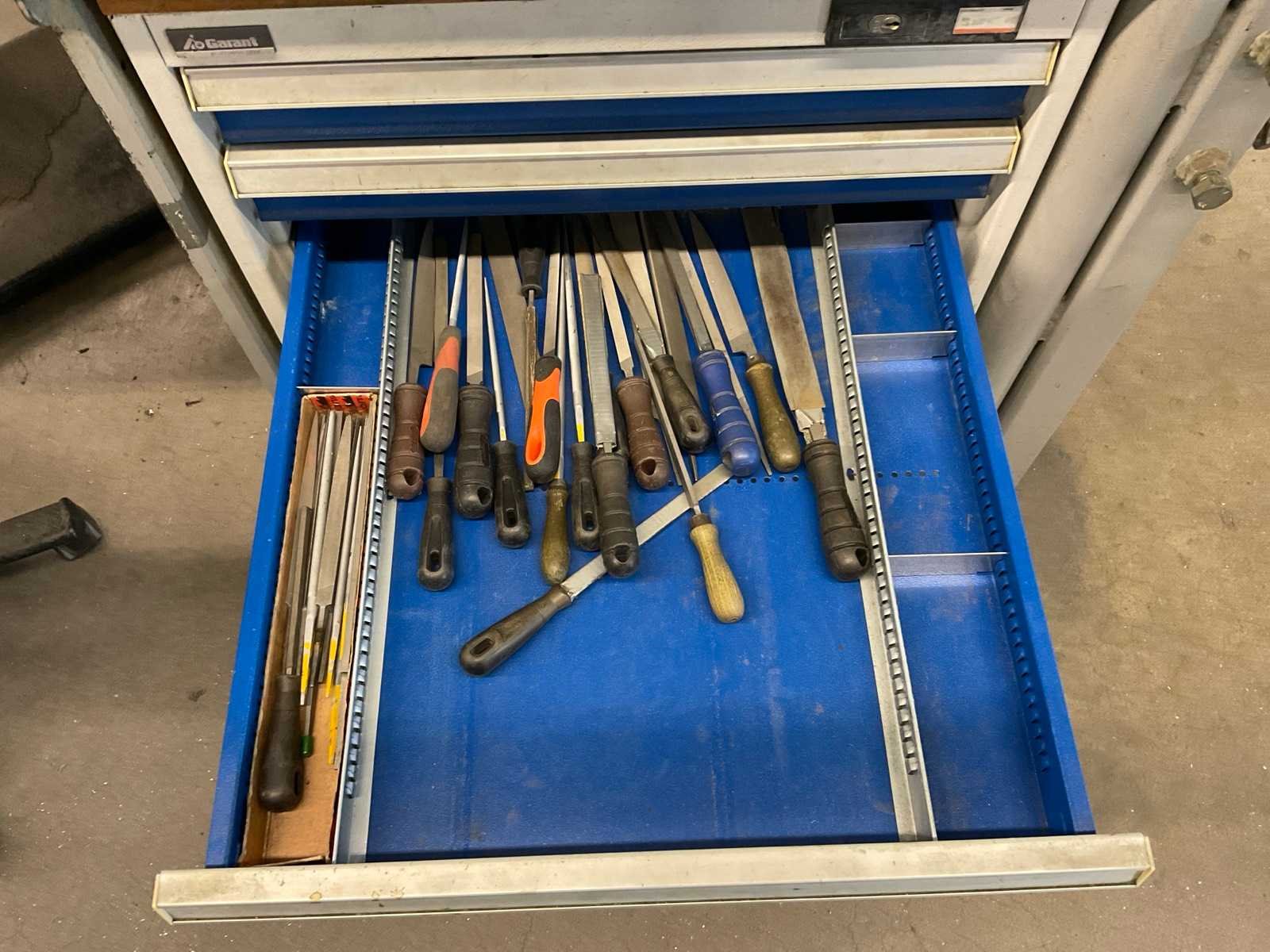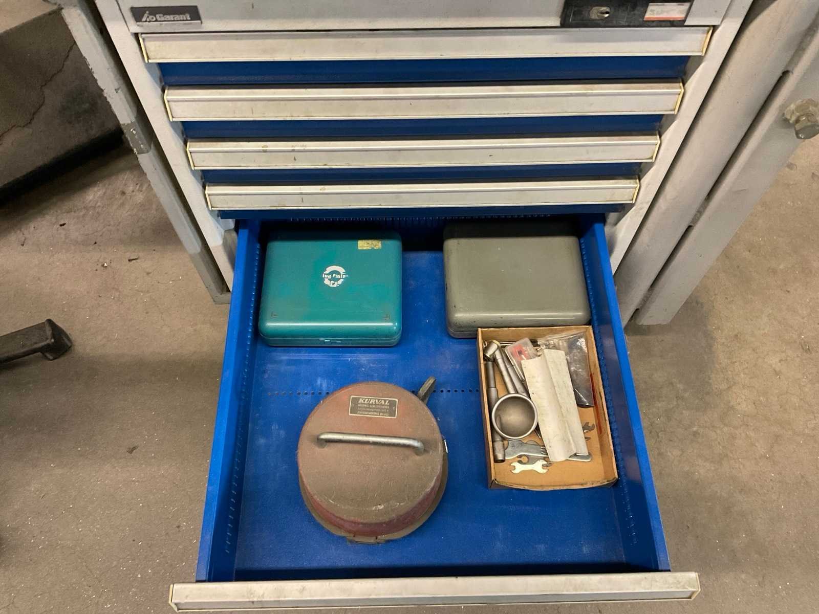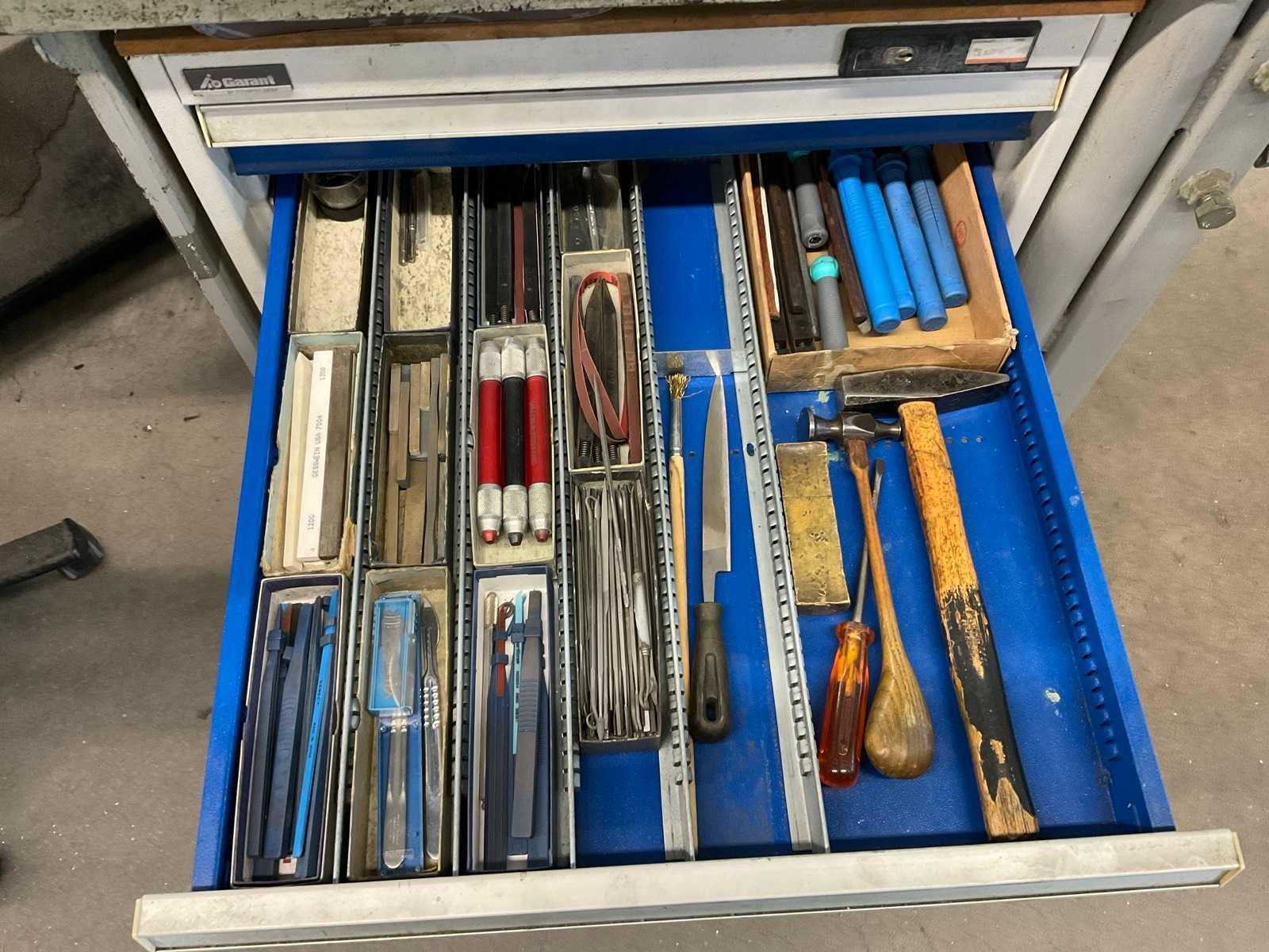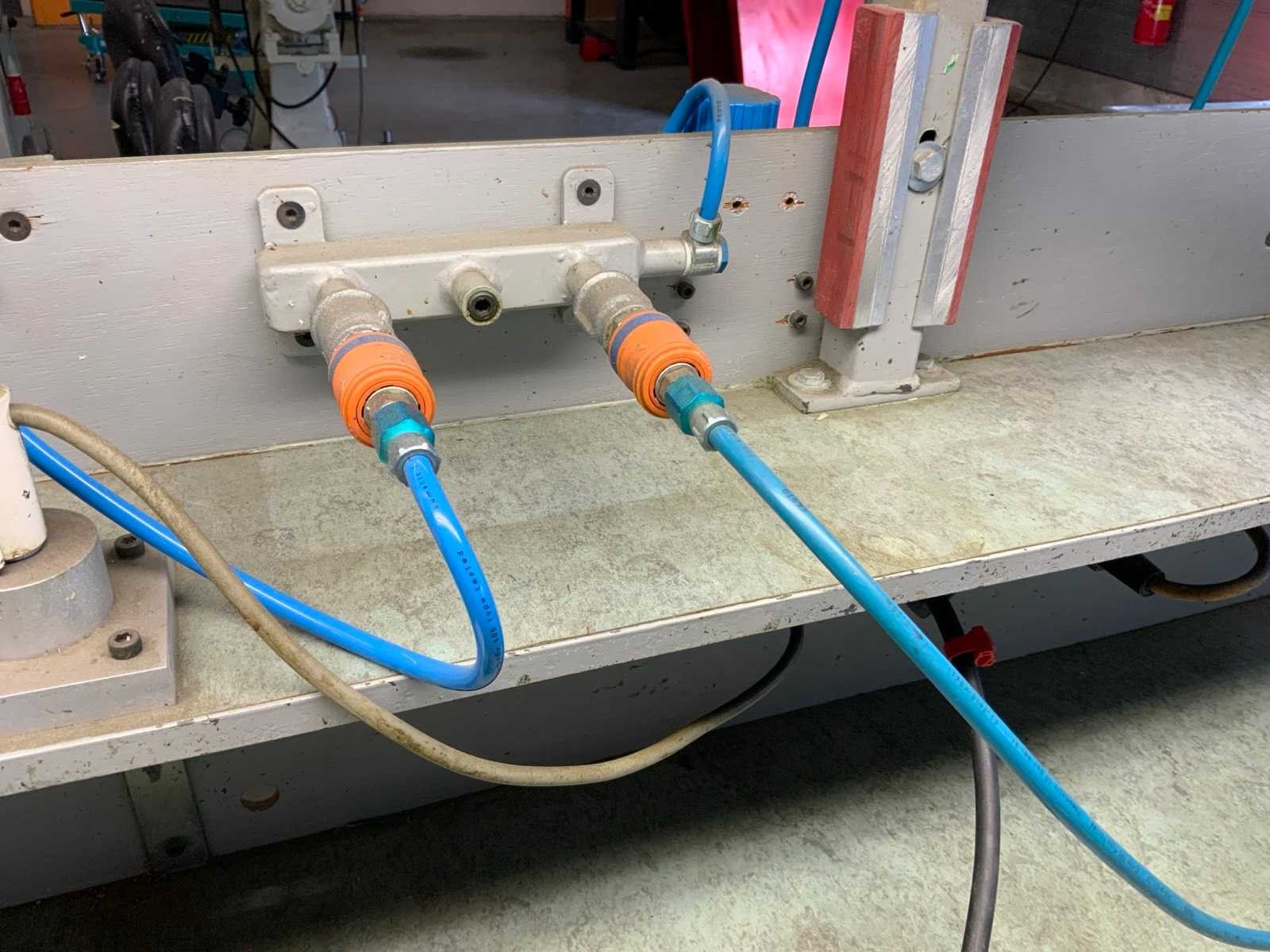 Metalen werkbank met verlichtingsbalk, bureaustoel en voetensteun, inclusief ladenblok met inhoud, inclusief gereedschap klem, loep op statief en bankschroef Voorzien van perslucht welke koper los dient te koppelen voor aanvang verticale buis welke toebehoort aan kavel 283 Alsmede luchtafvoersysteem, welke koper los dient te koppelen net voor de aanvang van de verticale buis Nee Merk: Garant Breedte: 810mm Lengte: 1880mm Hoogte: 2000mm Materiaal: Metaal