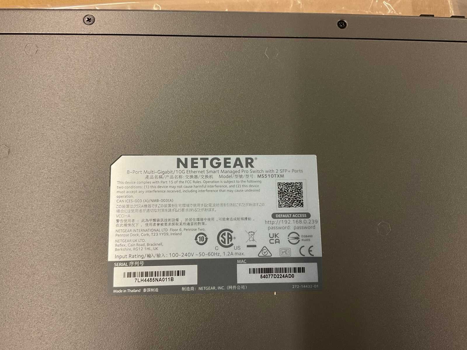 Netgear Business netwerk switch, 1 stuks uitgepakt en 2 stuks in verpakking Nee Merk: Netgear Model: Business Product type: MS510TXM-100EUS