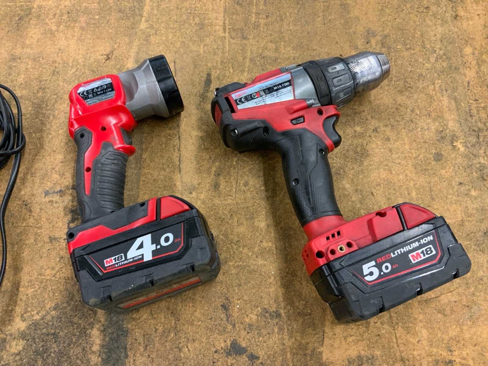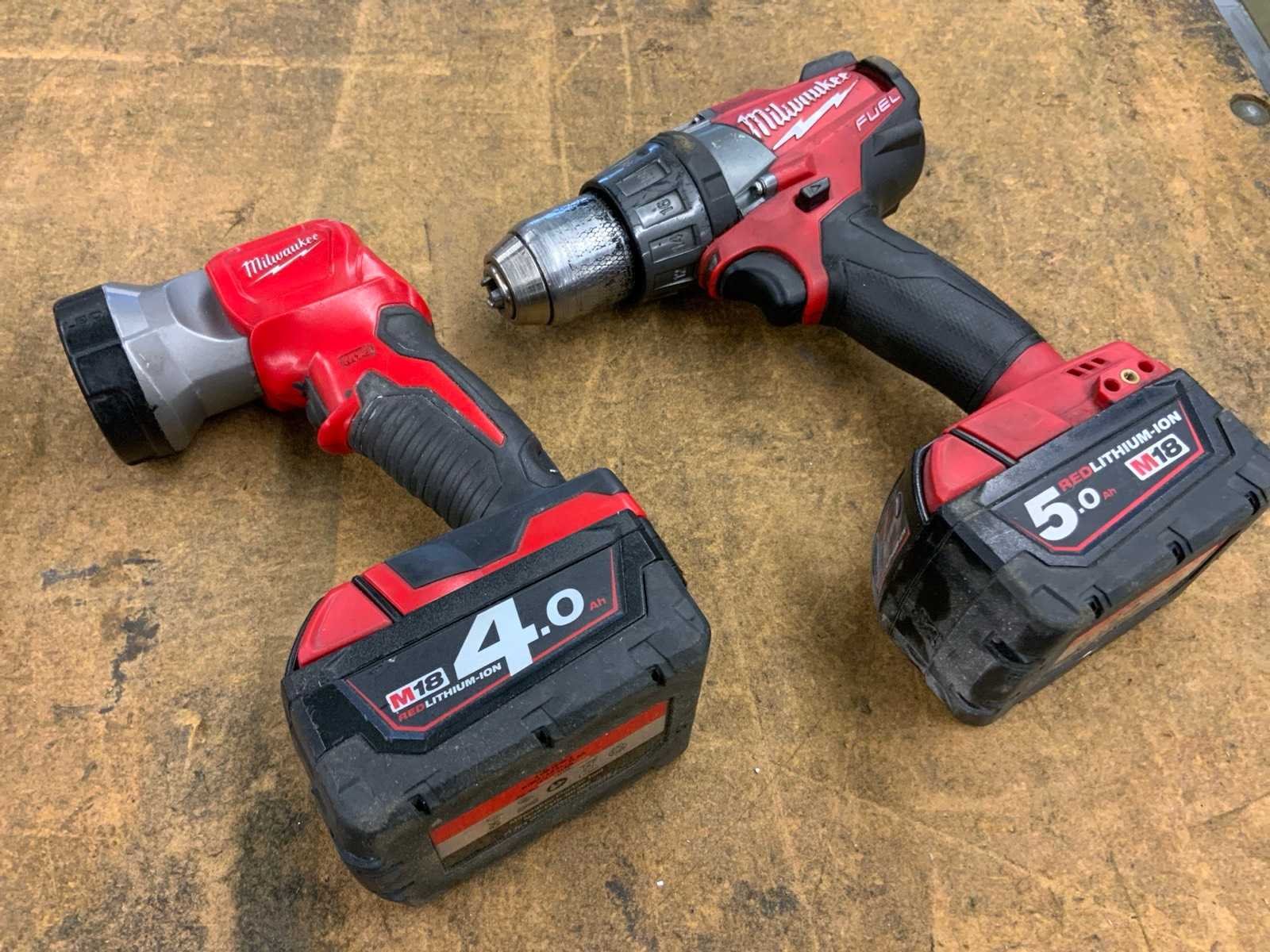 Milwaukee 18v schroefboormachine en ledlamp, inclusief accu’s en acculader Nee Merk: Milwaukee Accuspanning: 18V Accu type: Li-ion Aantal accu's: 2 Accu lader: true