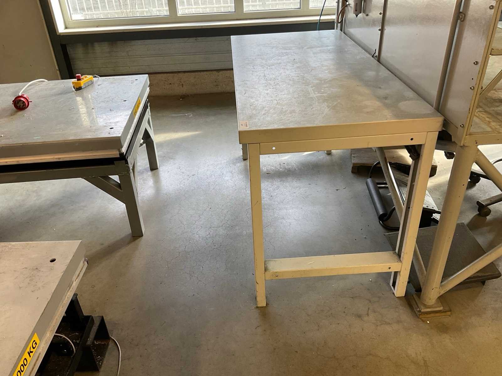 Metalen onderstel en kunststof werkblad, demonteerbaar Nee Lengte: 150cm Breedte: 70cm Hoogte: 85cm Materiaal: Metaal