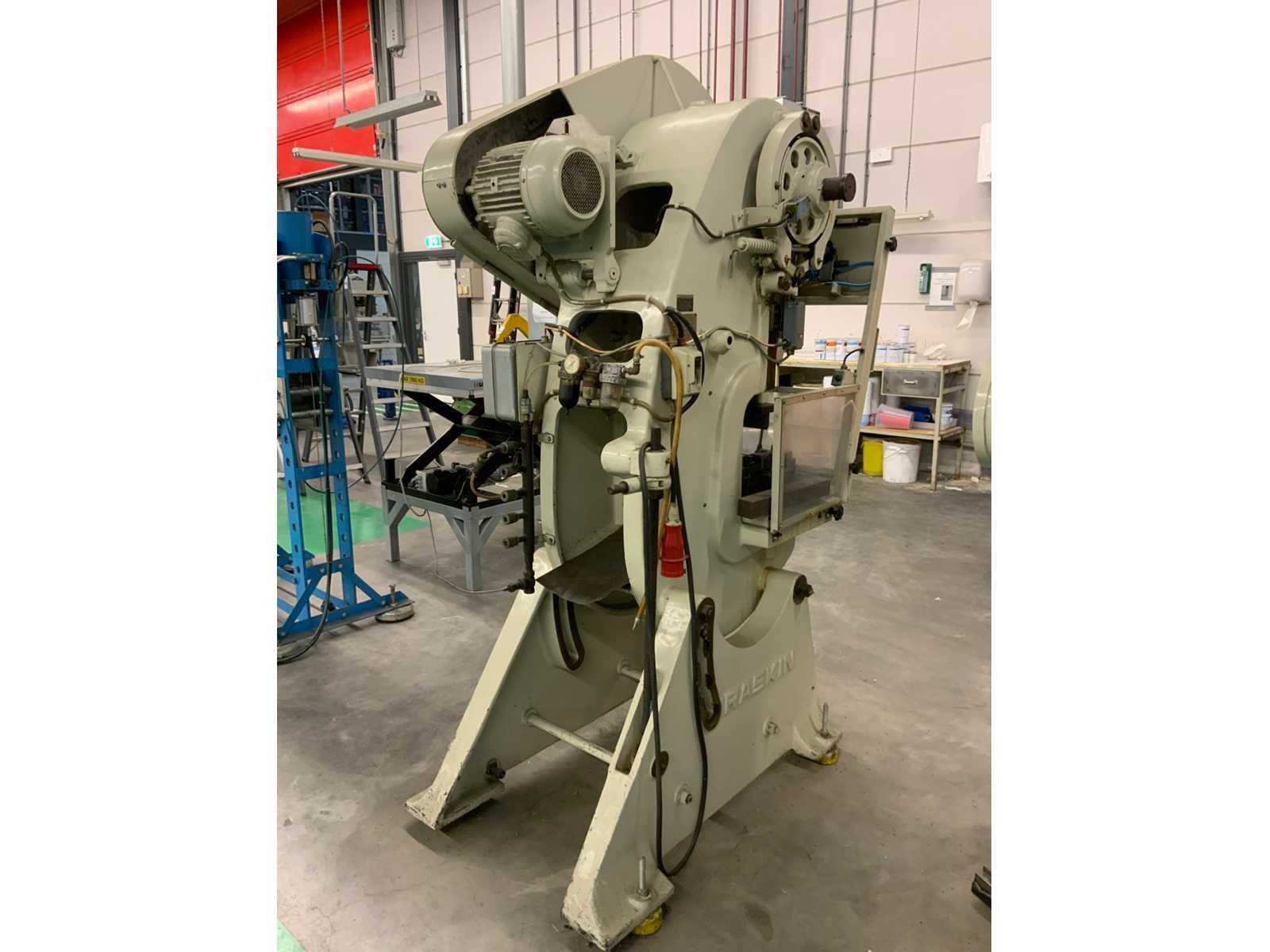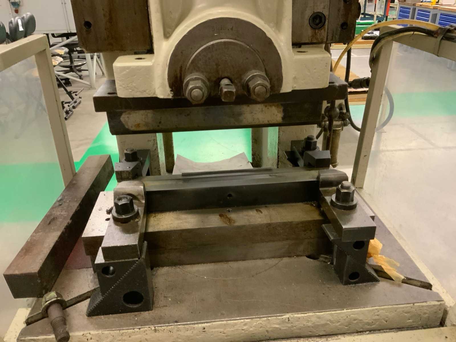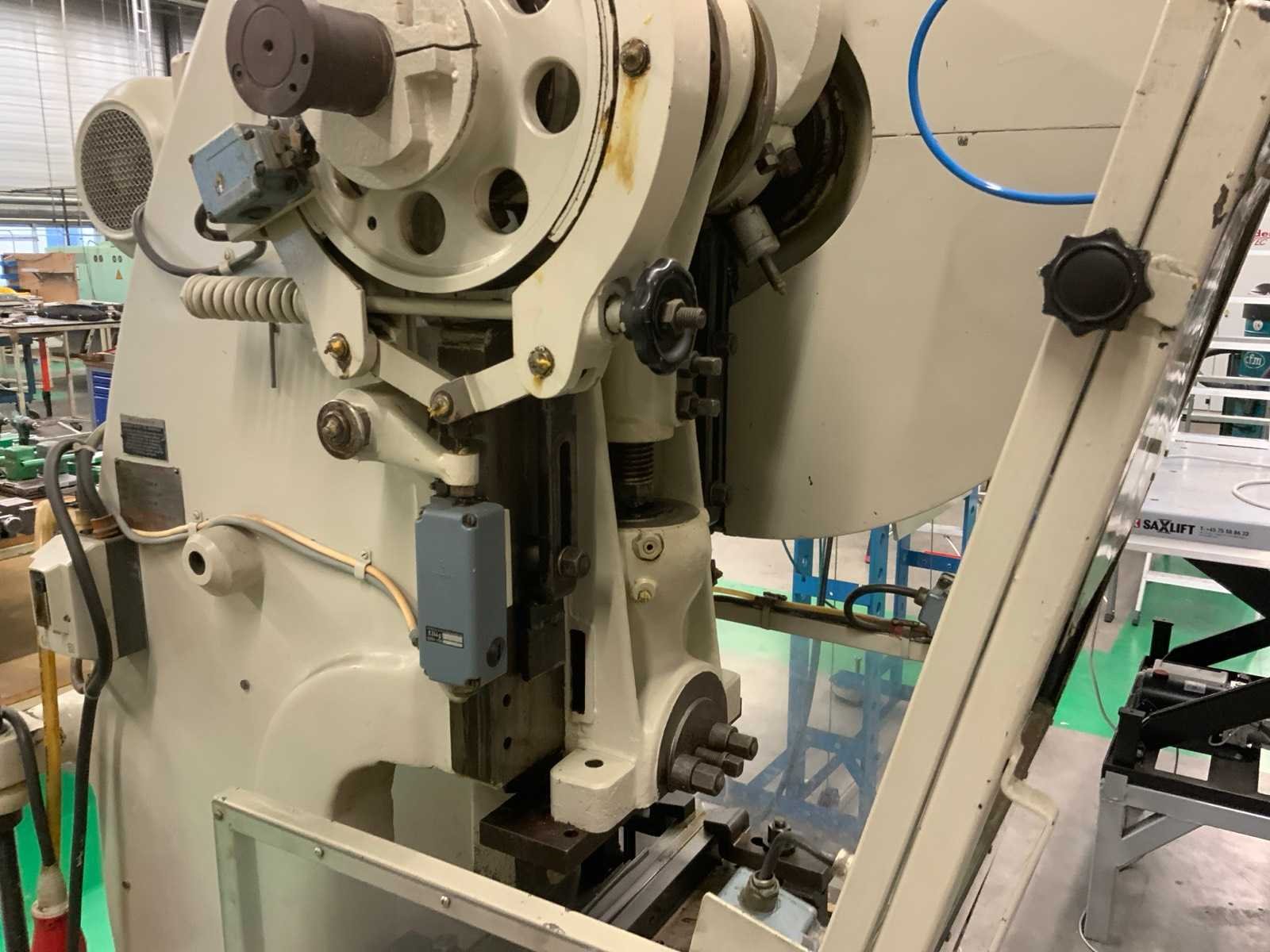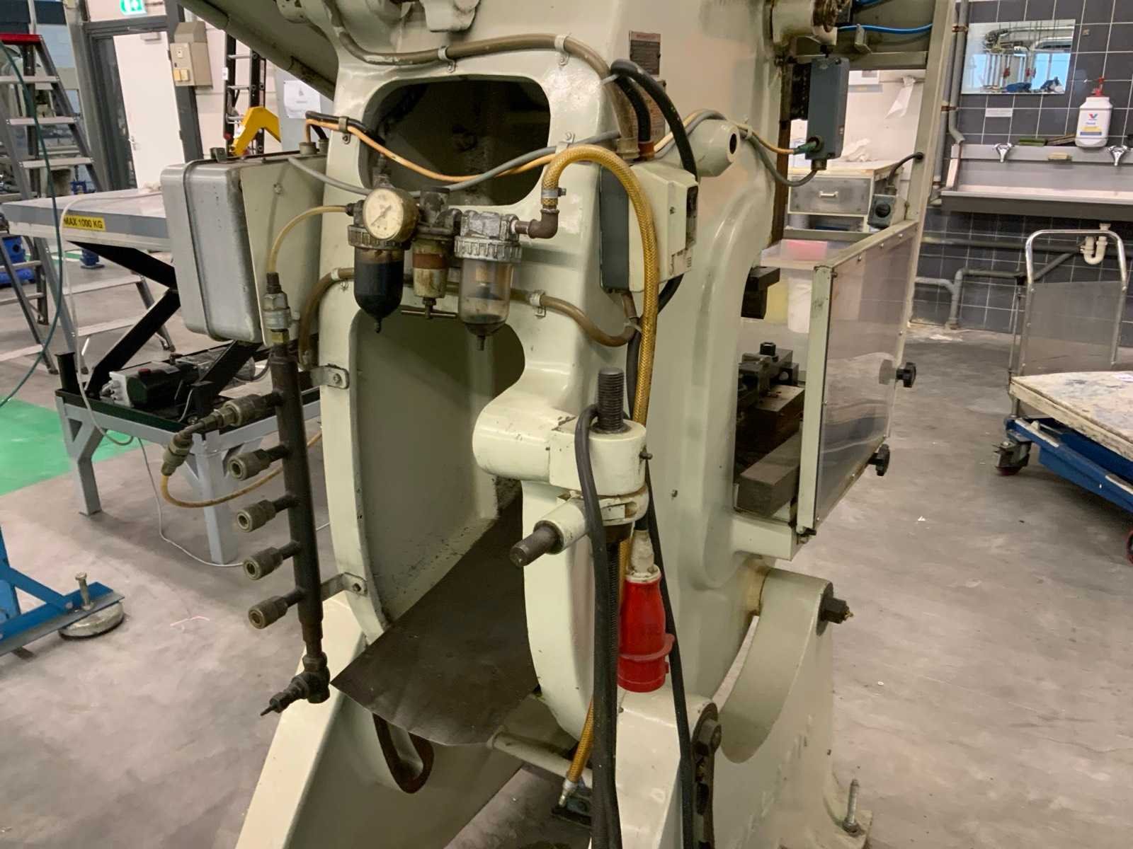 Raskin precisie excenterpers, type 351B, aansluiting 380v, tafelafmeting 60 x 40 cm Nee Merk: Raskin Type: 351B Serienummer: 351BO132 Capaciteit.: 35t Tafel afmeting l: 400mm Tafel afmeting b: 600mm Aansluiting: 400V Afmeting l: 950mm Afmeting b: 1600mm Afmeting h: 2300mm