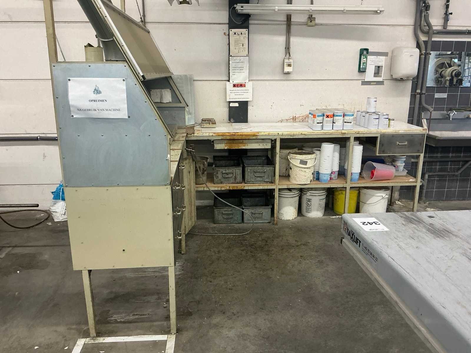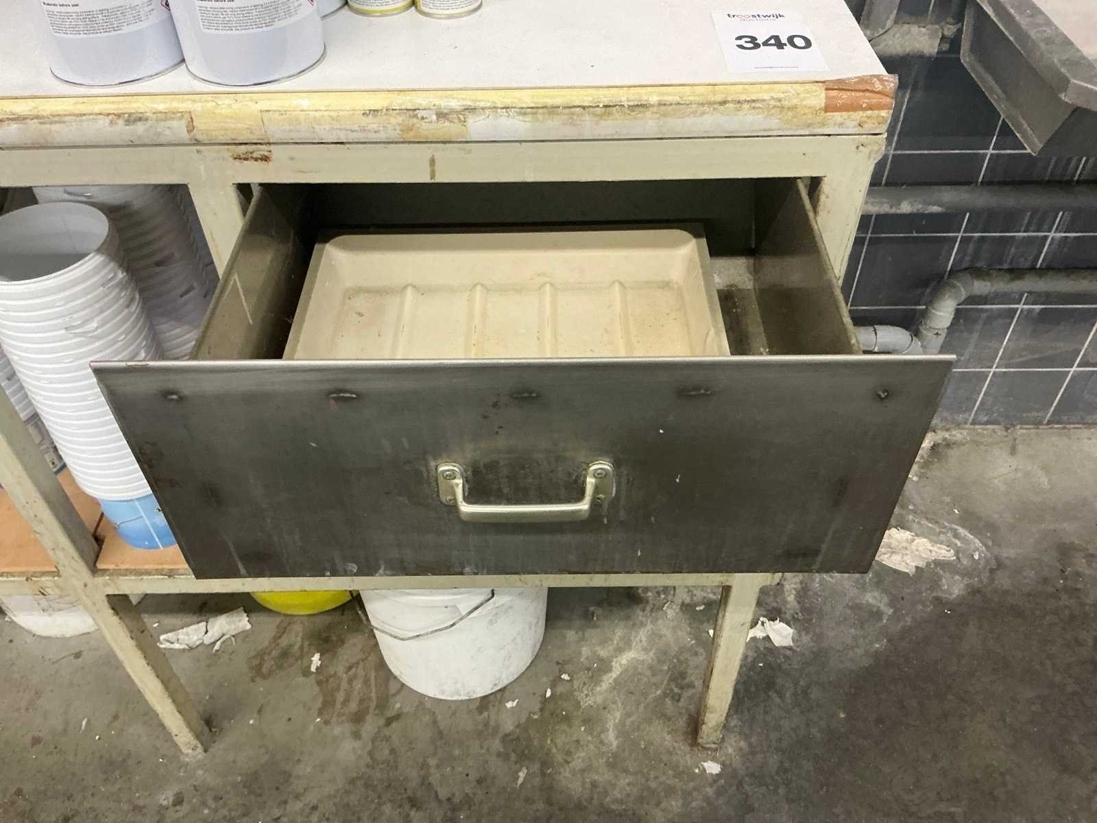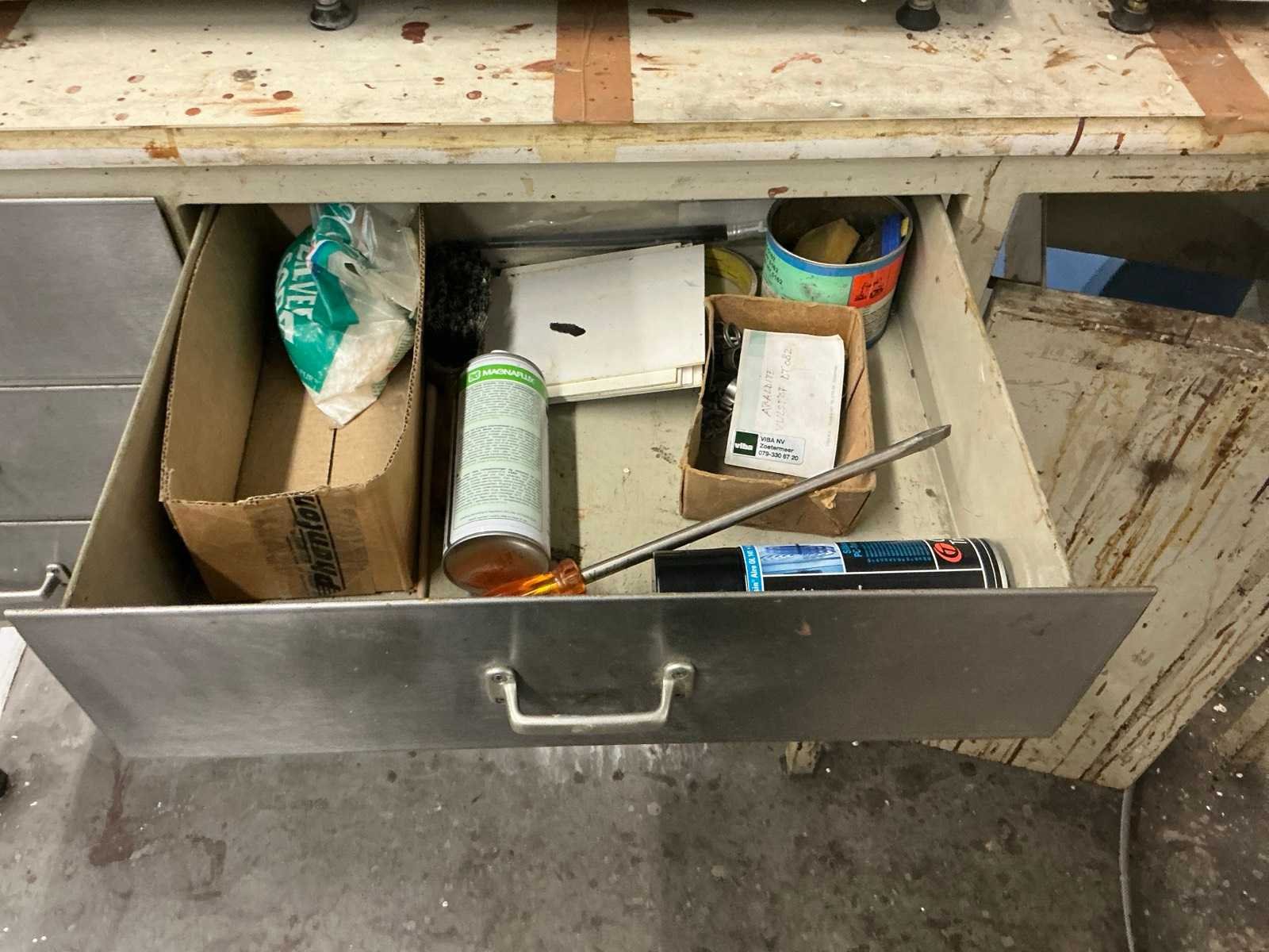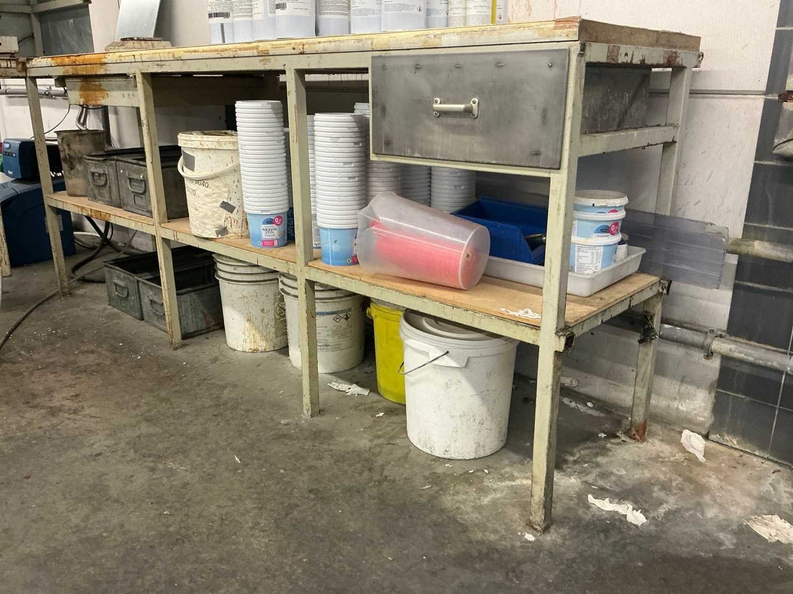 Stalen frame met houten blad, inhoud hoort bij het kavel. Apart verkavelde items horen niet bij het kavel Nee Lengte: 300cm Breedte: 230cm Hoogte: 170cm