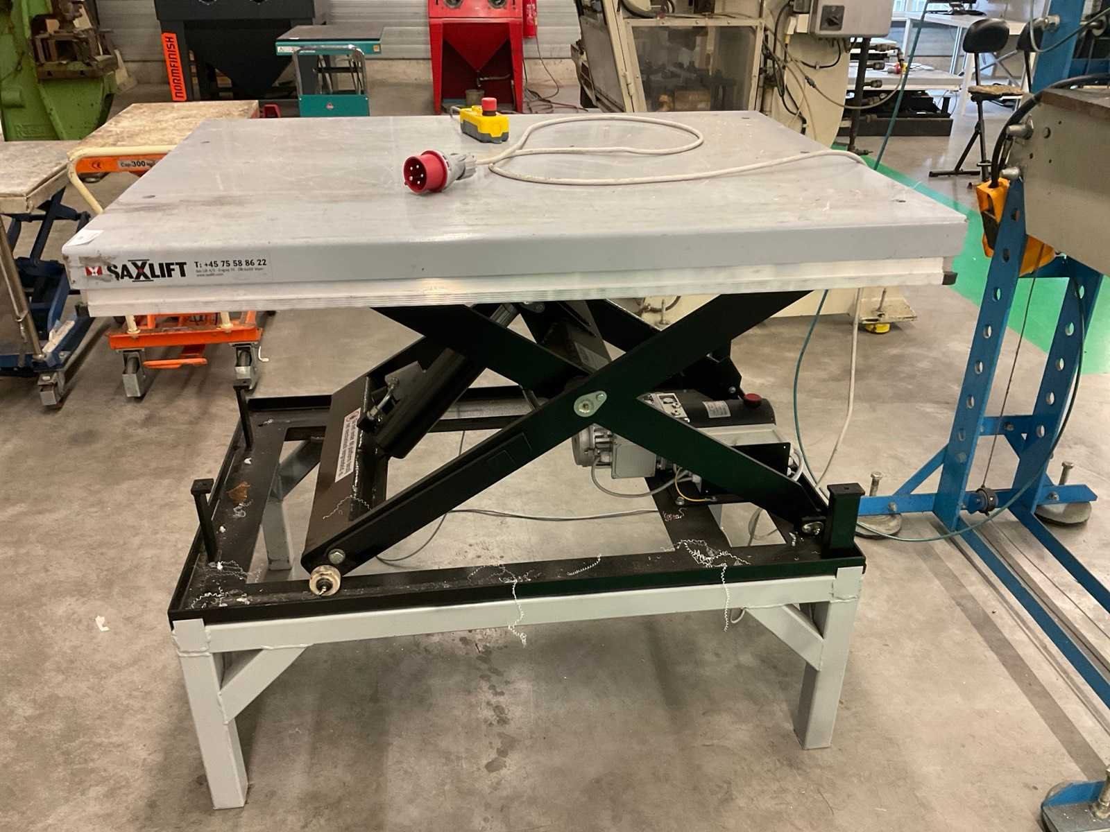Hydraulisch, op stalen onderstel Nee Merk: Saxlift Type: IL1000XB Bouwjaar: 2024 Hijsvermogen: 1000kg Max. hefhoogte: 1500m Aansluiting: 380V Eigen gewicht: 220kg Totale afmeting L: 1300mm Totale afmeting Breedte: 1000mm