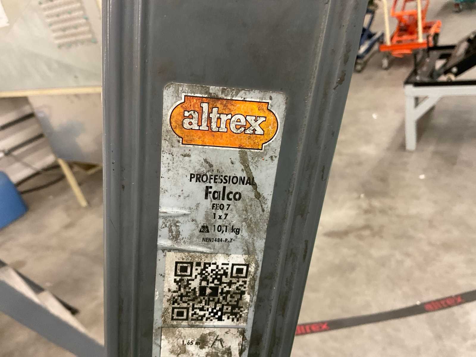Altrex Falco trap Nee Merk: Altrex Type: Falco FEO 7 Bouwjaar: 2016 Aantal treden: 7 Aluminium: true Oplooptrap: true Enkel: true Eigen gewicht: 10.1kg Totale afmeting L: 1330mm Totale afmeting Breedte: 610mm Totale afmeting Hoogte: 2300mm