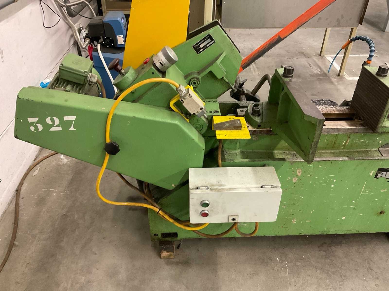 Behringer bandzaagmachine Nee Merk: Behringer Type: KS325HY Serienummer: 0216 Zaagblad afm. l: 520mm Zaagblad afm. b: 35mm Koelmiddelpomp: true Aansluiting: 400V Afmeting l: 1800mm Afmeting b: 1300mm Afmeting h: 1450mm