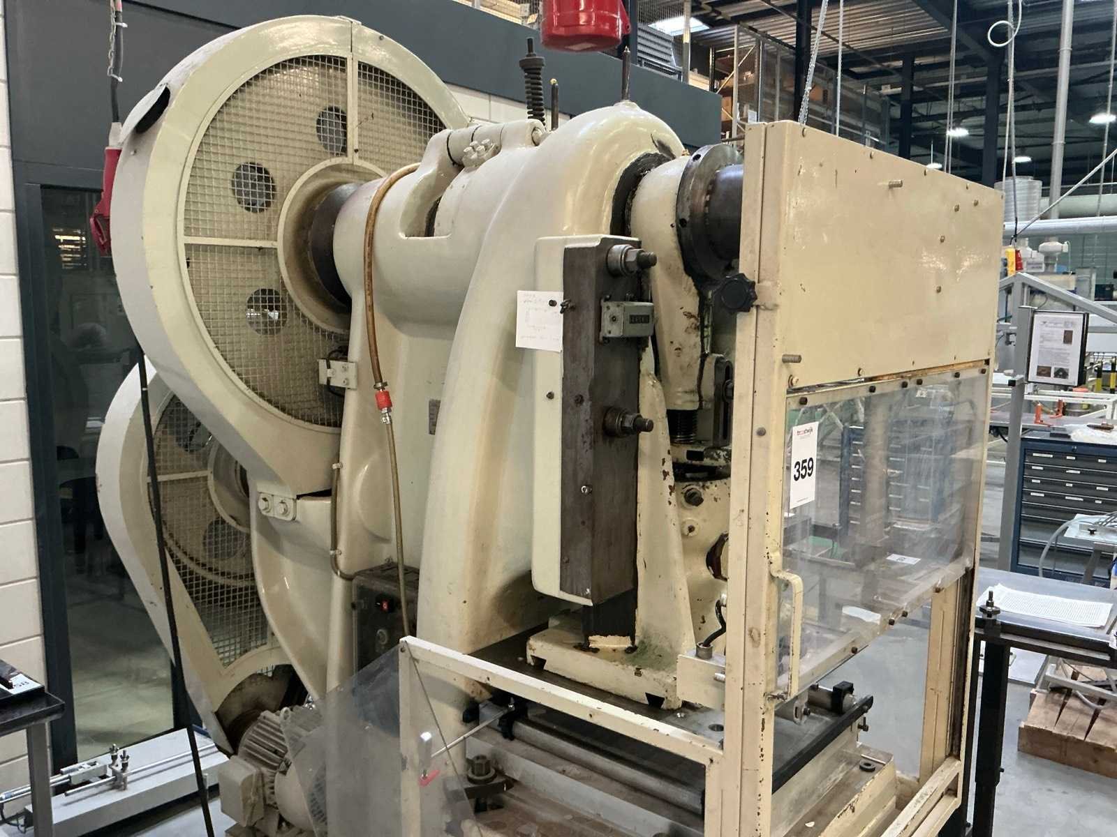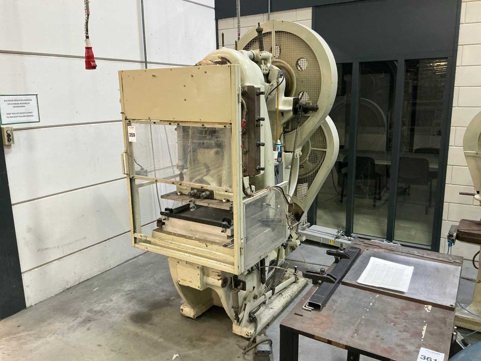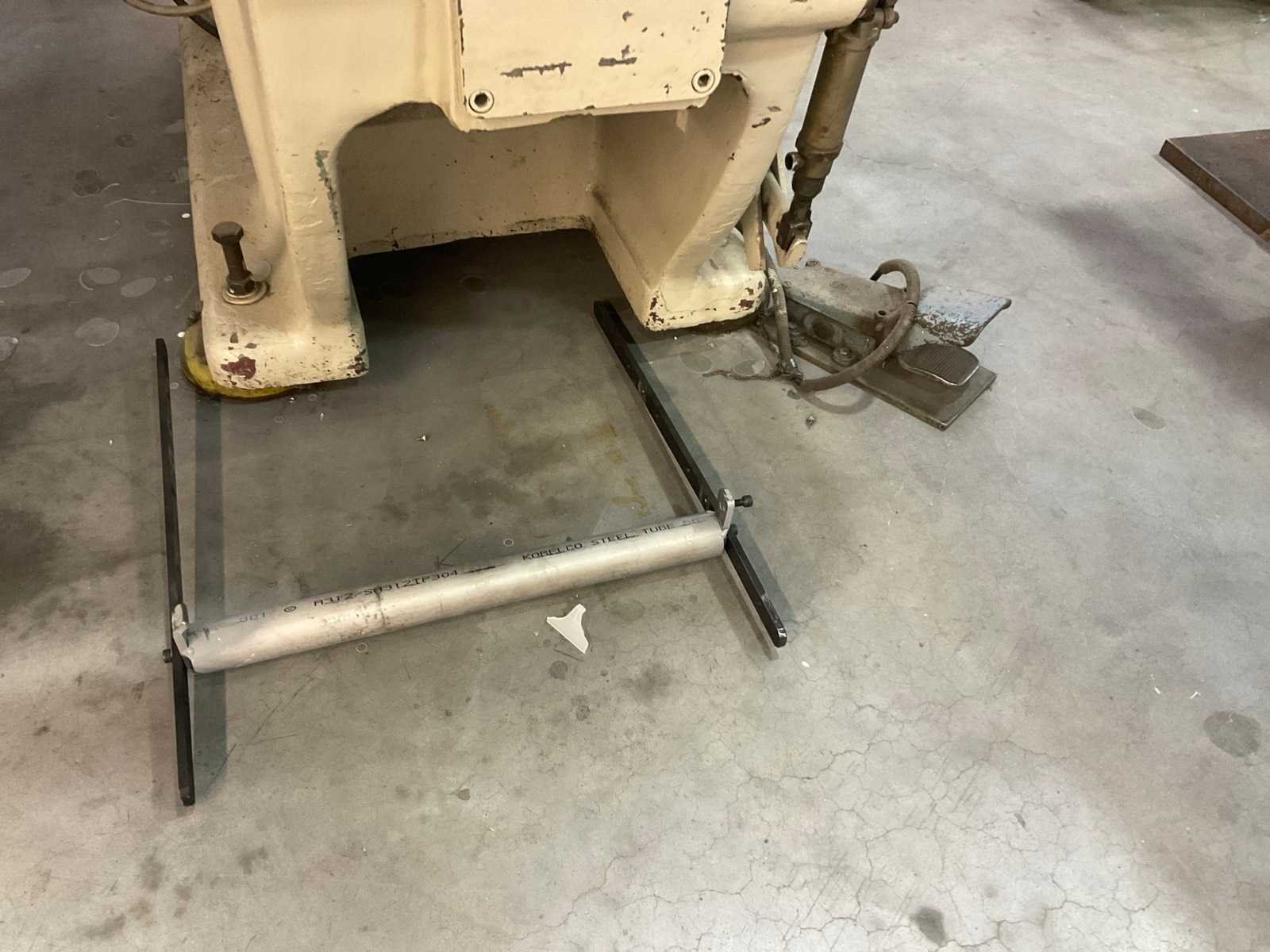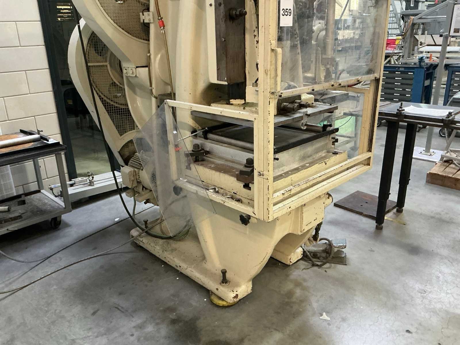 Voorzien van voetpedaal bediening, veiligheidsscherm Nee Merk: Raskin Type: R6A Bouwjaar: 1968 Serienummer: 100AH575 Capaciteit.: 100t Tafel afmeting l: 740mm Tafel afmeting b: 560mm Aansluiting: 400V Afmeting l: 2000mm Afmeting b: 950mm Afmeting h: 2300mm