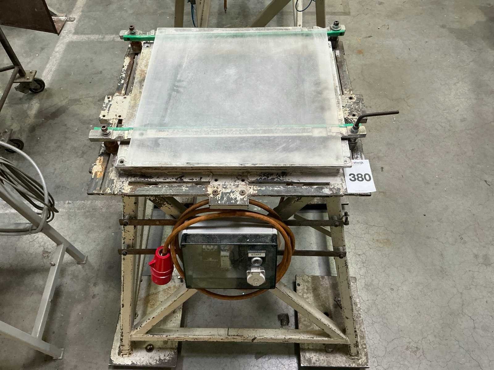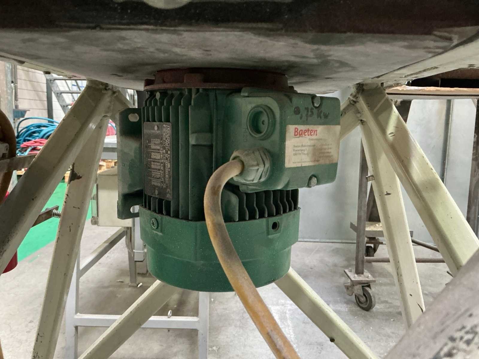 Voorzien van schuurplaat Oppervlakte: 60x50cm. Nee Merk: Baeten Aansluiting: 400V Totale afmeting L: 1100mm Totale afmeting Breedte: 1000mm Totale afmeting Hoogte: 1000mm