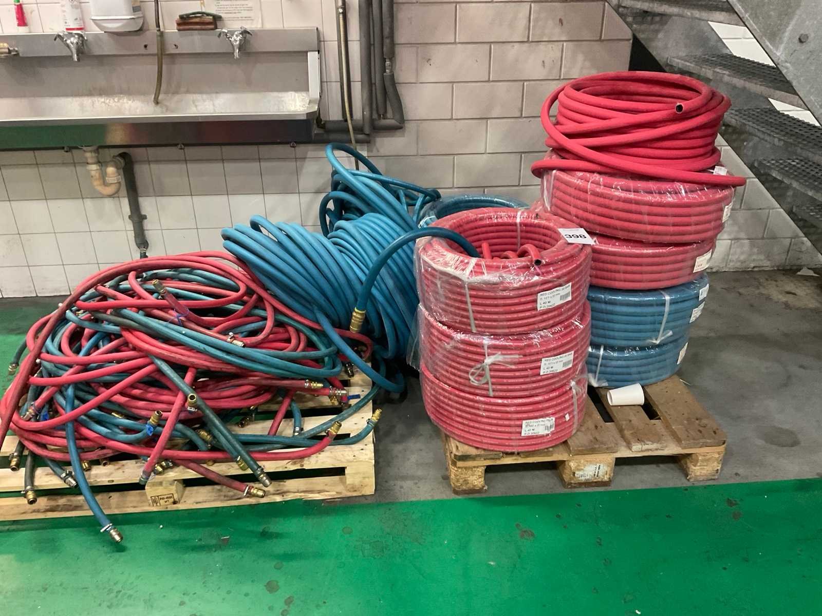 EPDM slang Bestaande uit red en blue 20 bar Diverse nieuwe rollen a 40 meter in diverse diameters w.o. 12,7x22 mm en 19x27 mm En gebruikte voorzien van koppelingen Nee Merk: Co cooling