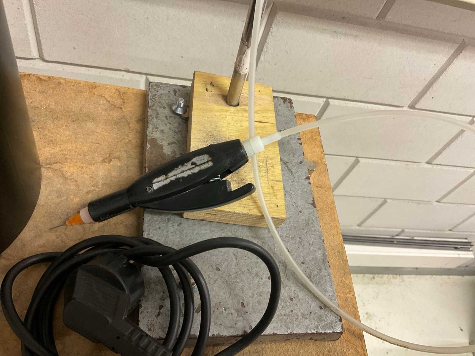 Met zelfbouw vulsysteem, viscosemeter en voeding op metalen standaard afm ca. 40x40x94 cm Nee Merk: Brand Type: 50 ml