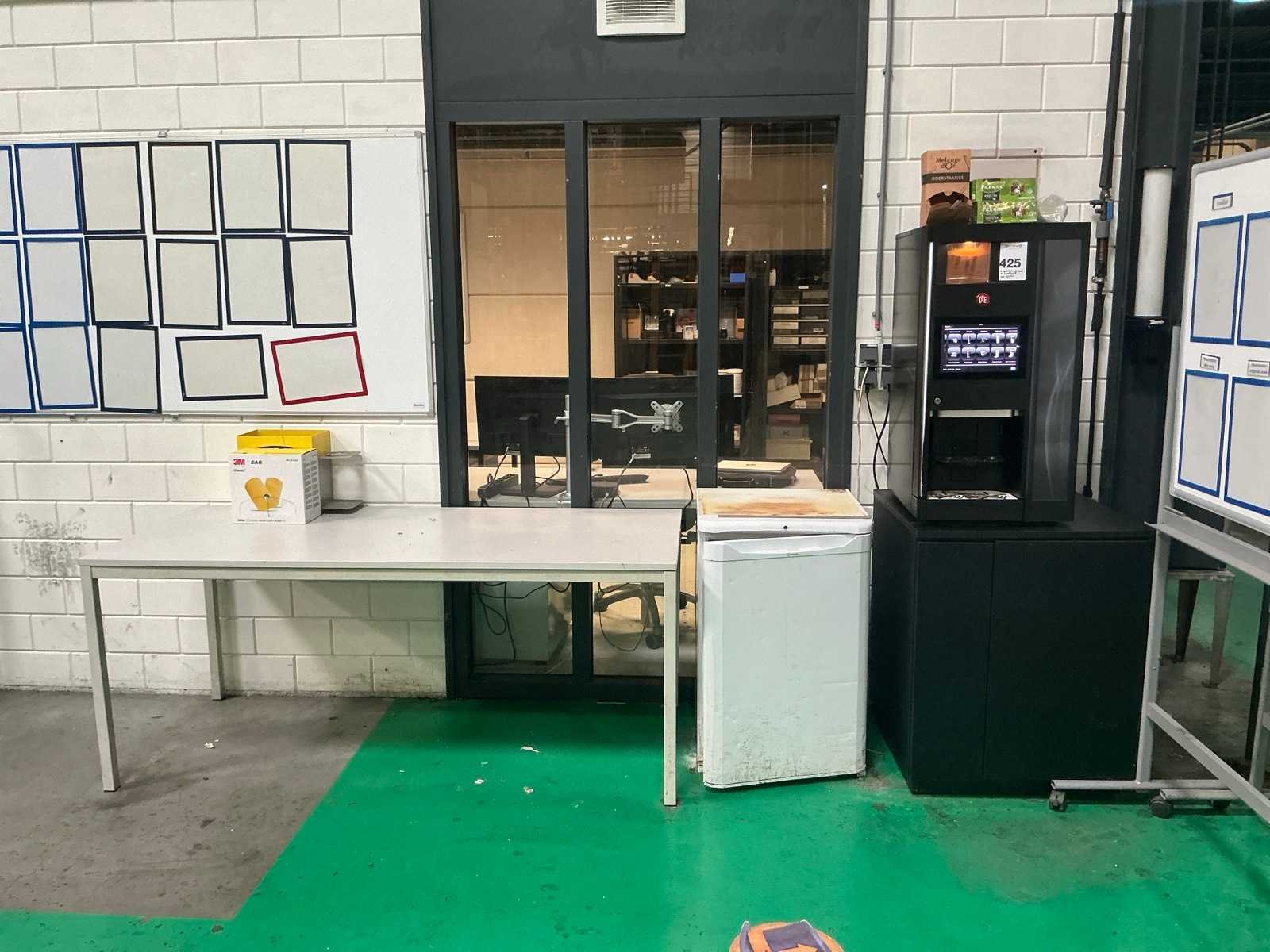 Voorzien van vaste water aansluiting. Voorzien van onderkast met brita filter. Indesit koelkast en kantinetafel 180x80cm horen bij het kavel Nee Merk: Wittenborg Aansluiting: 230V Totale afmeting Breedte: 700mm Totale afmeting Hoogte: 1700mm