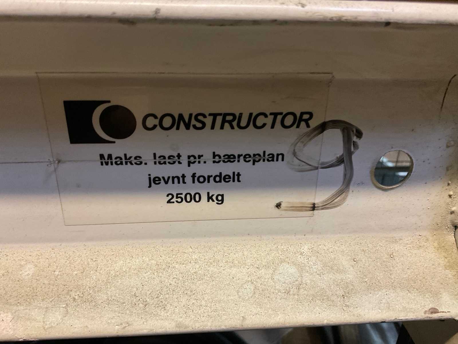 Voorzien van houten legborden De inhoud is niet inbegrepen. Nee Merk: Constructor Aantal secties: 3 Sectie afm. b: 2700mm Sectie diepte: 950mm Sectie afm. h: 3000mm Aantal staanders: 5 Aantal liggers: 28 Max. sectiebelasting: 2500kg Demontabel: true