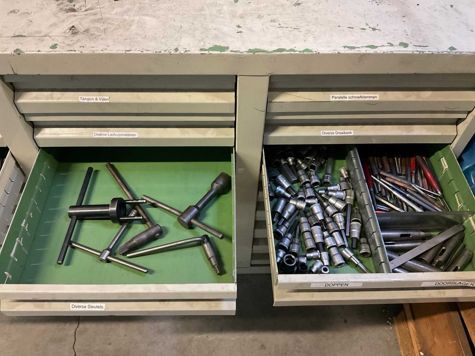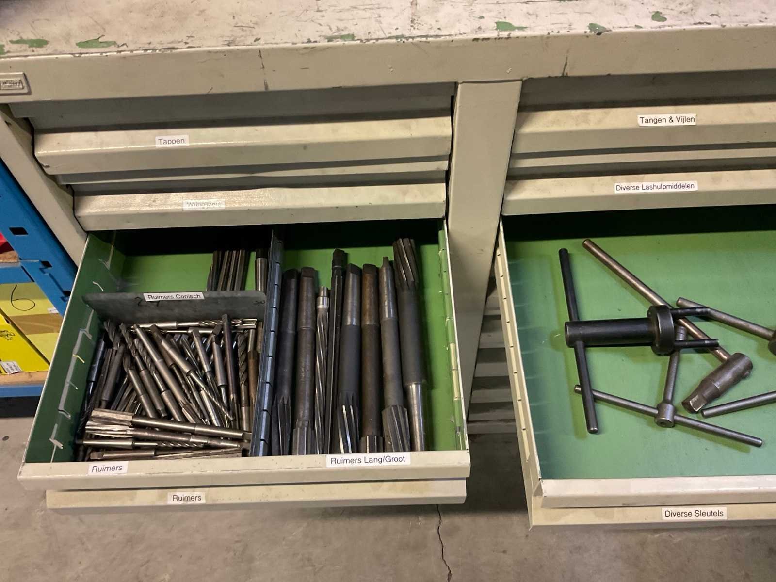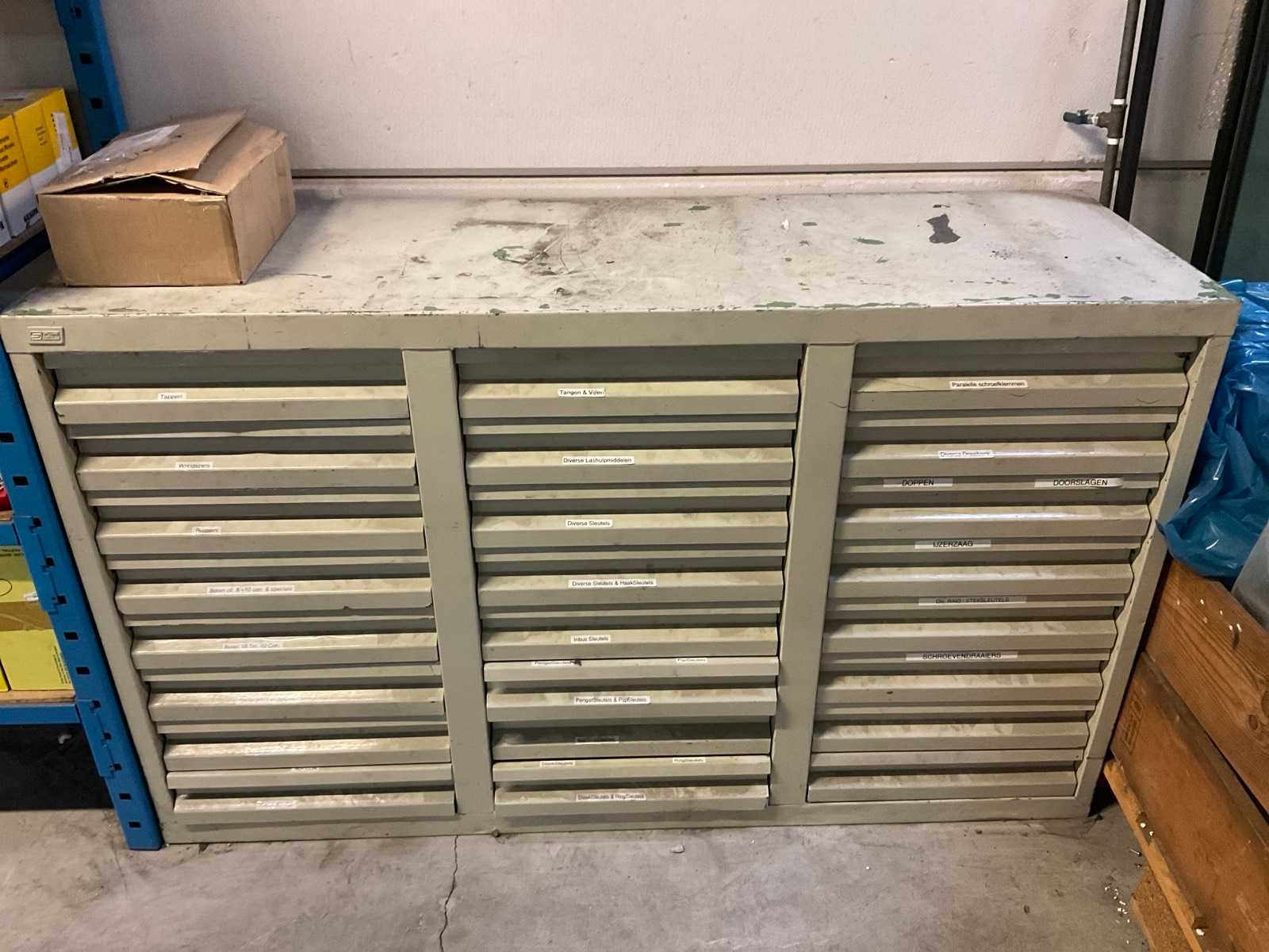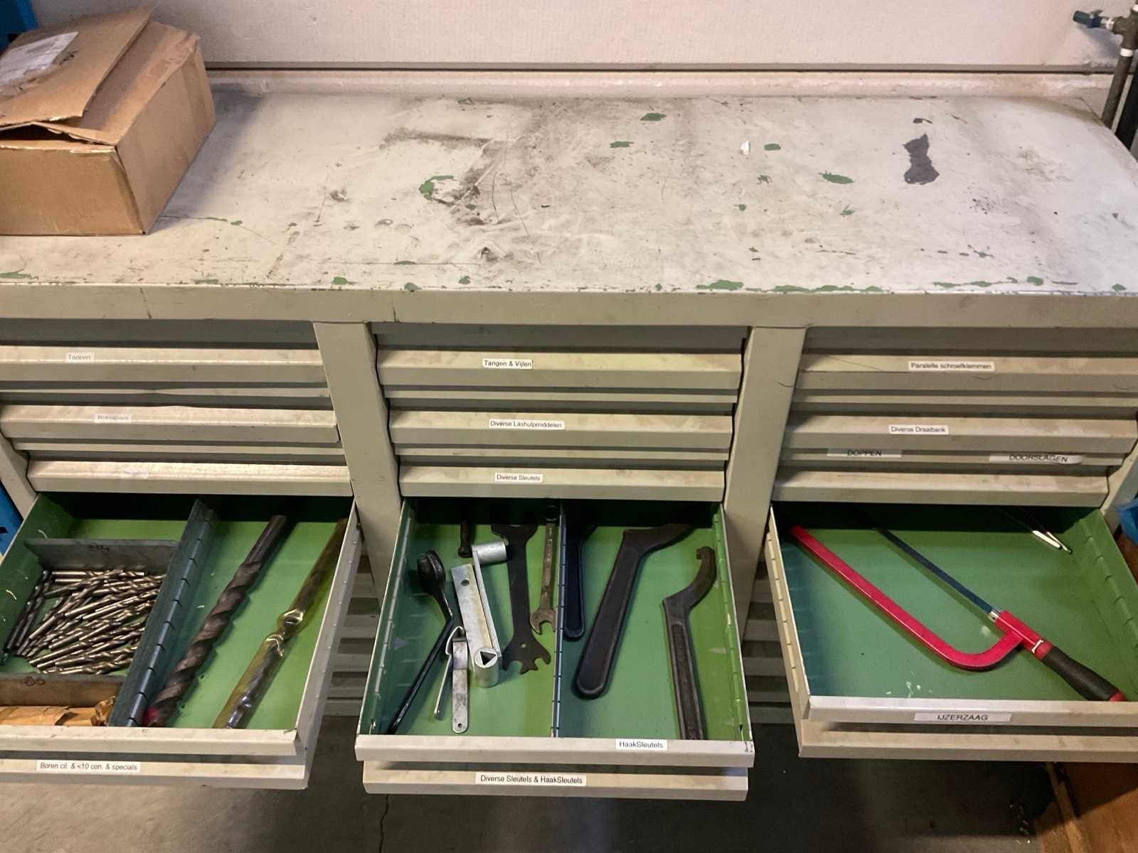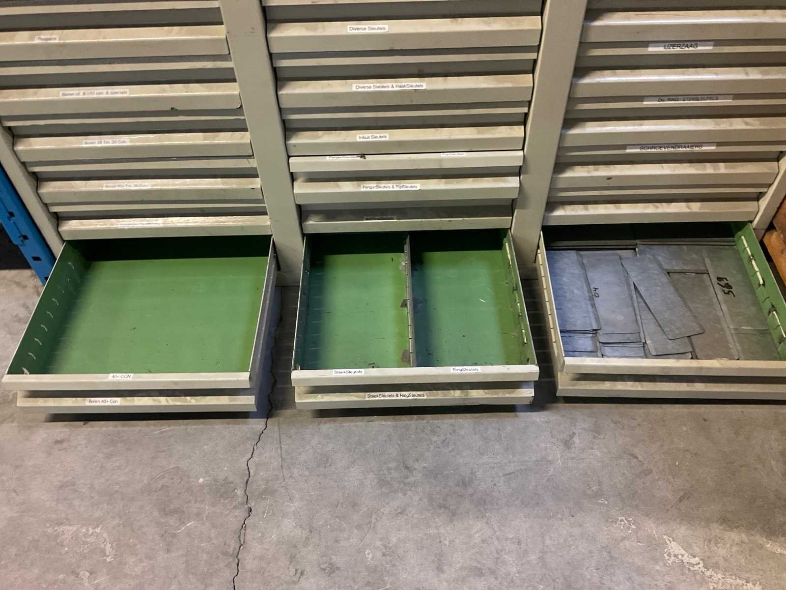 Bestaande uit diverse slangen, rollerbaan delen, ijzer, glas, hout en kunststof, rol filter, kratpallet Stalen ladekast met inhoud Stelling niet inbegrepen De koper dient het volledige kavel mee te nemen en de stelling leeg en netjes achter te laten. Nee Merk: Festo