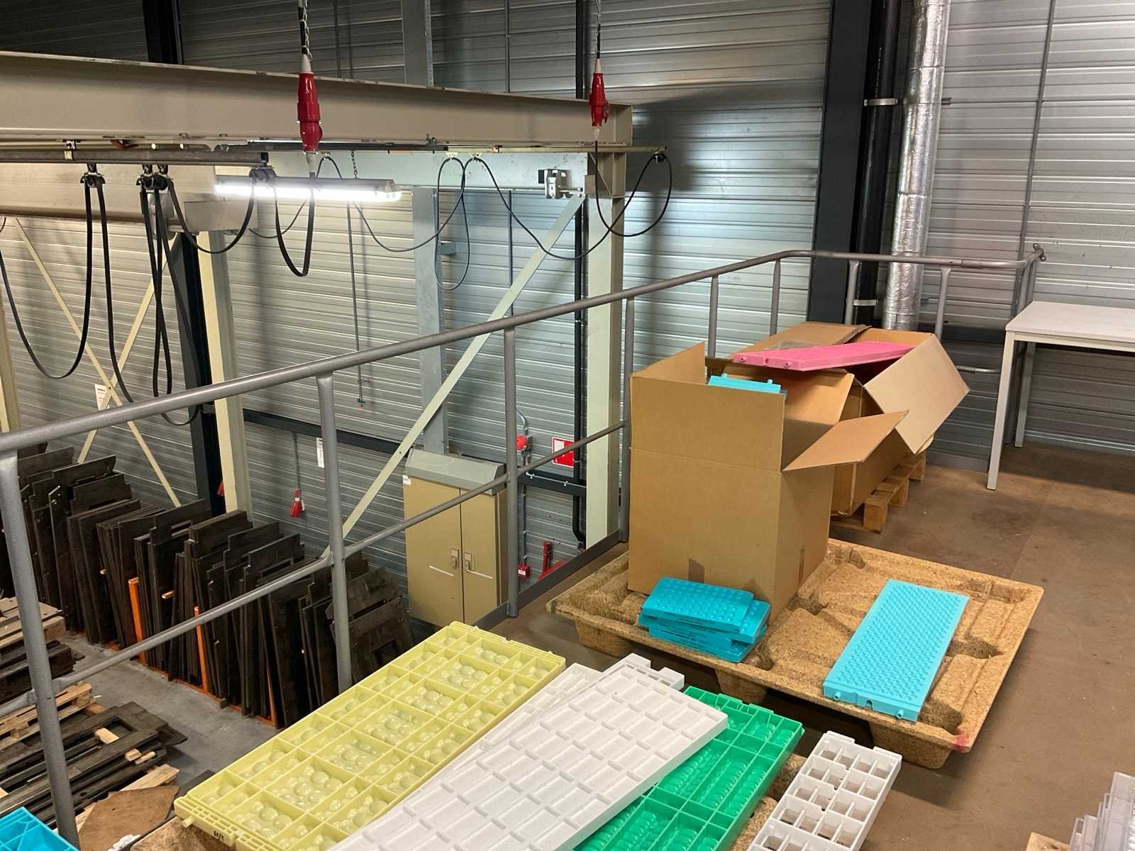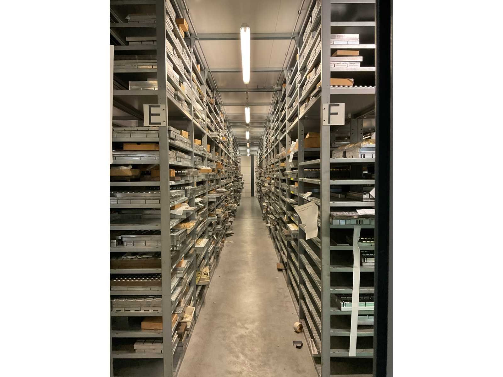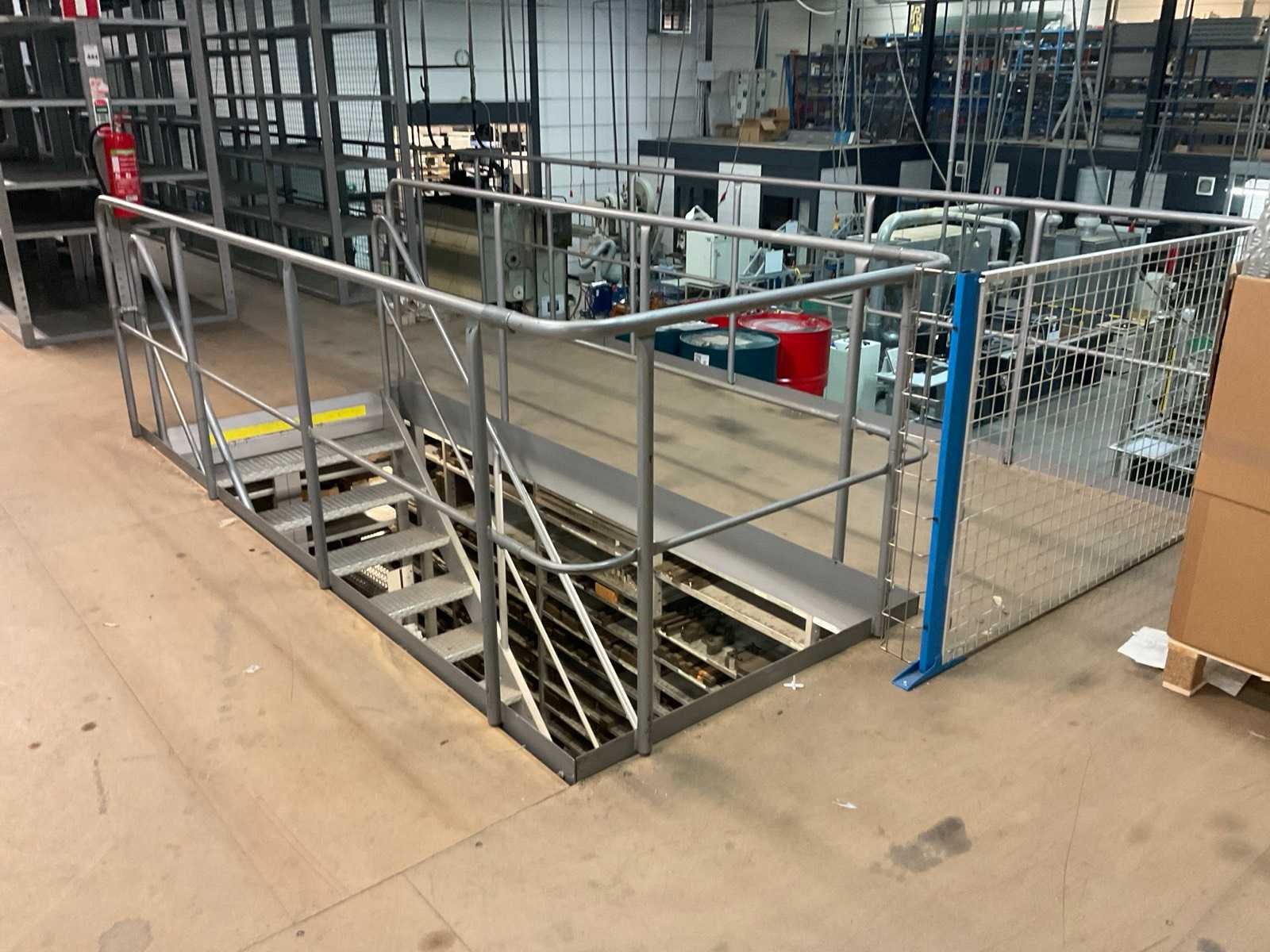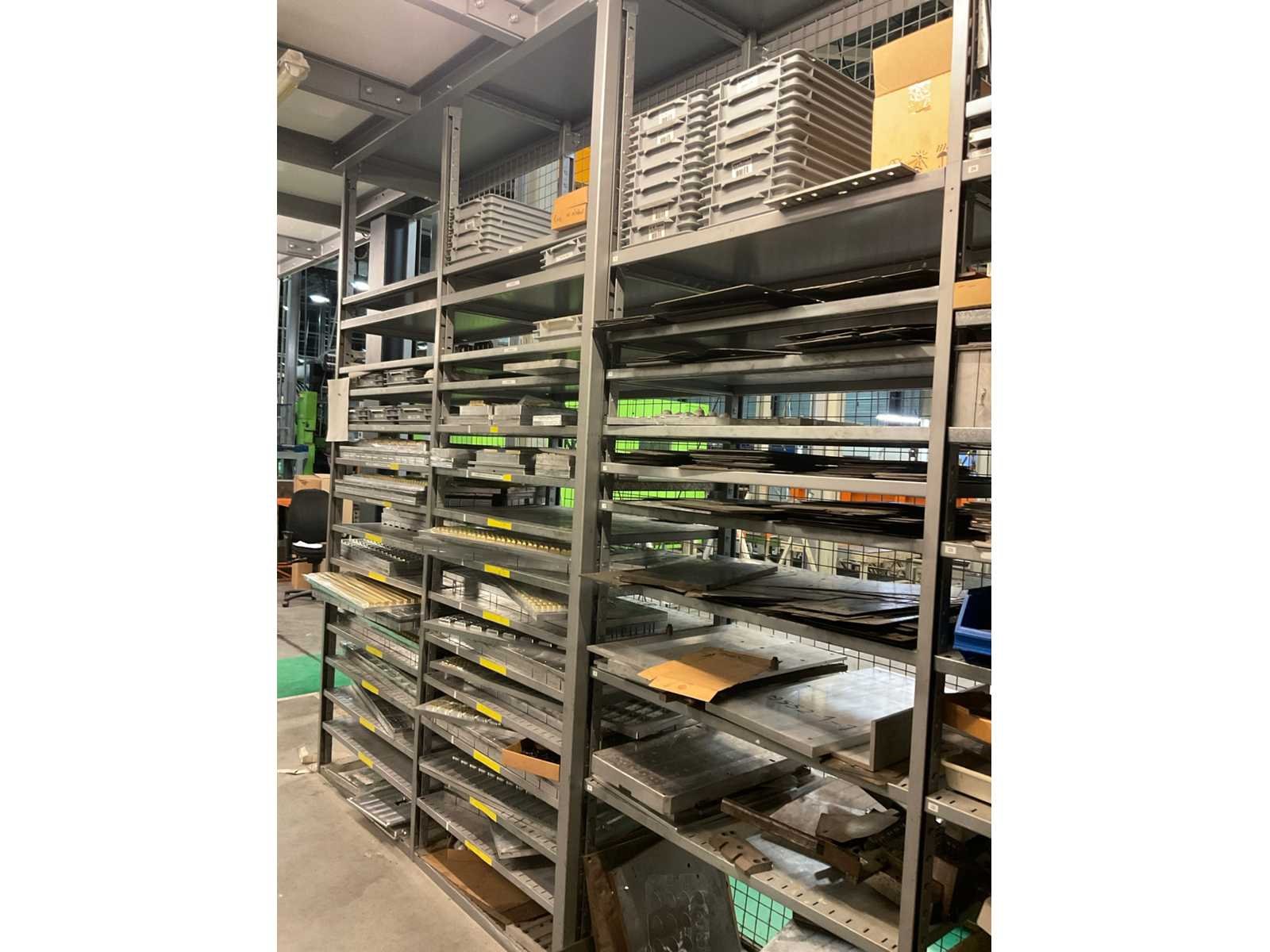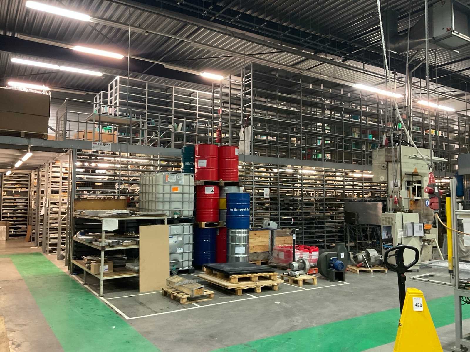 Bestaande uit bordesvloer 22x11 meter Belastbaarheid 500 kg/m2 Voorzien van verlichting Stalen trap voorzien van 15 traanplaat treden breedte ca. 108 cm en 2 leuningen 10 rijen stalen stelling bestaande uit 1x rij van 19secties met legborden en 22 laden 1x dubbele rij stelling van 16 secties (2x16) met legborden 3x dubbele rij stelling van 19 secties (2x19) met legborden 1x rij van 20 secties met legborden 1x rij van 4 secties met legborden Bovenkant entresol voorzien van leuningen Enkele stut palen, overige is gefixeerd aan de stellingen De inhoud is niet inbegrepen. Stellingen en overige zaken op de entresol niet inbegrepen Nee Merk: Schäfer Type: R4000 Bouwjaar: 2002 Totale afmeting L: 21500mm Totale afmeting Breedte: 10500mm Totale afmeting Hoogte: 4000mm Vloerhoogte: 2980mm Houten vloer: true Met trap: true