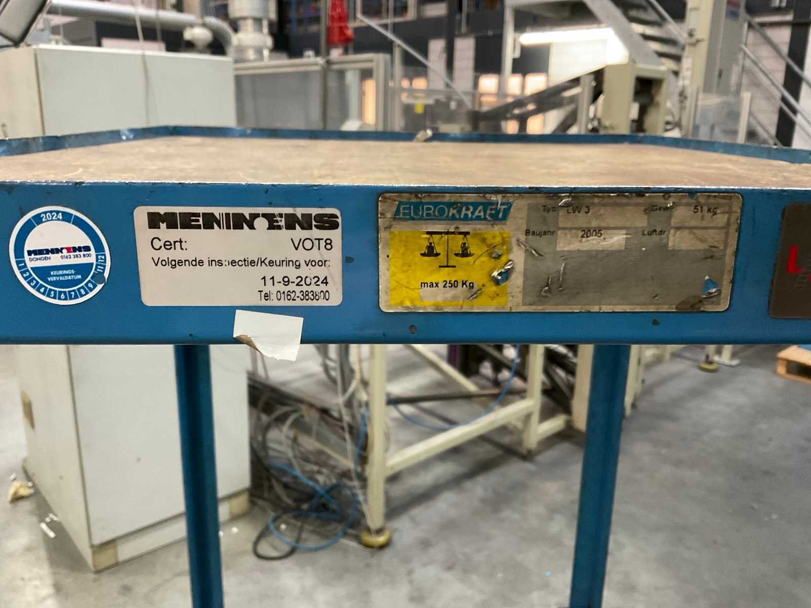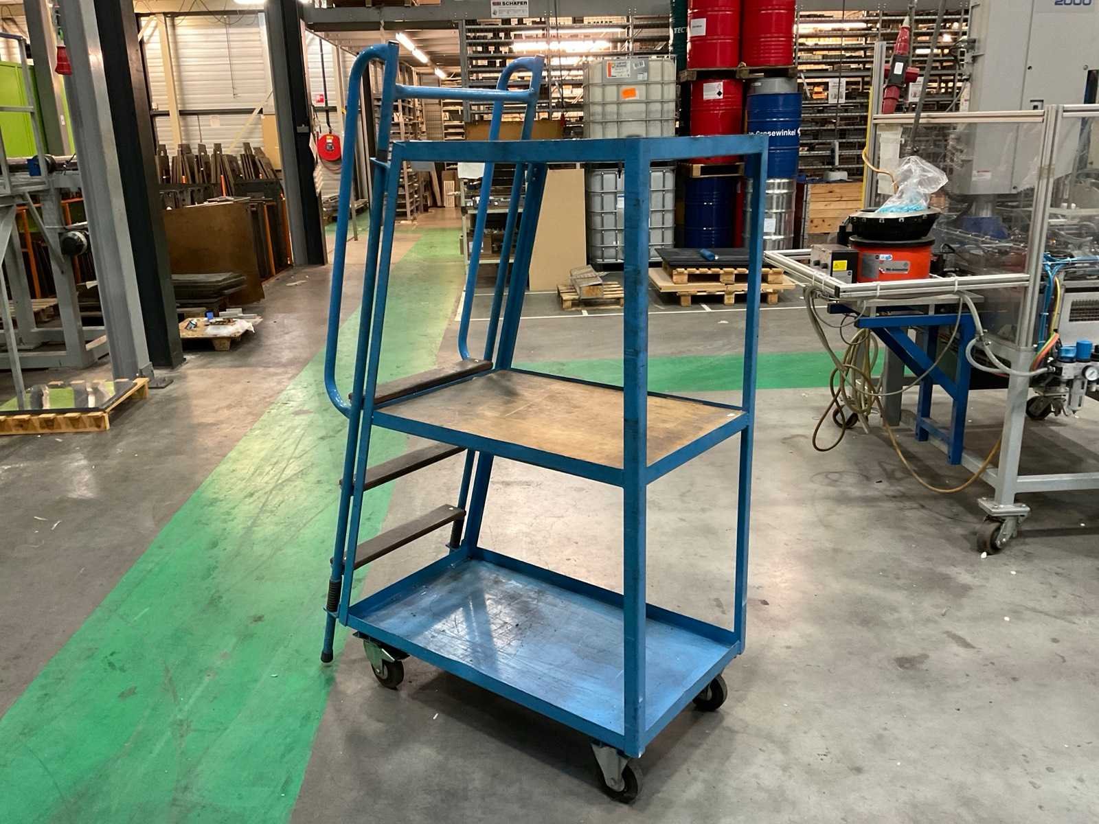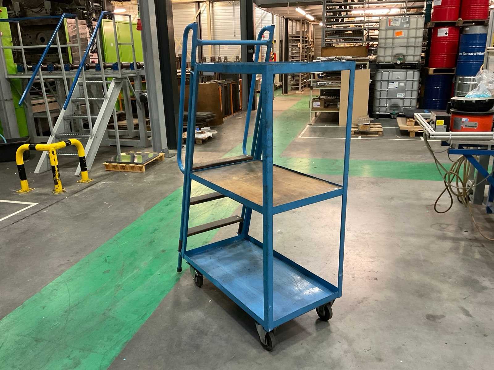 Voorzien van 3 tredes. Draagvermogen max 250 kg. Nee Merk: Eurokraft Type: LW3 Bouwjaar: 2005 Totale afmeting L: 550mm Totale afmeting Breedte: 1150mm Totale afmeting Hoogte: 1740mm Eigen gewicht: 51kg