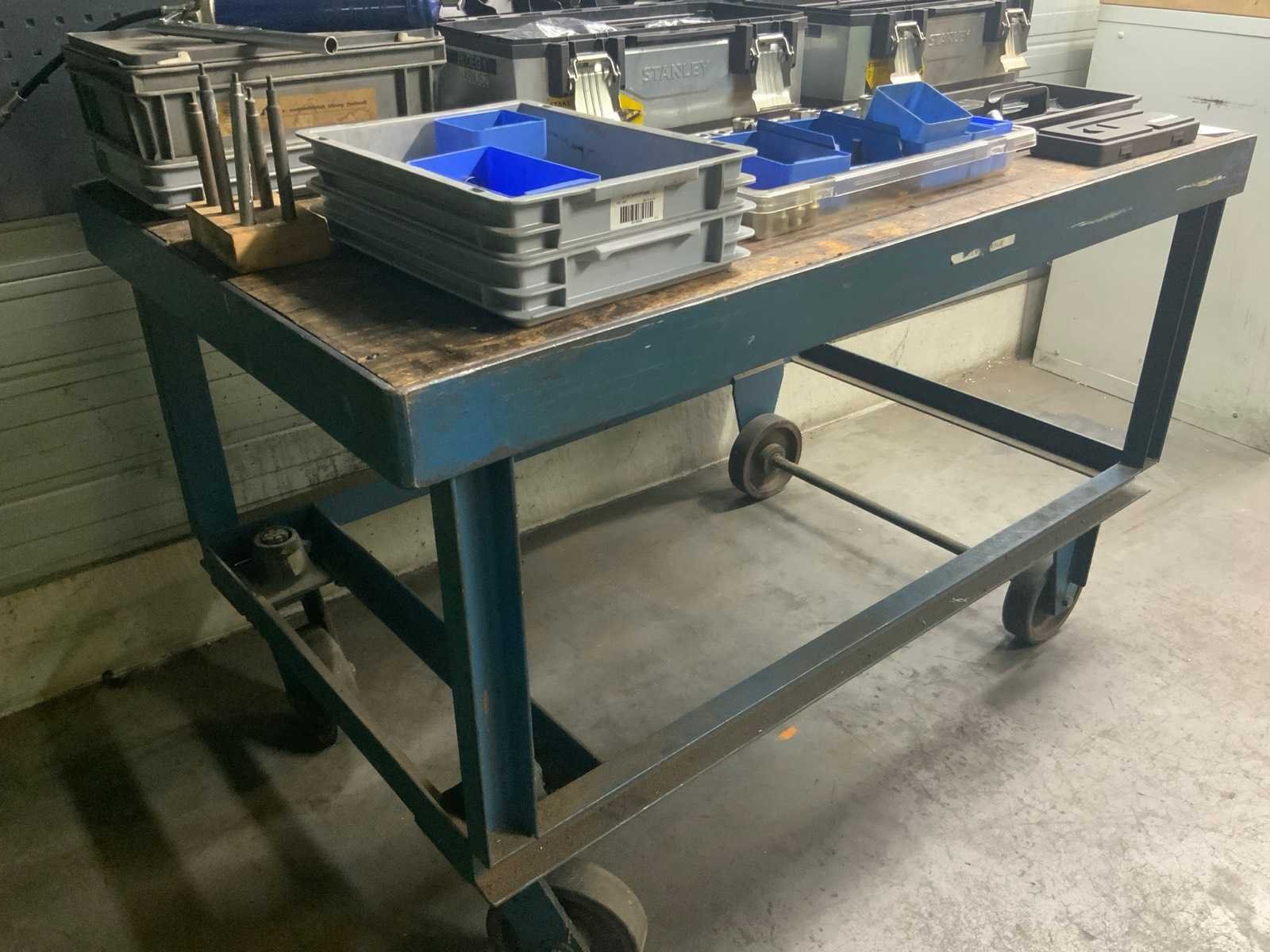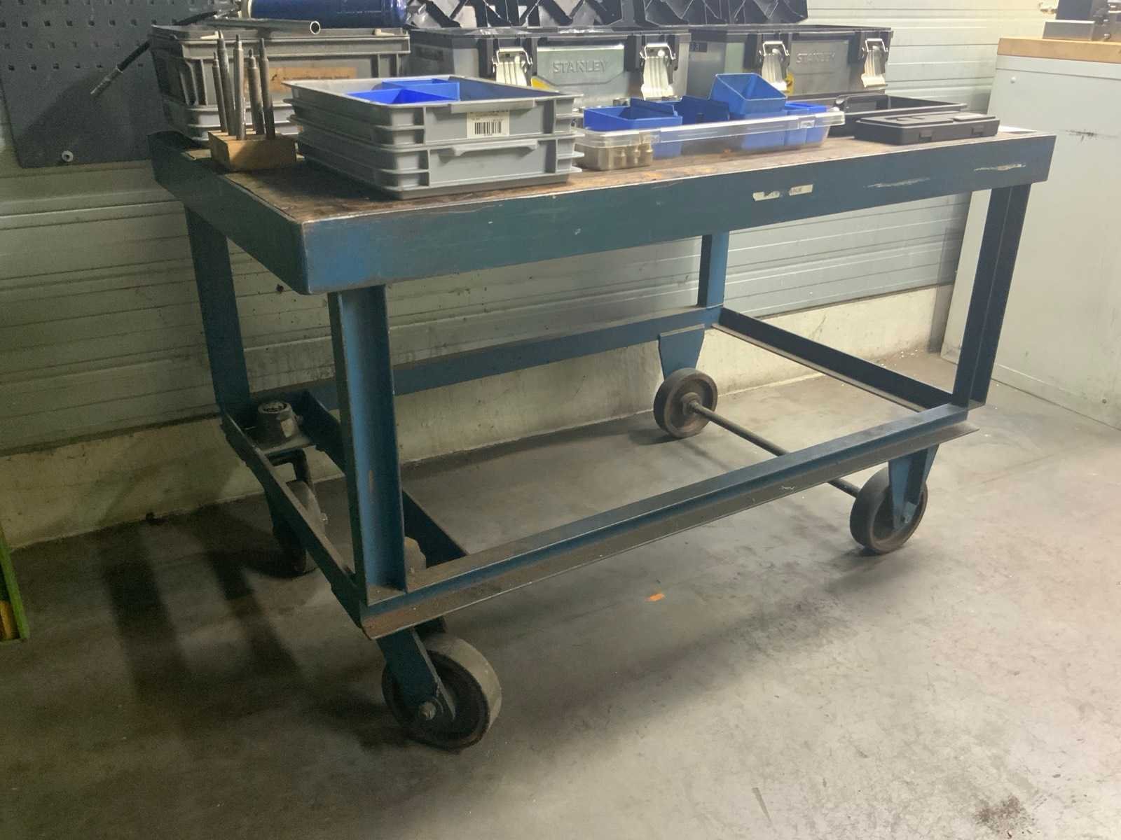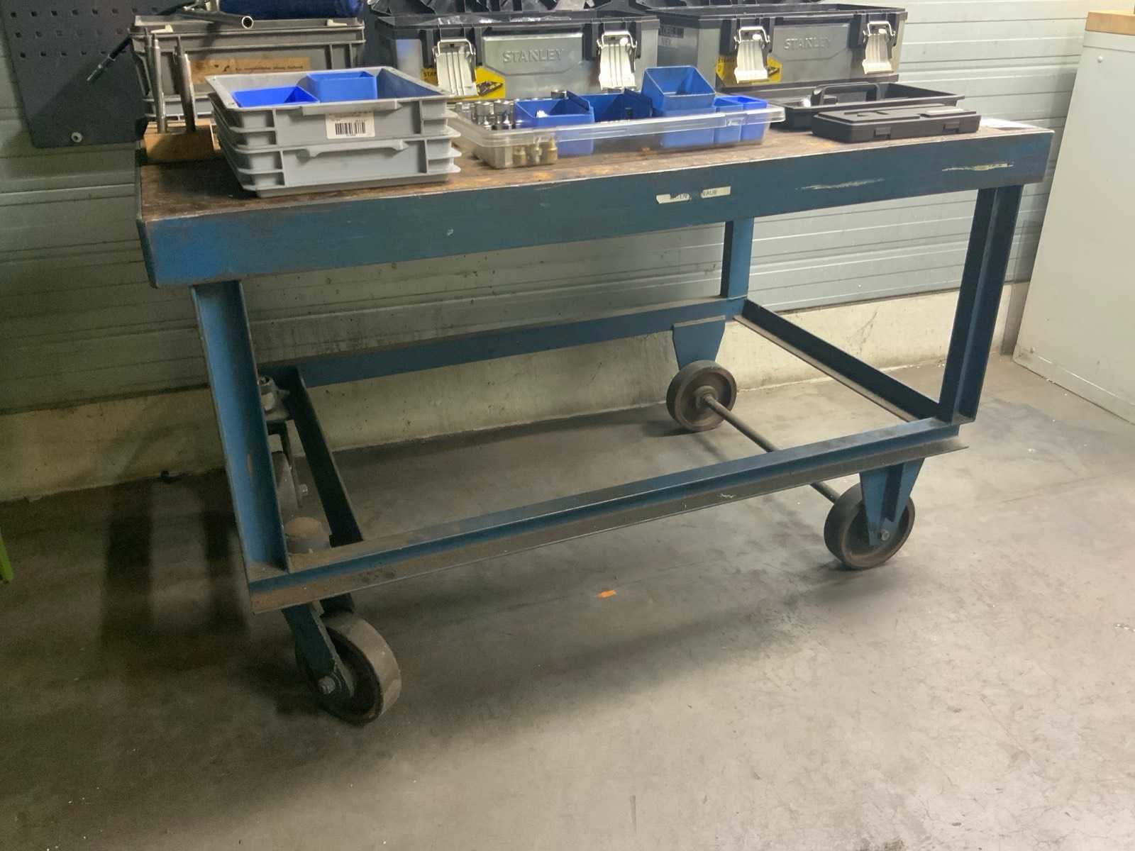 Kavel betreft de kar, artikelen op de kar of op de achtergrond zijn niet inbegrepen. Nee Kleur: Blauw Lengte: 150cm Breedte: 90cm Hoogte: 92cm