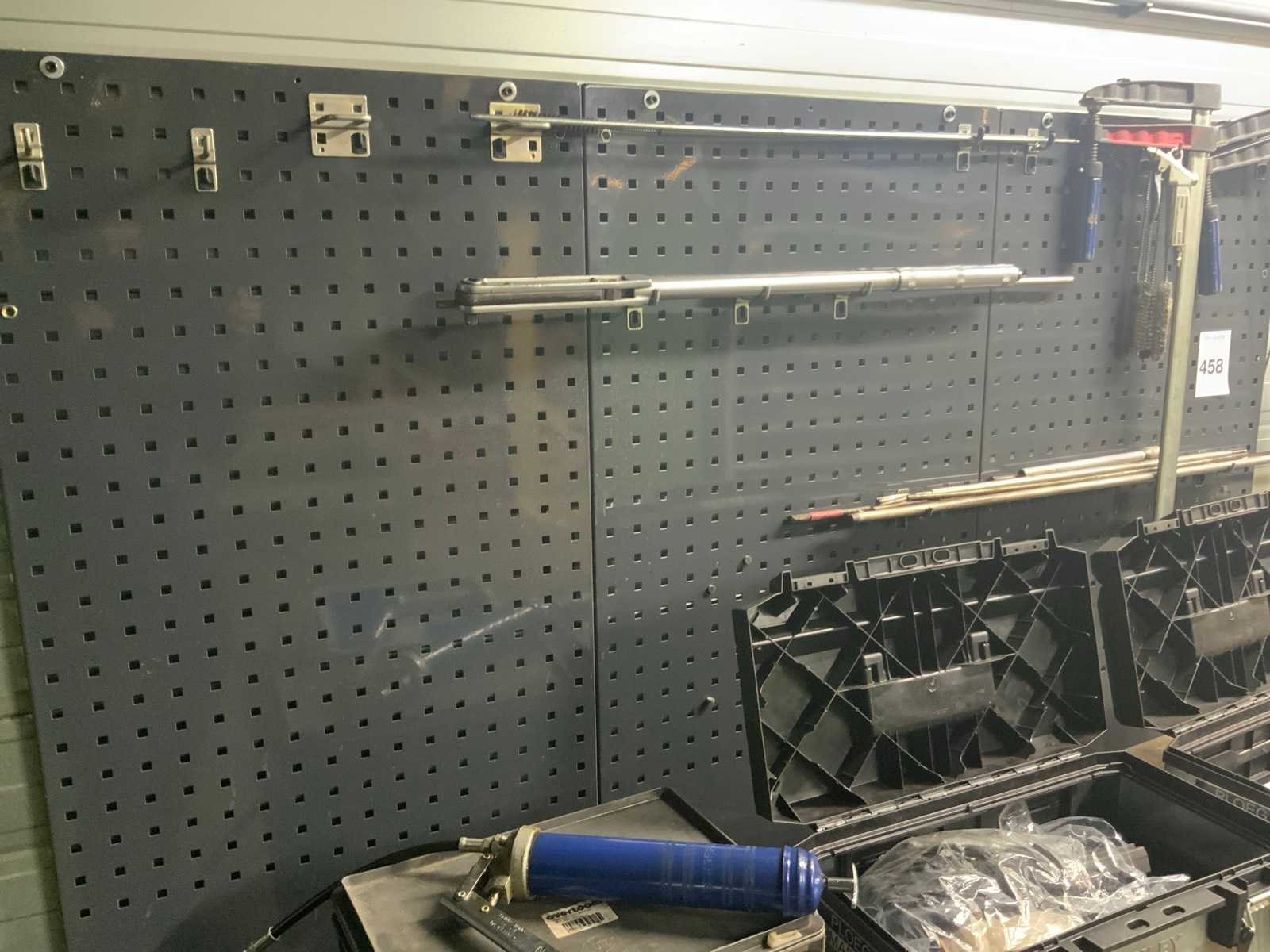 Betreft 3 panelen bevestigd aan de muur, koper dient zelf voldoende gereedschap mee te nemen voor demontage. Afmetingen per paneel zijn: 62 x 105 cm. Gereedschap bestaande uit onder andere: lijmklemmen, schuifmaat, inbussleutels en draadeinden. Kar (deels zichtbaar op foto) waar gereedschap op ligt is niet inbegrepen. Nee