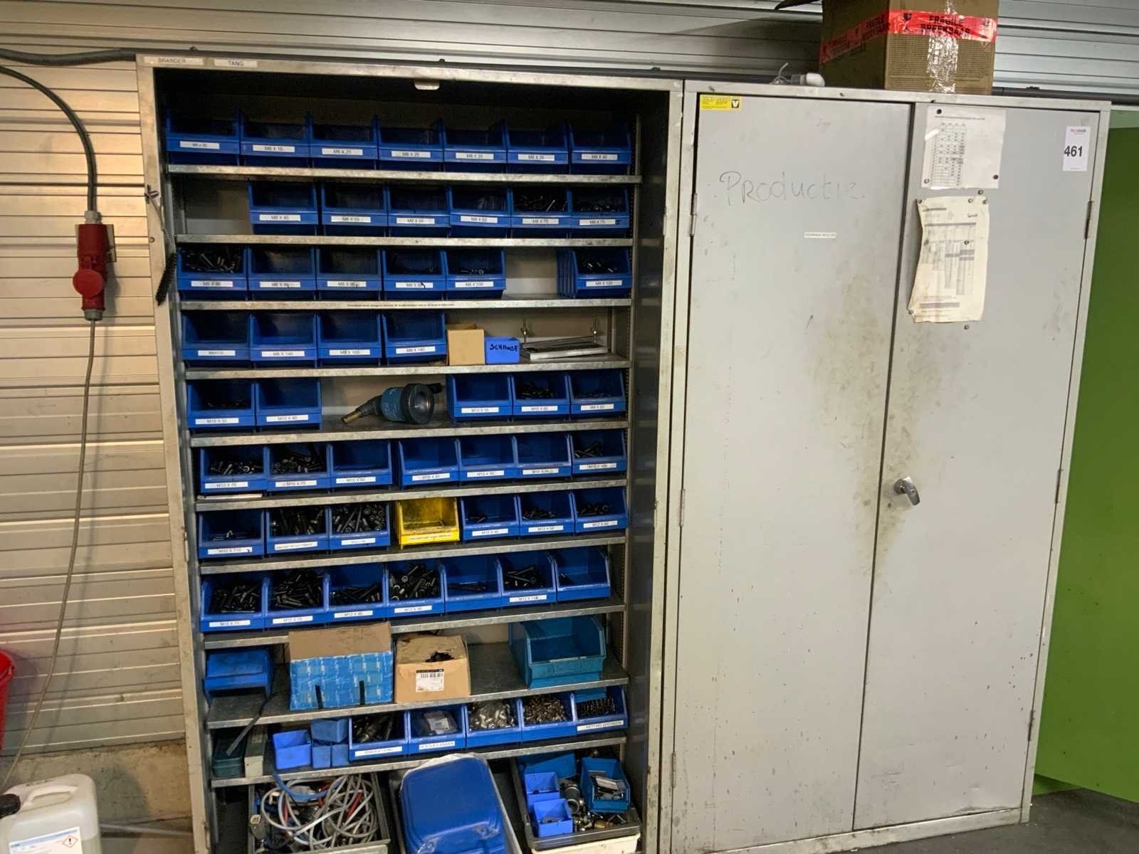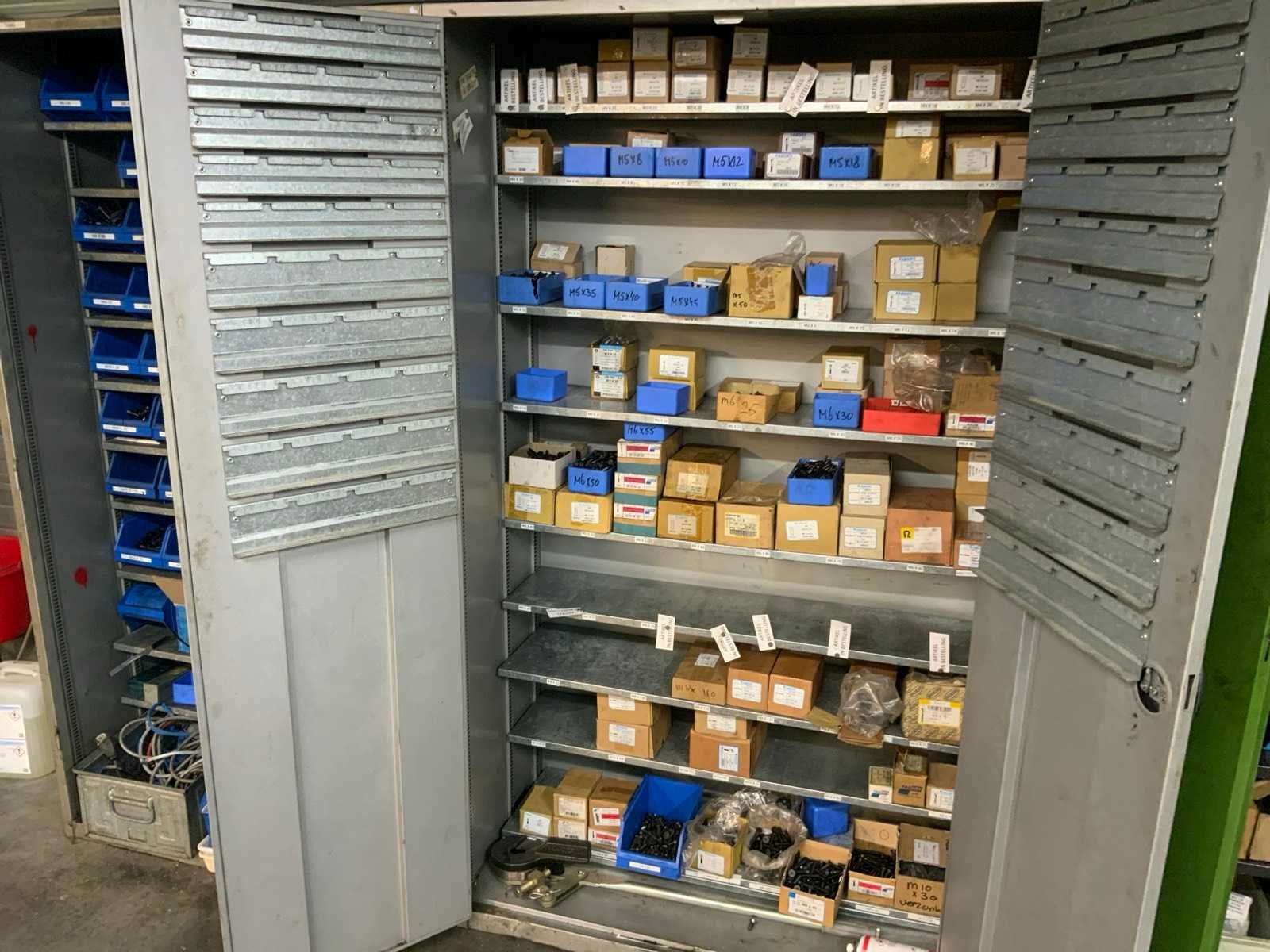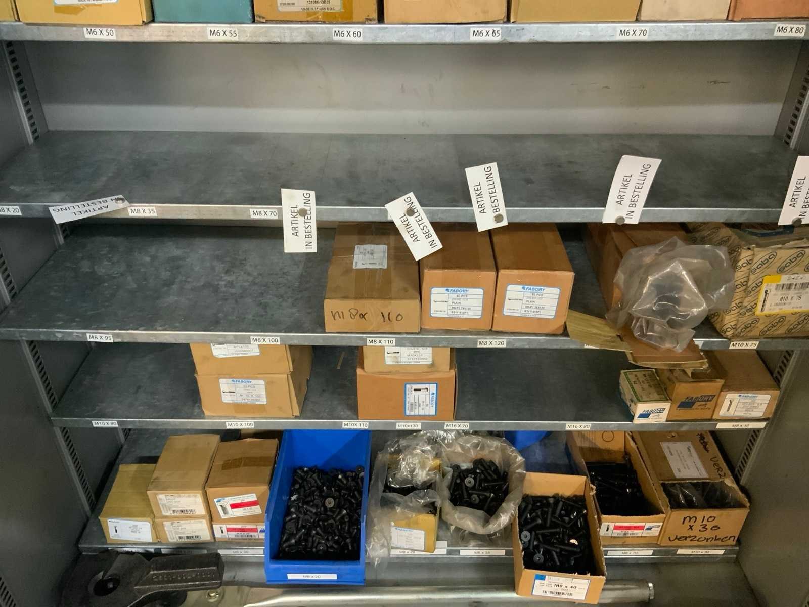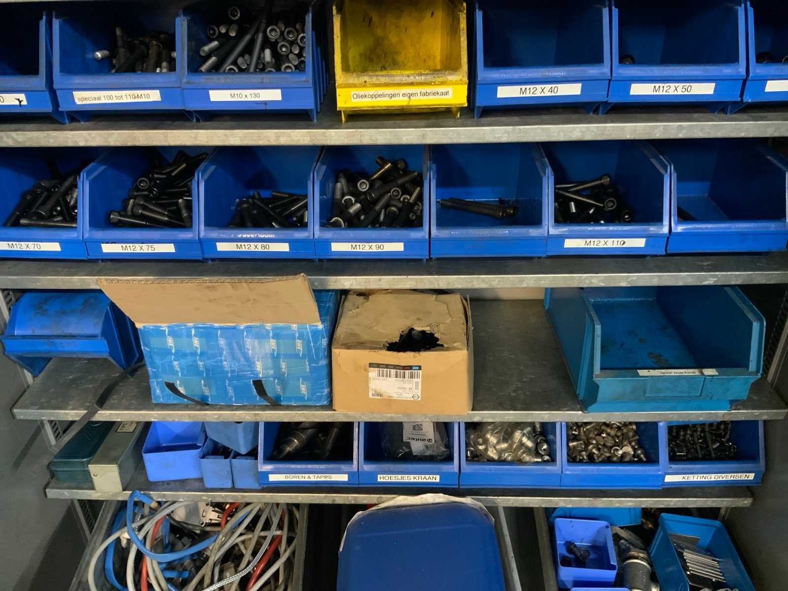 Inhoud bestaande uit onder andere: inbusbouten in diverse maten, verzonken kop inbusbouten, jerrycan en elektrakabels. Nee Kleur: Grijs Lengte: 110cm Breedte: 54cm Hoogte: 195cm