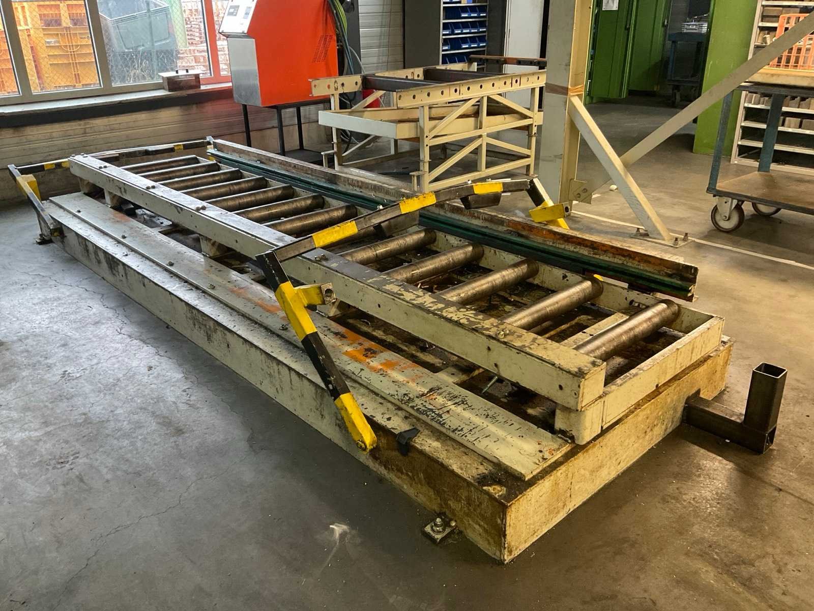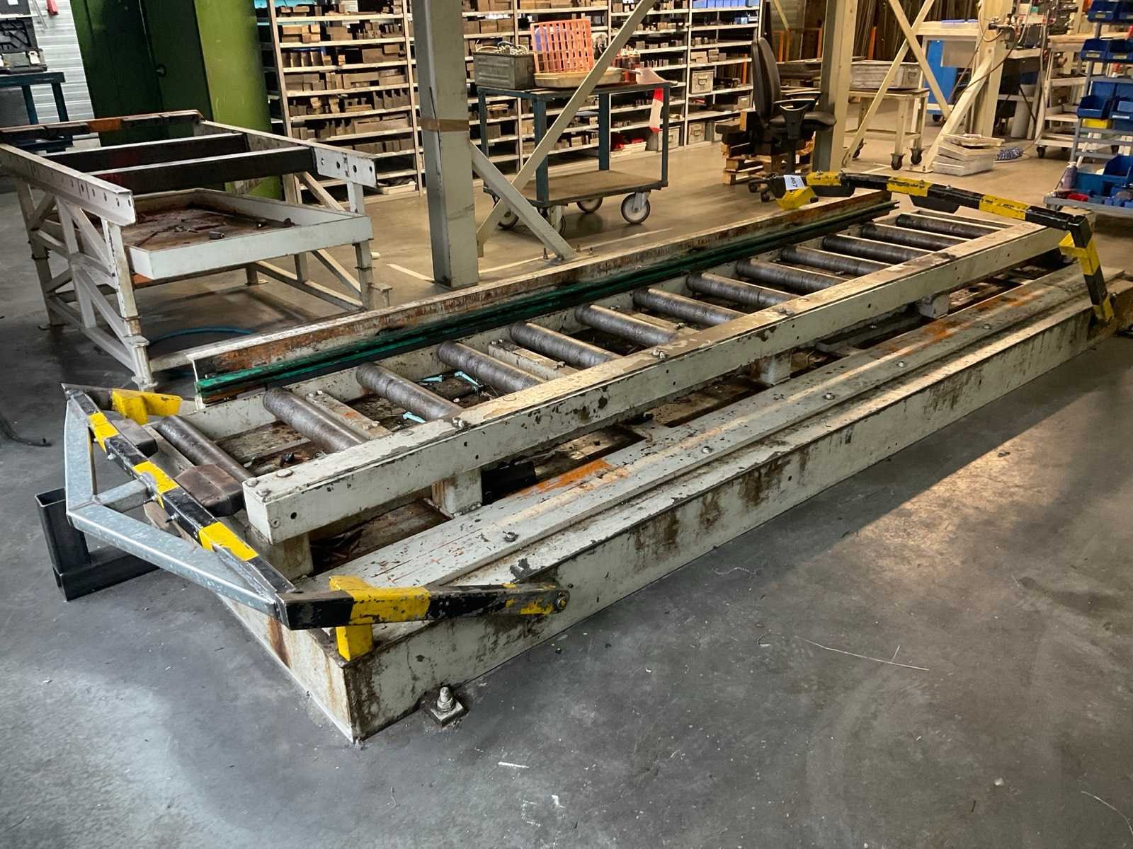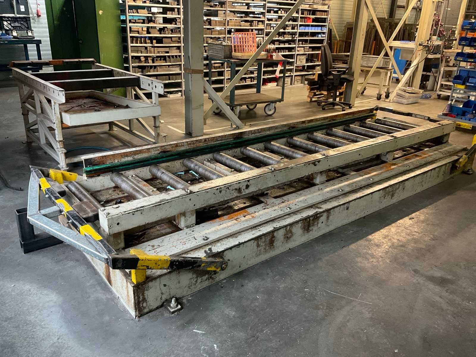 Stalen oozettafel voorzien van rollen en steunen afm ca. 450x143x110 cm En reinigingstafel afm ca. 190x106x83 cm Nee