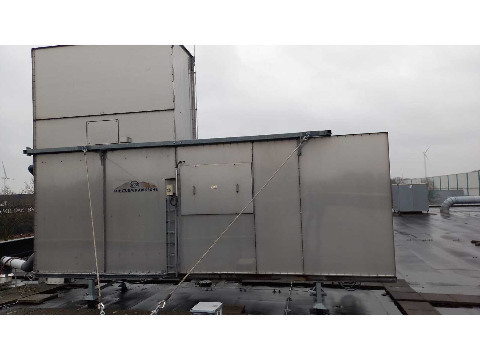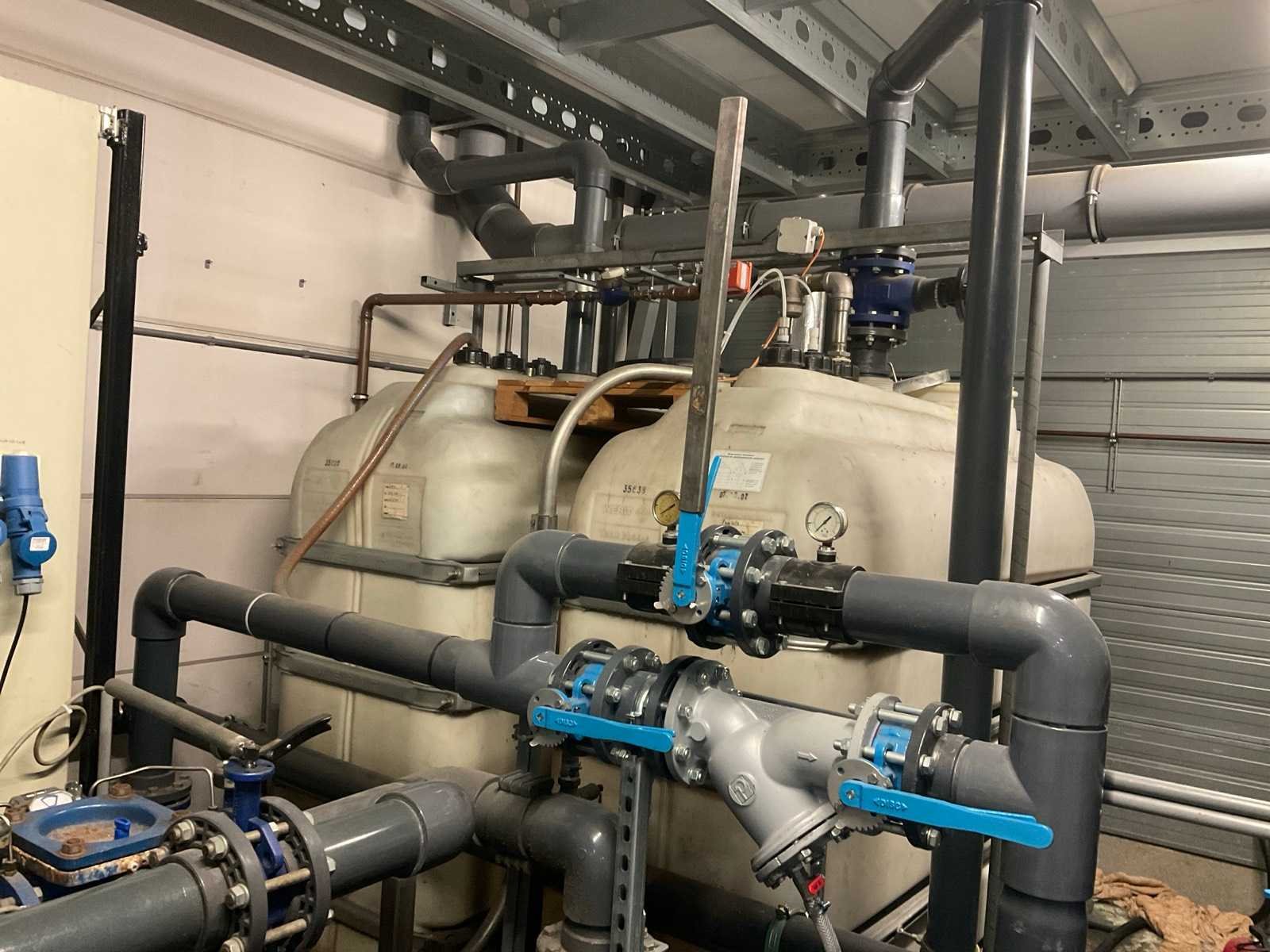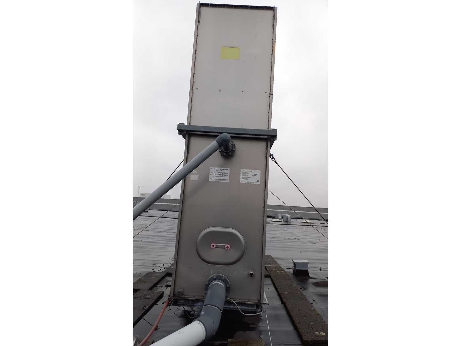 Bestaande uit 3 kunststof watervoorraadtanks Werit 3m3 met frame 3 pompen KSB Filter inrichting Boll & kirch Kunststof aanvoer en retourleiding Waarvan op dak geplaatste koelinstallatie en luchtzuigkanalen bij het pand blijven Nee Merk: Werit, KSB