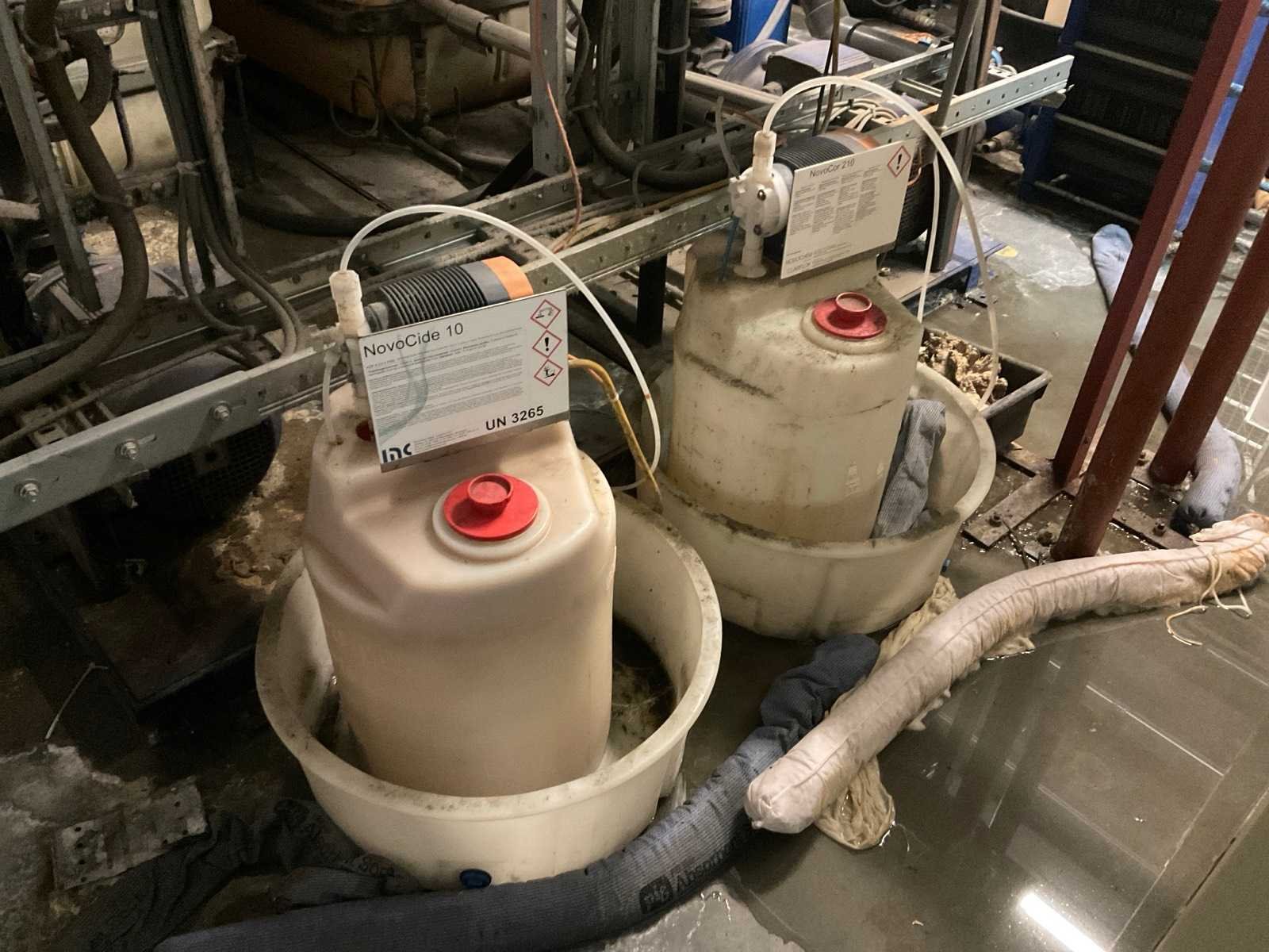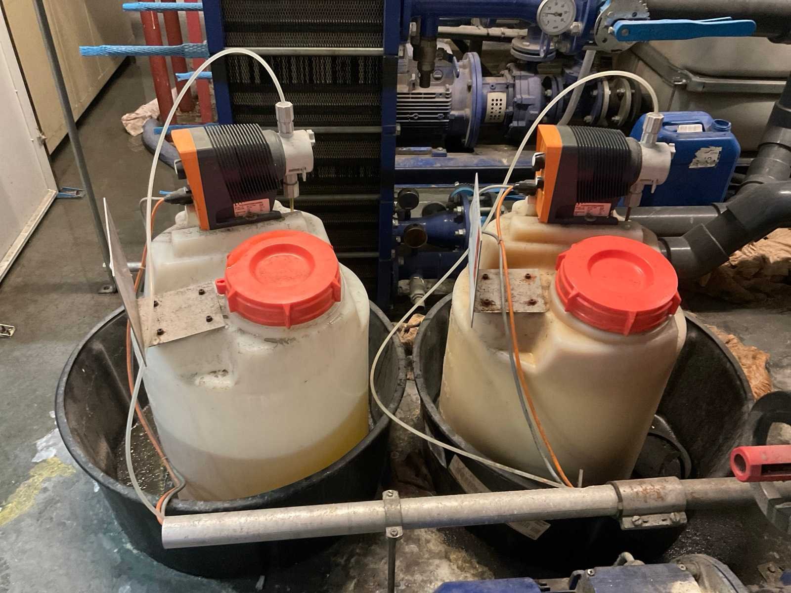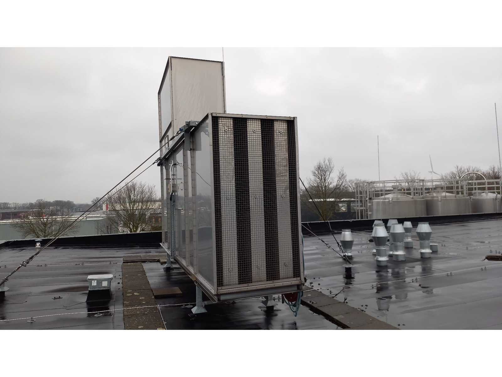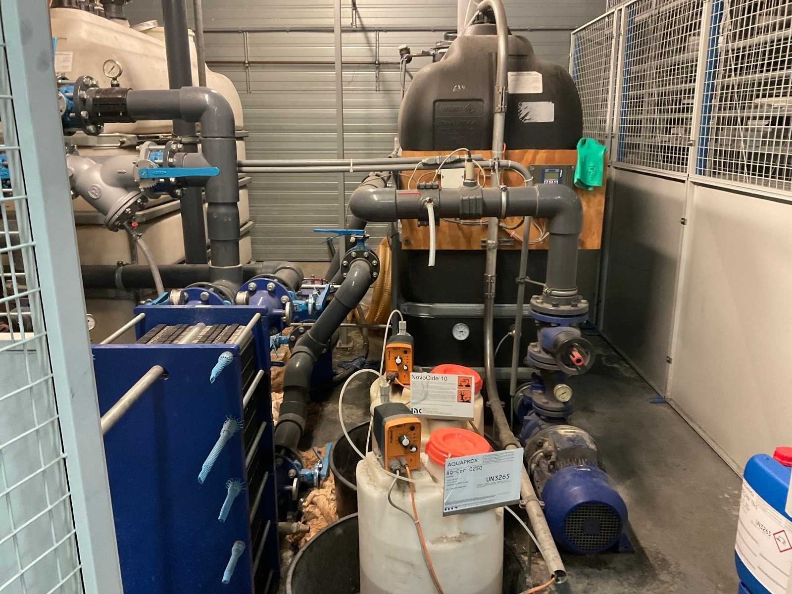 Bestaande uit 3 kunststof watervoorraadtanks Werit 3m3 met frame 3 pompen KSB Filter inrichting Boll & kirch Kunststof aanvoer en retourleiding Waarvan op dak geplaatste koelinstallatie en luchtzuigkanalen bij het pand blijven Nee Merk: Werit, KSB