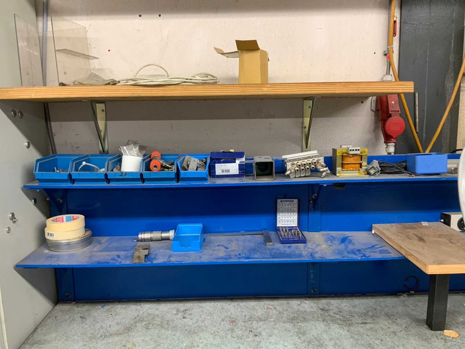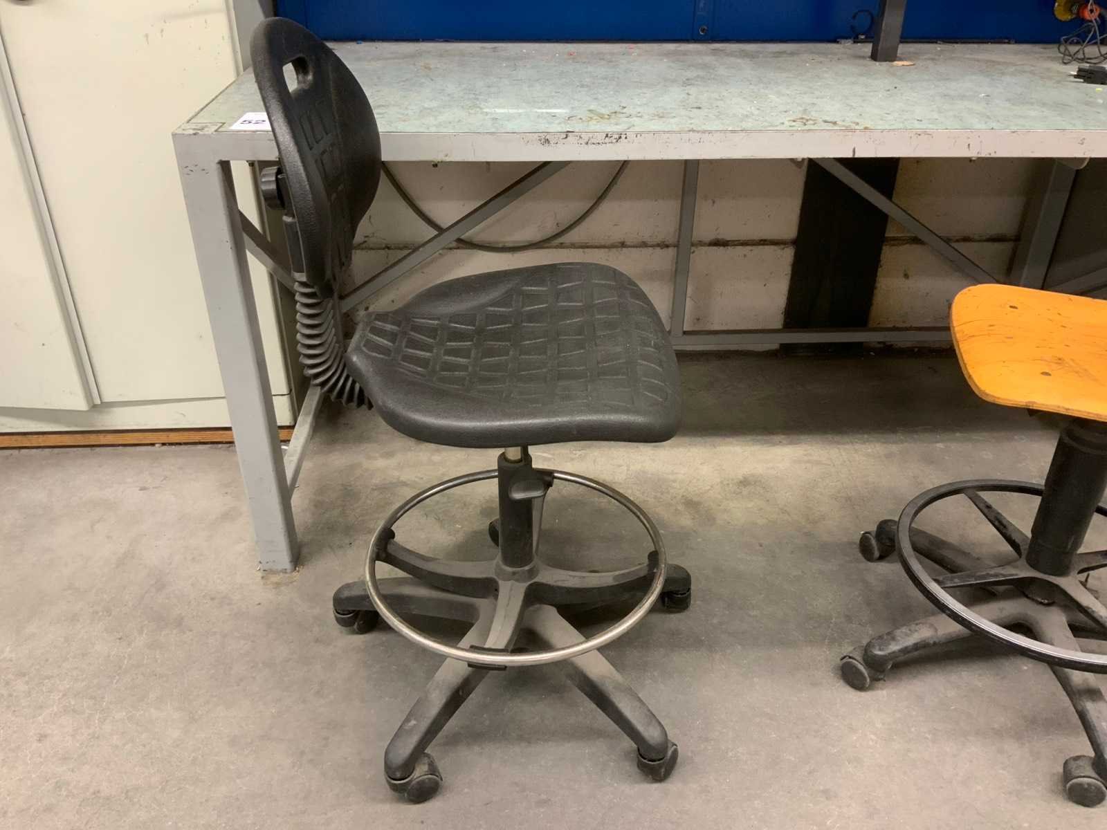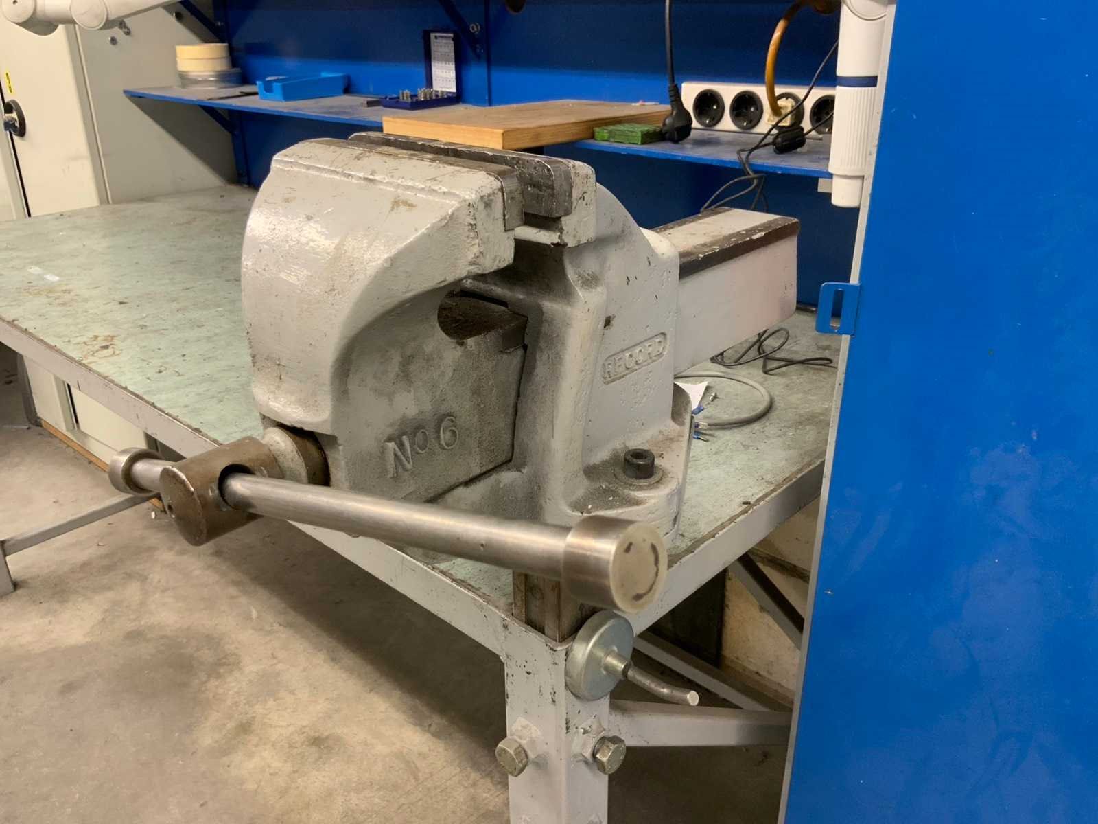 Werktafel Voorzien van bankklem van Record, achterwand met 2 planken, alsmede een extra houten plank met muurbevestiging. Inhoud op de planken zoals bakjes met diverse boutjes zijn inbegrepen. Werkstoelen zijn voorzien van vijfpotig onderstel en verstelbare zitting en rugleuning. Nee Breedte: 800mm Lengte: 1800mm Hoogte: 800mm