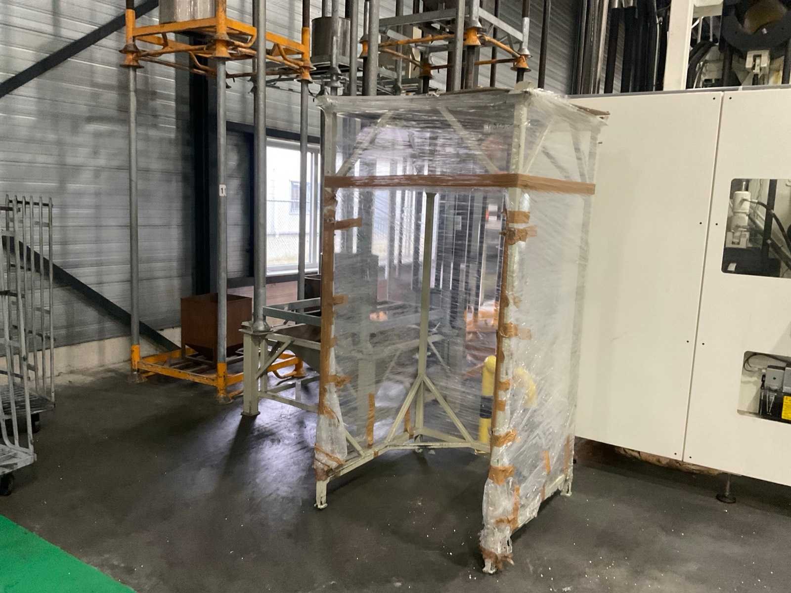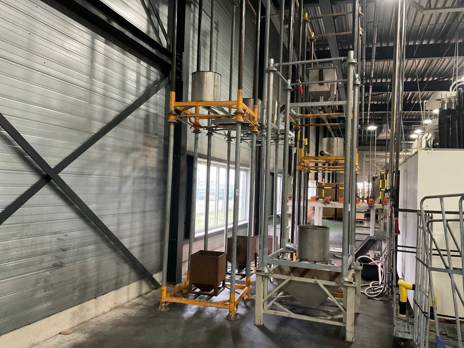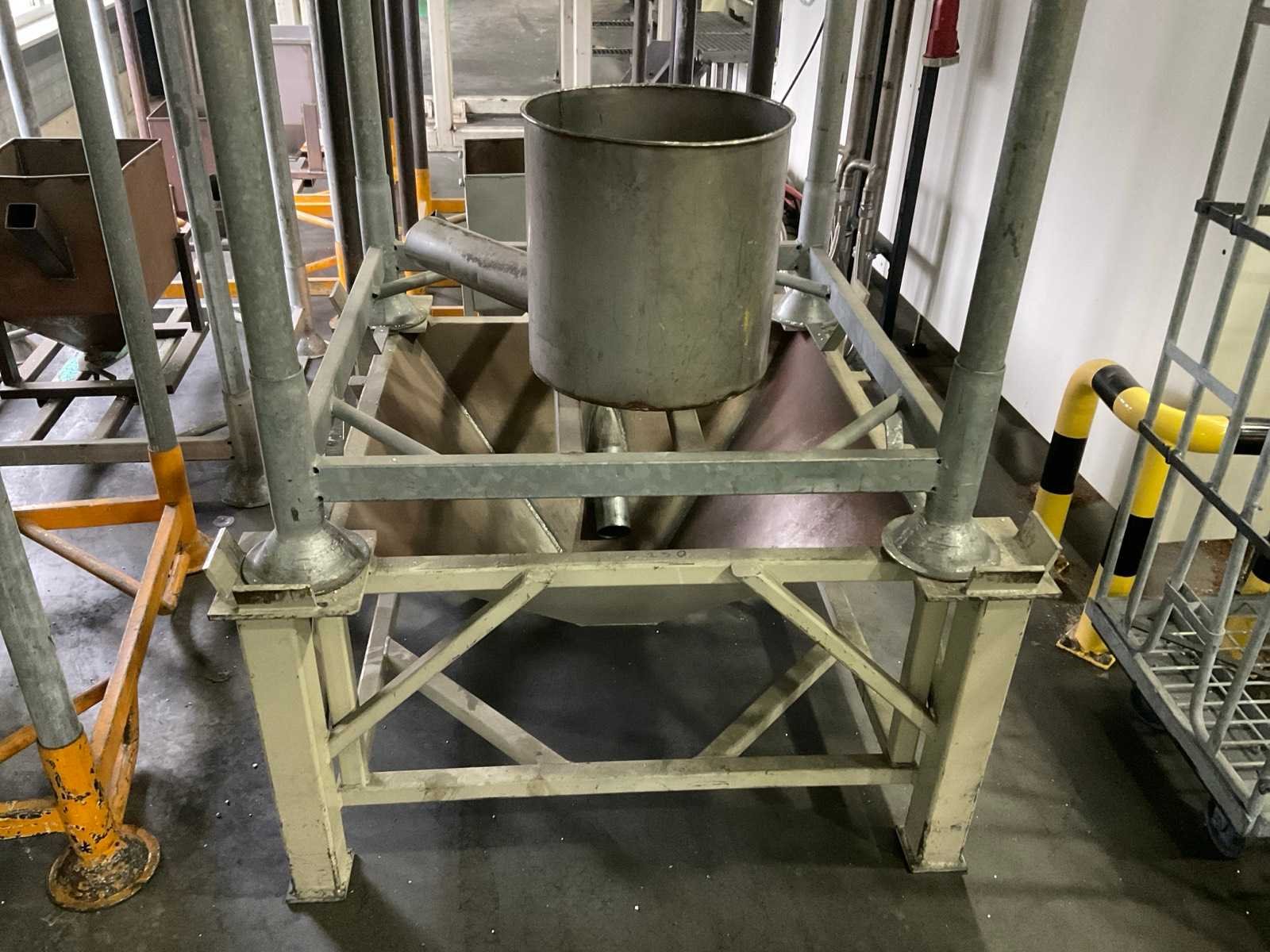 Voorzien van vaste trechterbakken en losse buizen Gebruikt t.b.v. vullen van bigbags Diverse hoogtes Alsmede stalen opvangbok En big bag frame Nee Afmeting l: 1000mm Afmeting b: 1000mm Afmeting h: 2500mm Staal: true