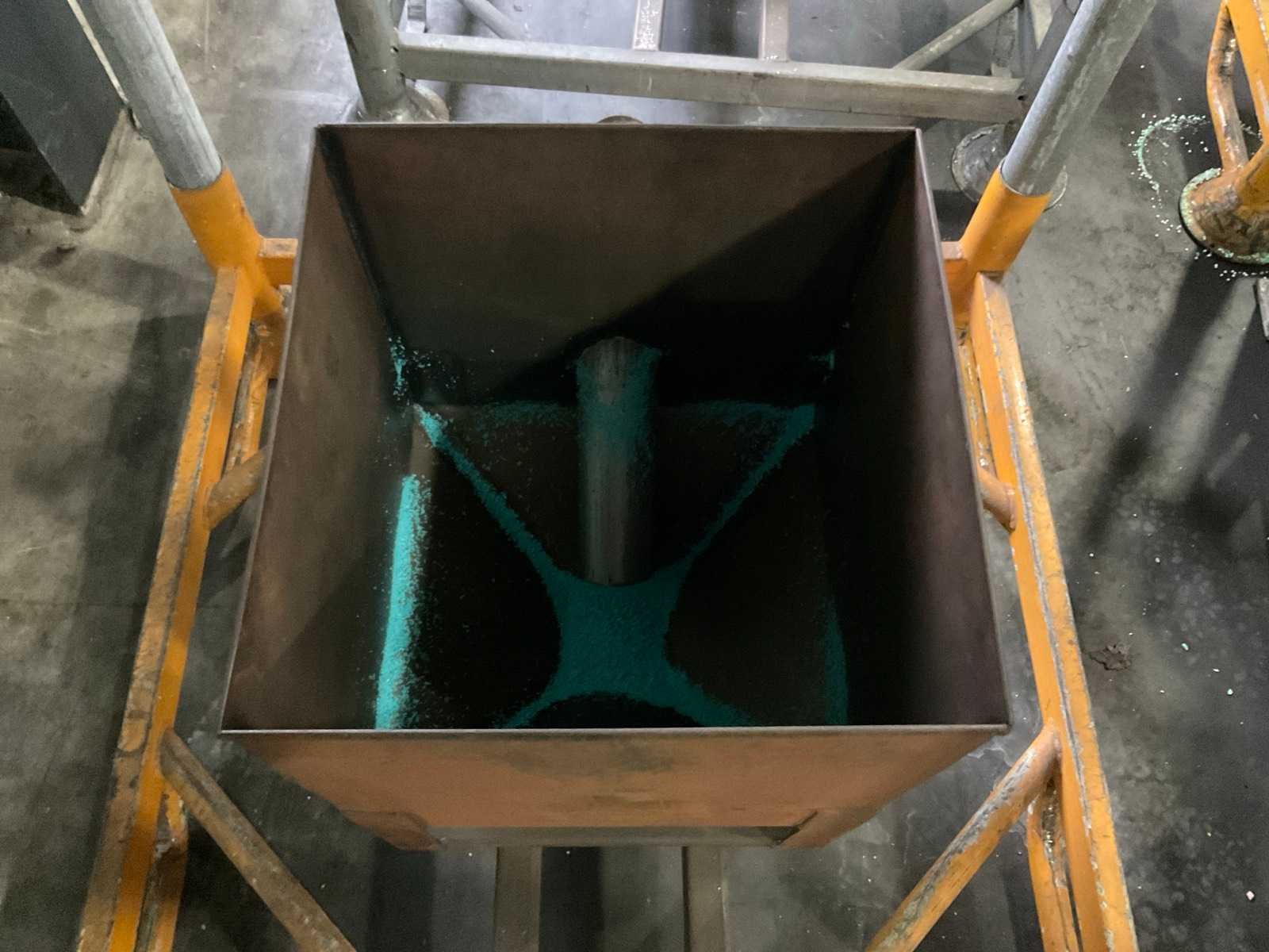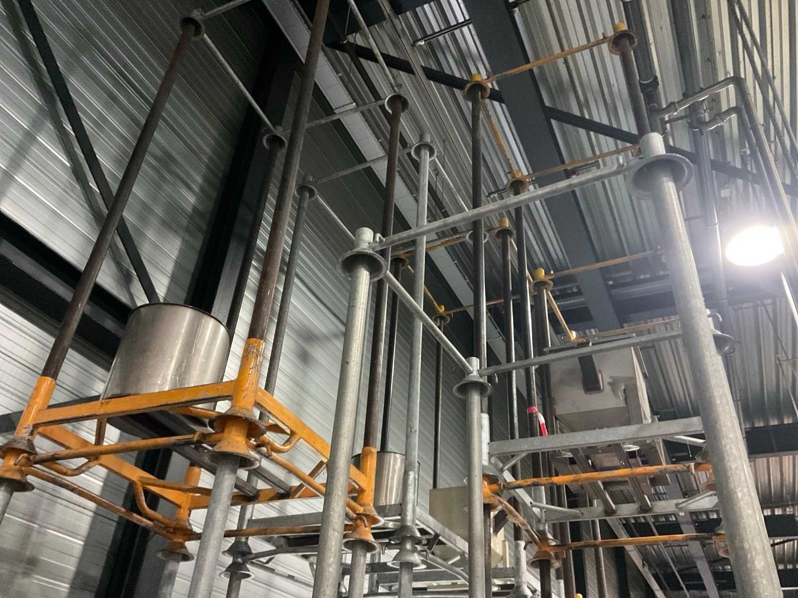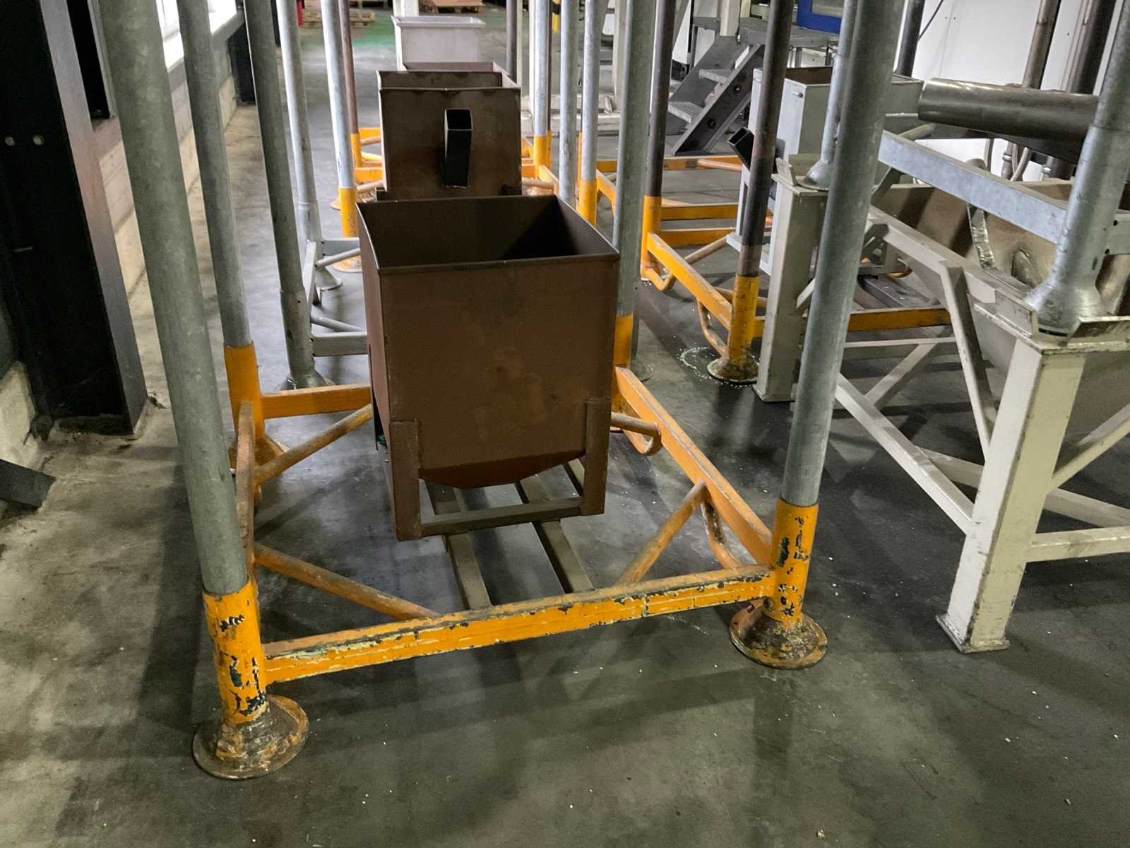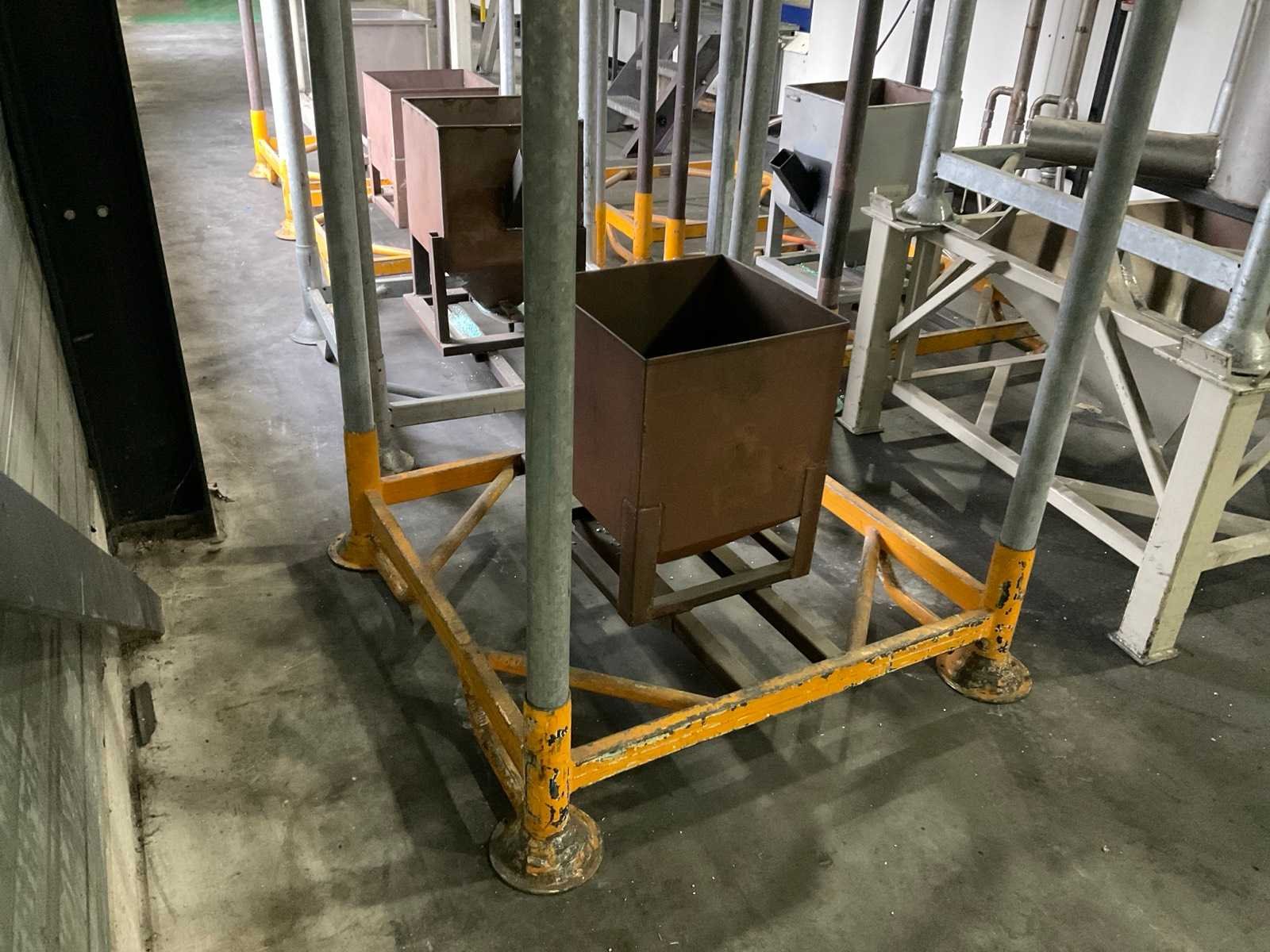 Voorzien van vaste trechterbakken en losse buizen Gebruikt t.b.v. vullen van bigbags Diverse hoogtes Alsmede stalen opvangbok En big bag frame Nee Afmeting l: 1000mm Afmeting b: 1000mm Afmeting h: 2500mm Staal: true