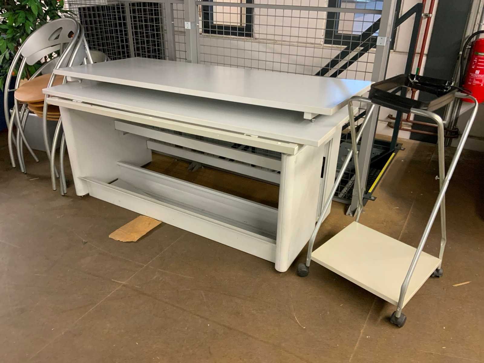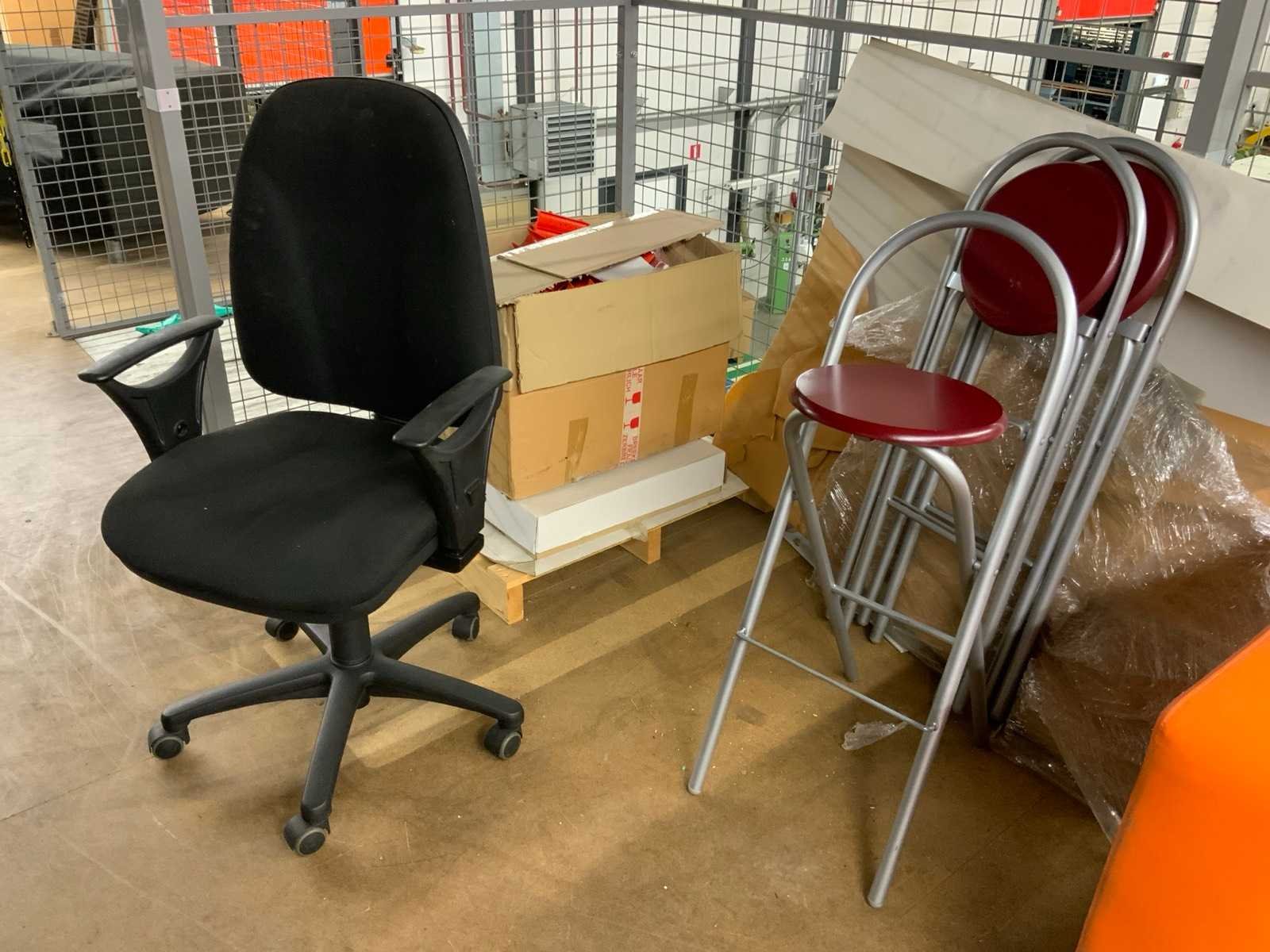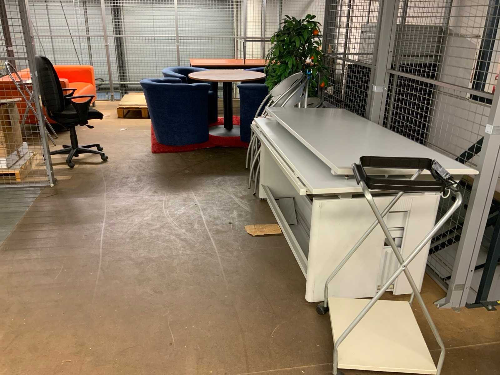 Bestaande uit 8 secties archiefstelling afm ca. 110x80x220 cm per sectie (De inhoud is niet inbegrepen.) Bank, verrijdbaar kastje, bureautafels, stapelbare stoelen, kunstplant, archiefkast, vergadertafel met 4 gestoffeerde kuipstoelen, bureaustoel, kunstlederen bank, opklapbare krukken, vloerkleed Let op; Dit kavel bevindt zich op een entresolvloer welke via een trap bereikbaar is Nee