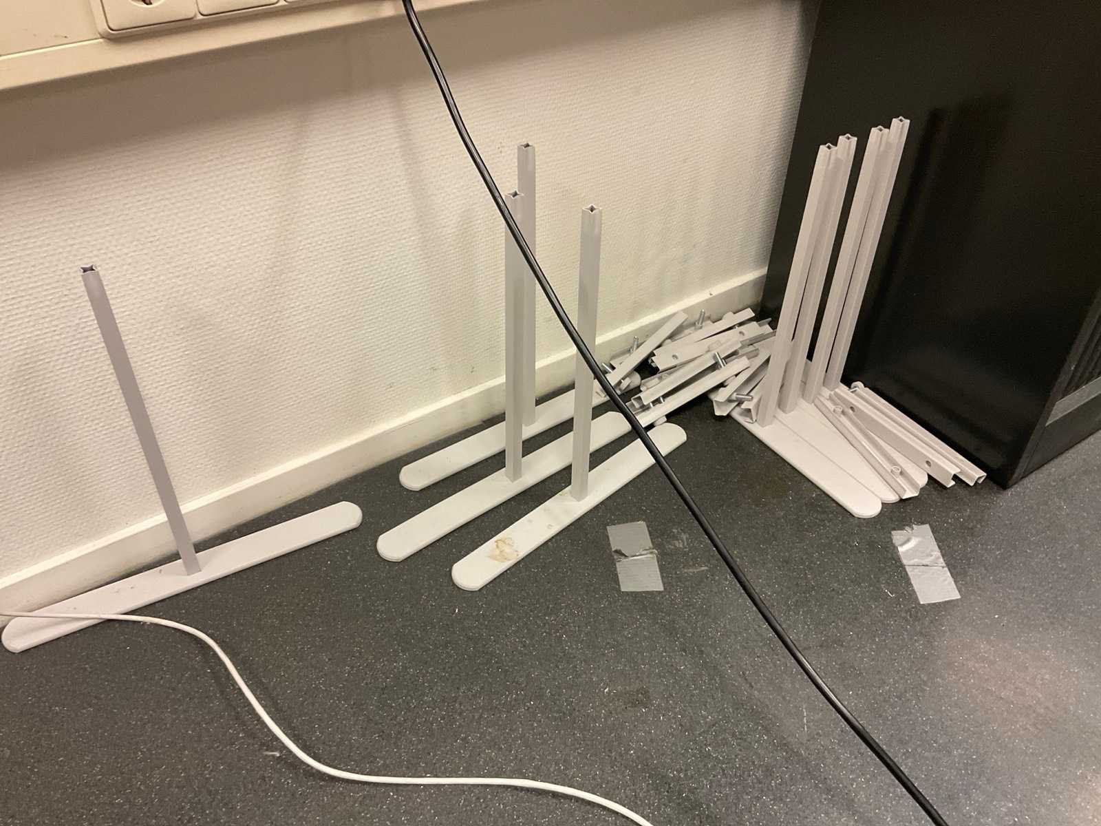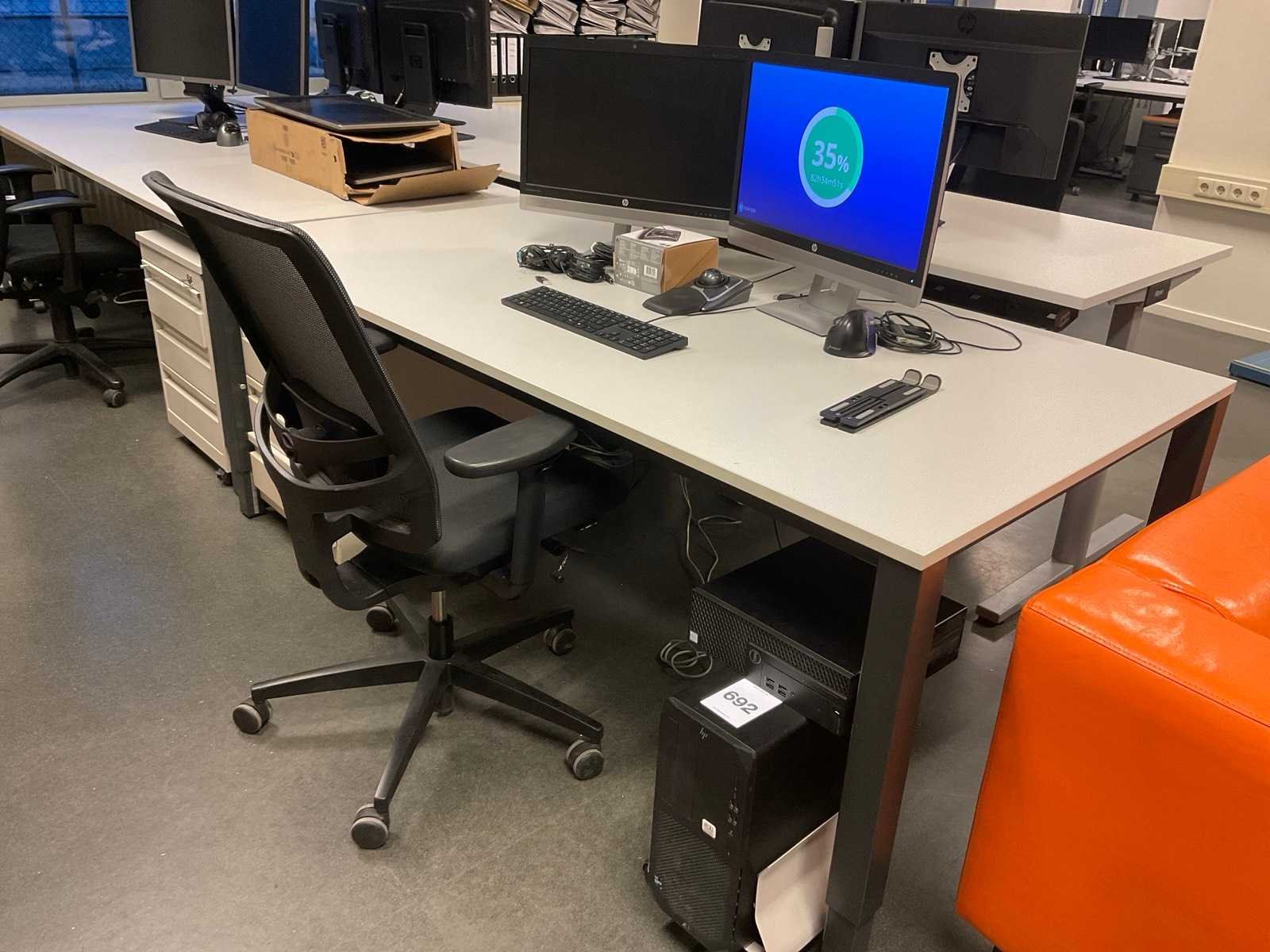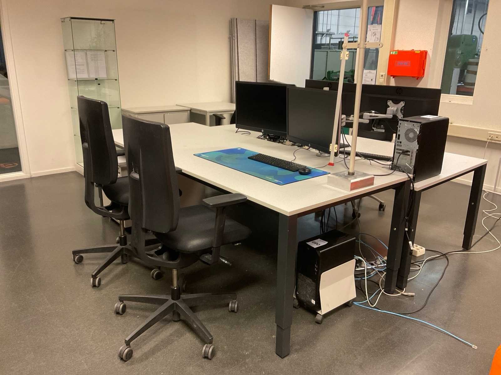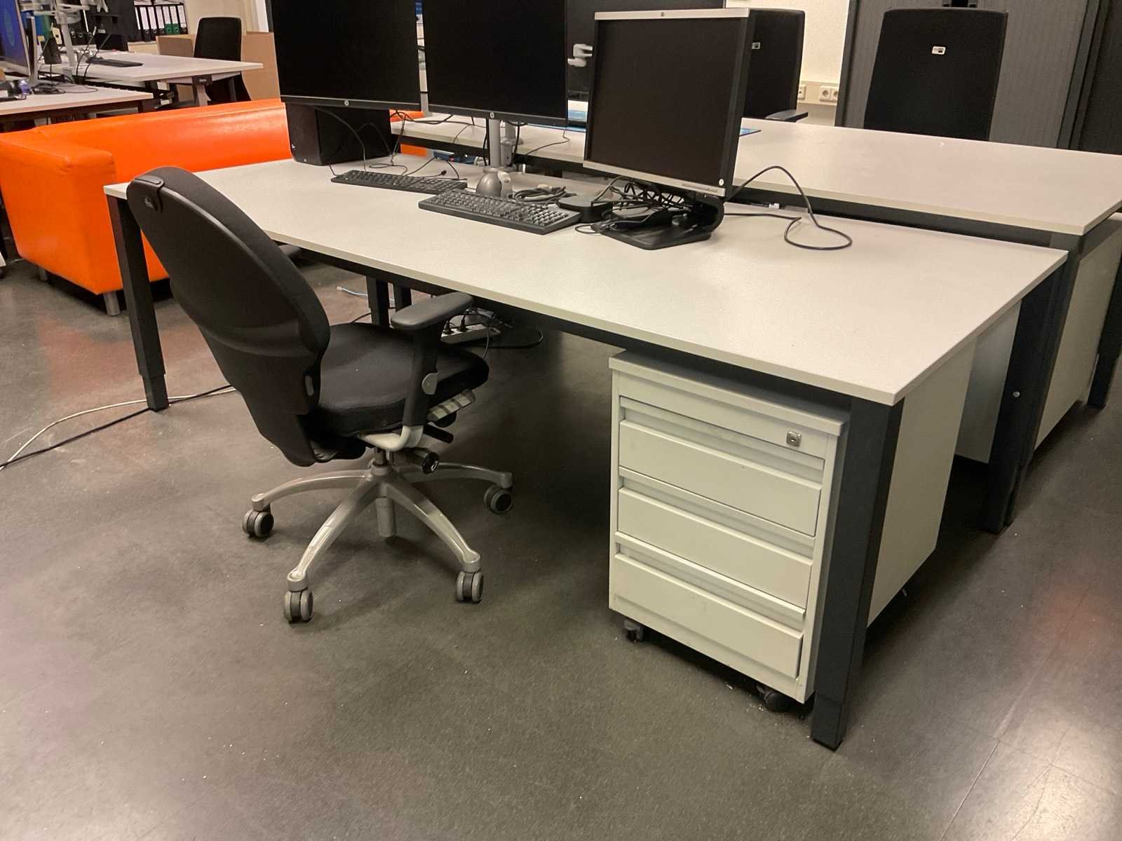 Kavel bestaat uit 6x bureau 200x100cm en 240x100cm, diverse akoestische scheidingspanelen met steunen, tafel afm ca. 80x80 cm, draaideurkast, 8x bureaustoel, 6x ladeblok, prullenbakken, 2 kapstokken en vitrinekast (Anders verkavelde zaken en ICT niet inbegrepen) Nee