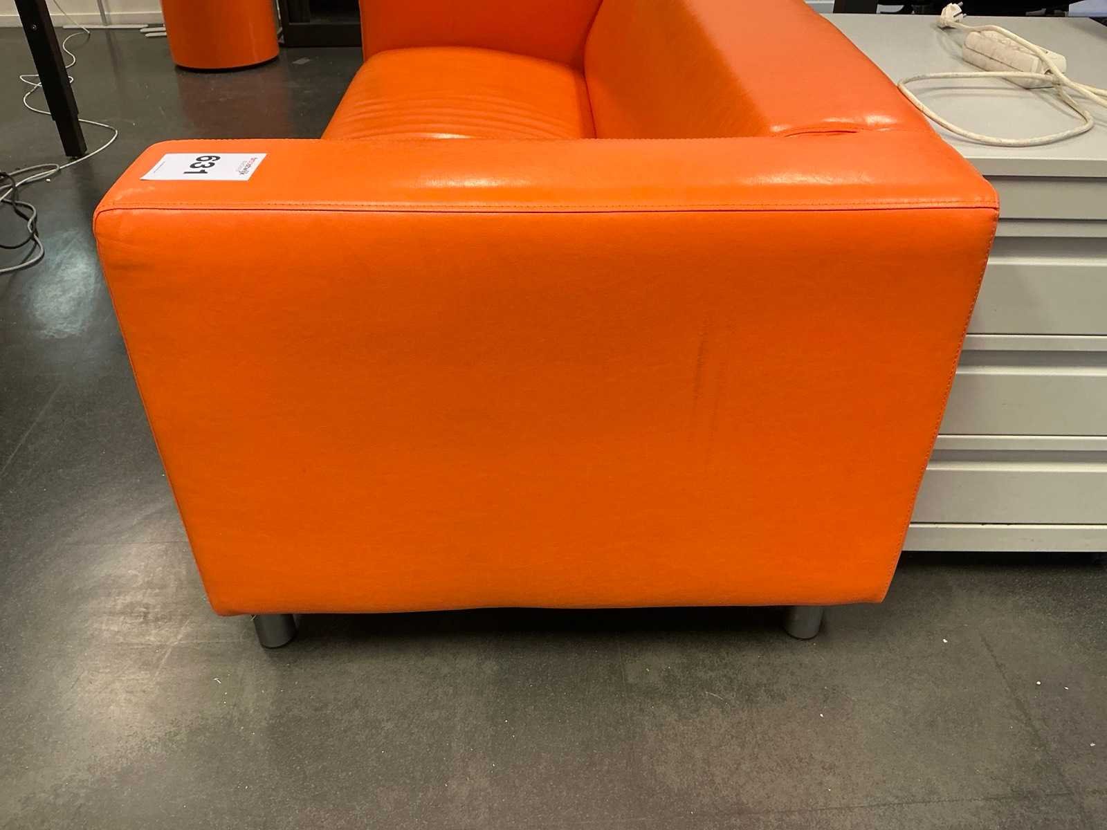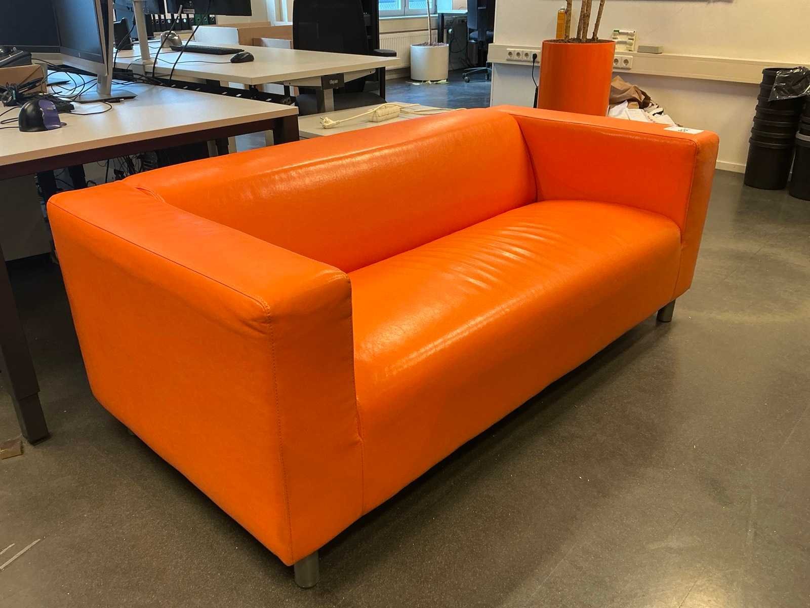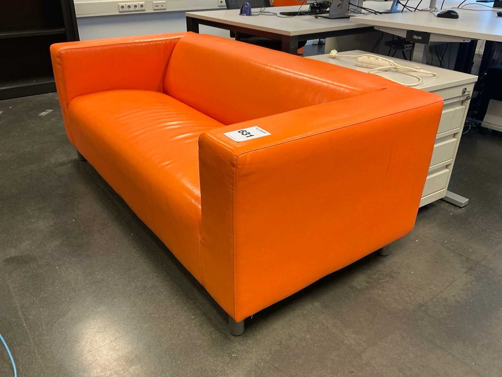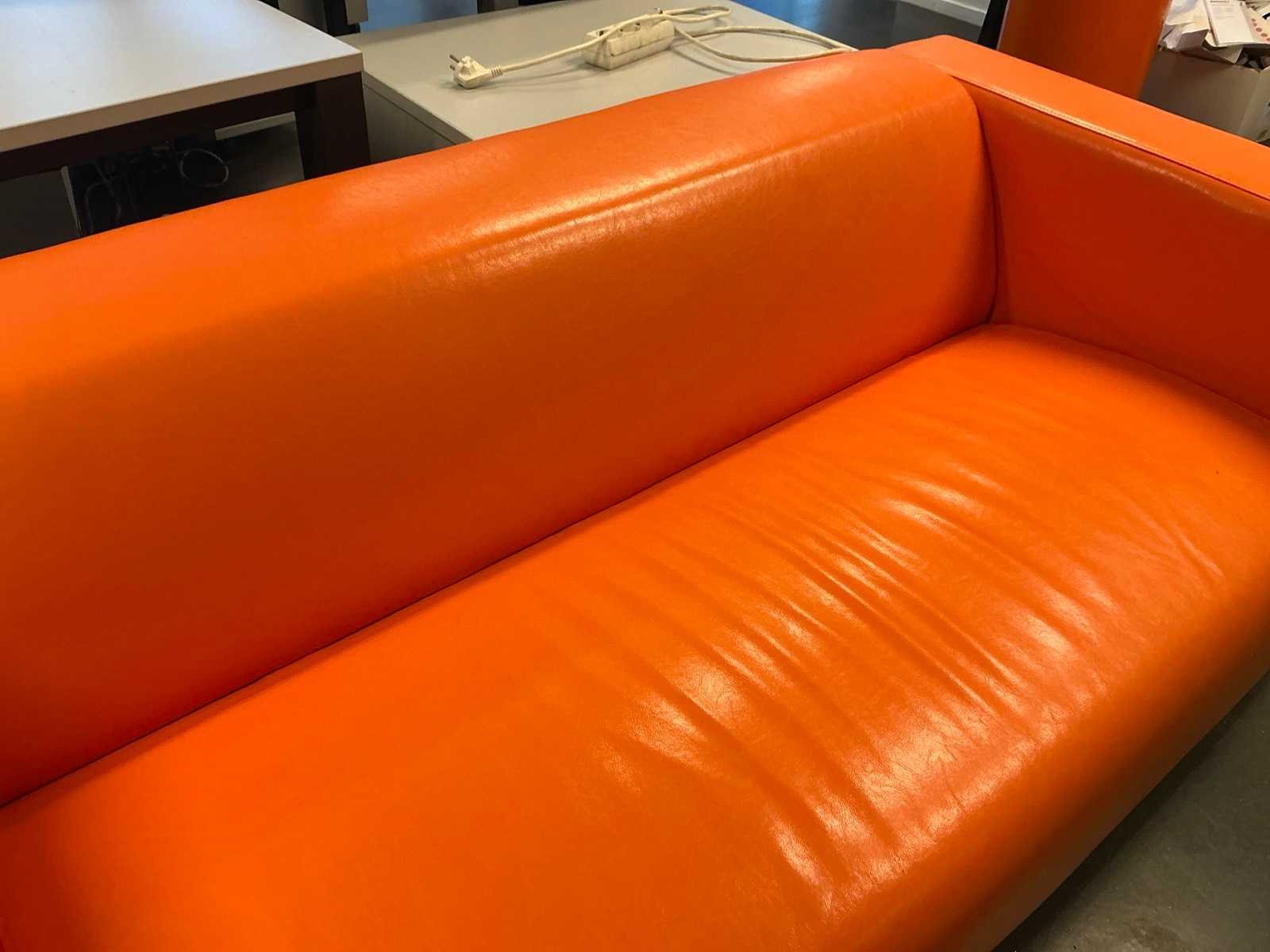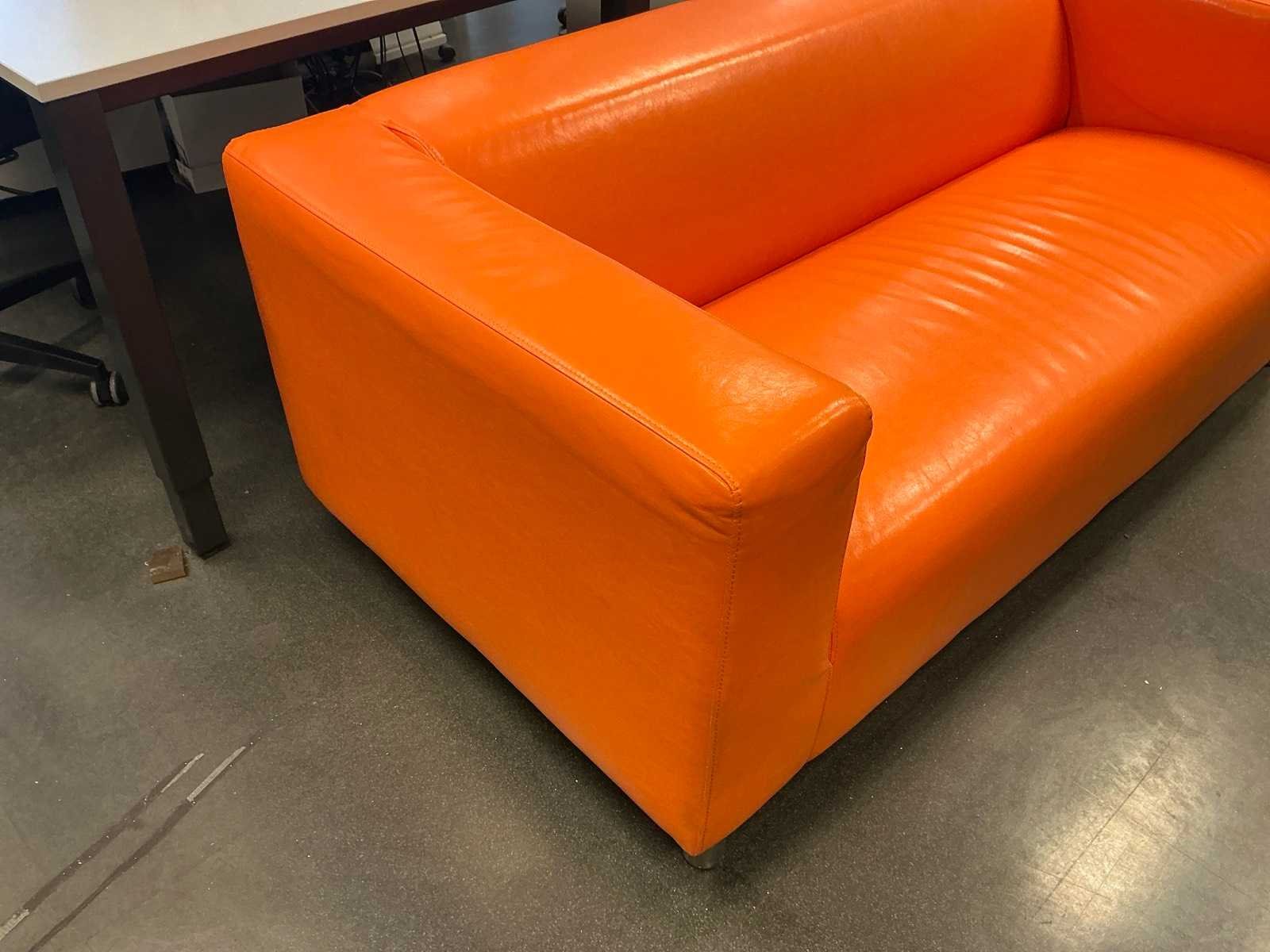 Nee Zitplaatsen: 2 Kleur: Oranje Lengte: 178cm Breedte: 86cm Hoogte: 66cm Zithoogte: 40cm Materiaal: Lederlook