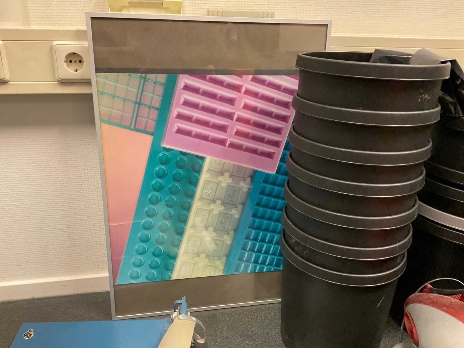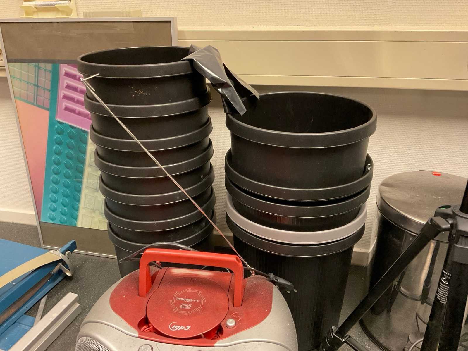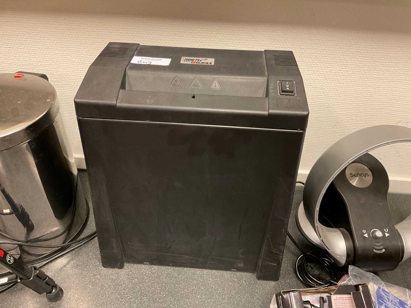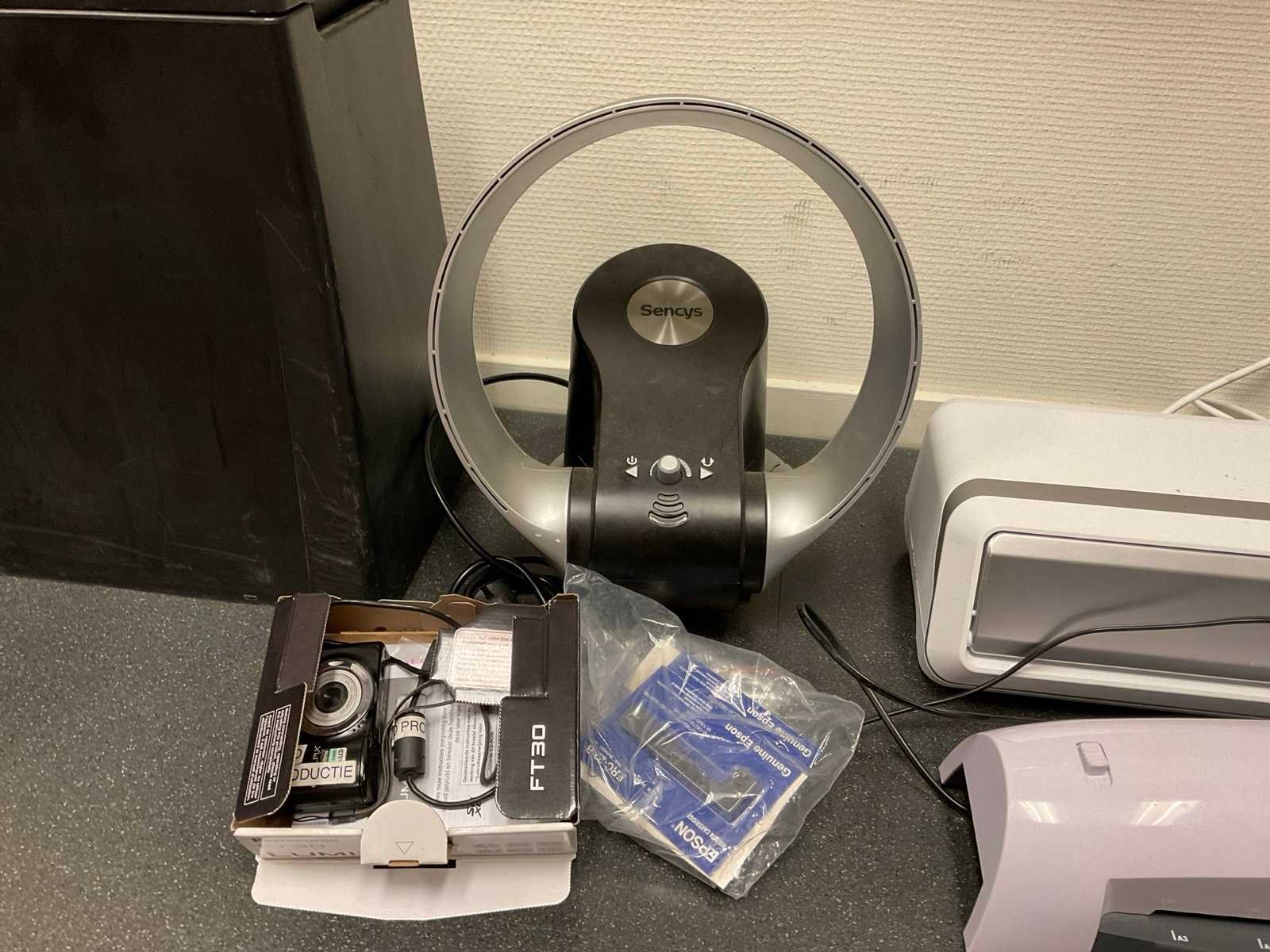 Bestaande uit onder andere: -Lamineer apparaten van Fellowes -Papierversnipperaar van Dahle -Camerastandaard -Papiersnijder van Dahle -Radio -Voetenstadaard -Prullenbakken -Lijst Nee