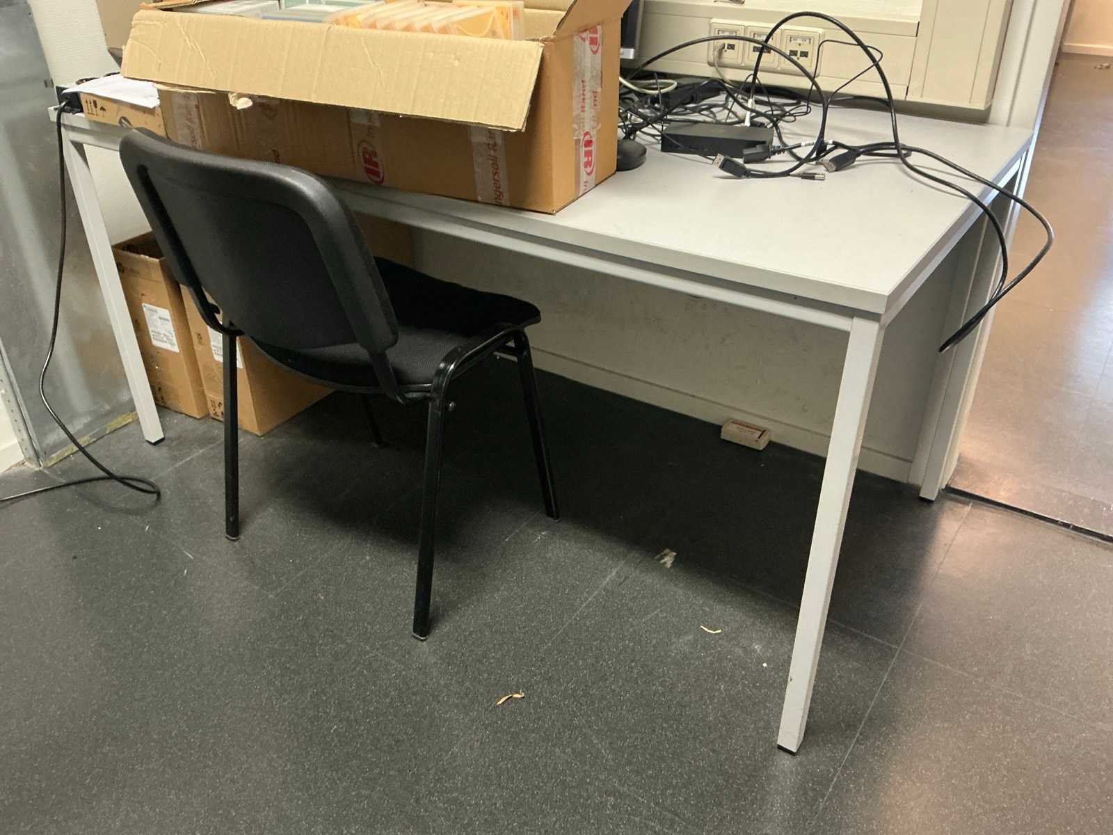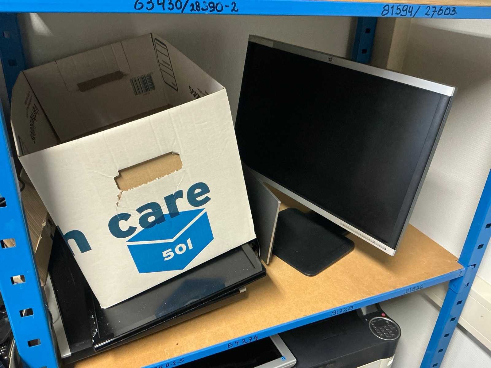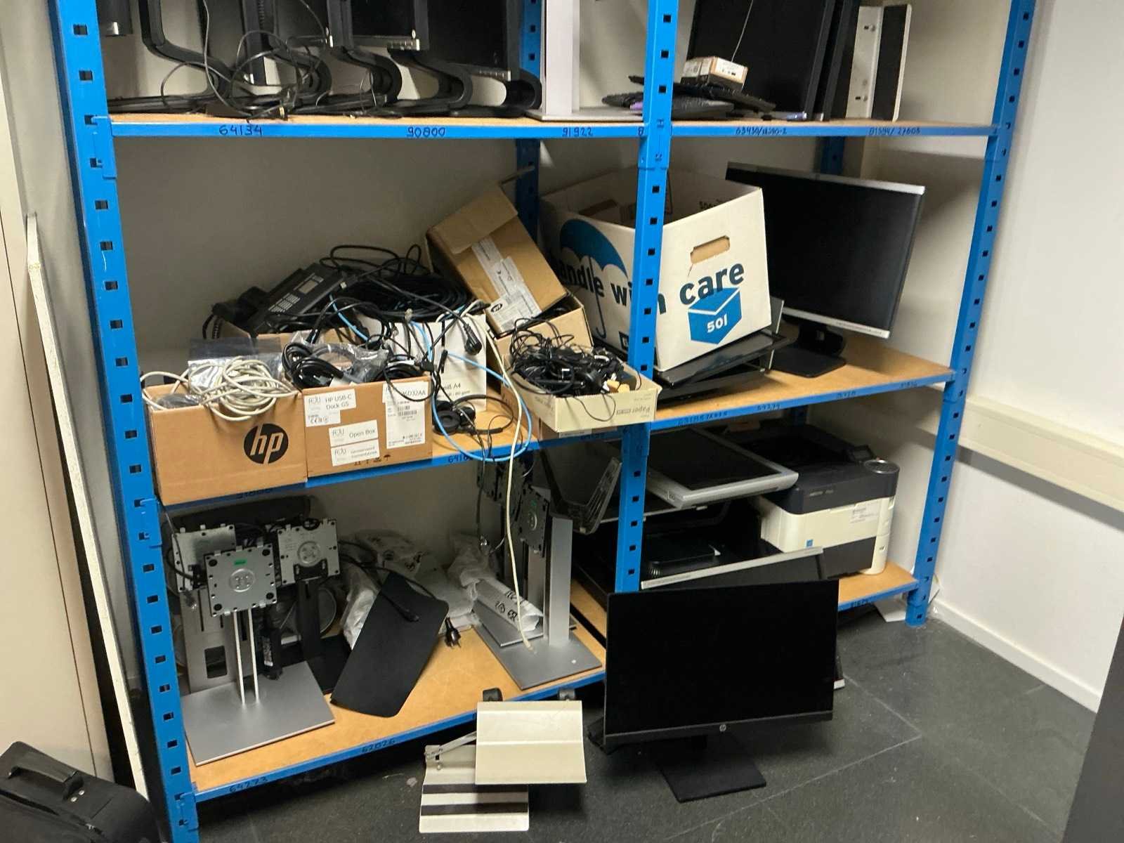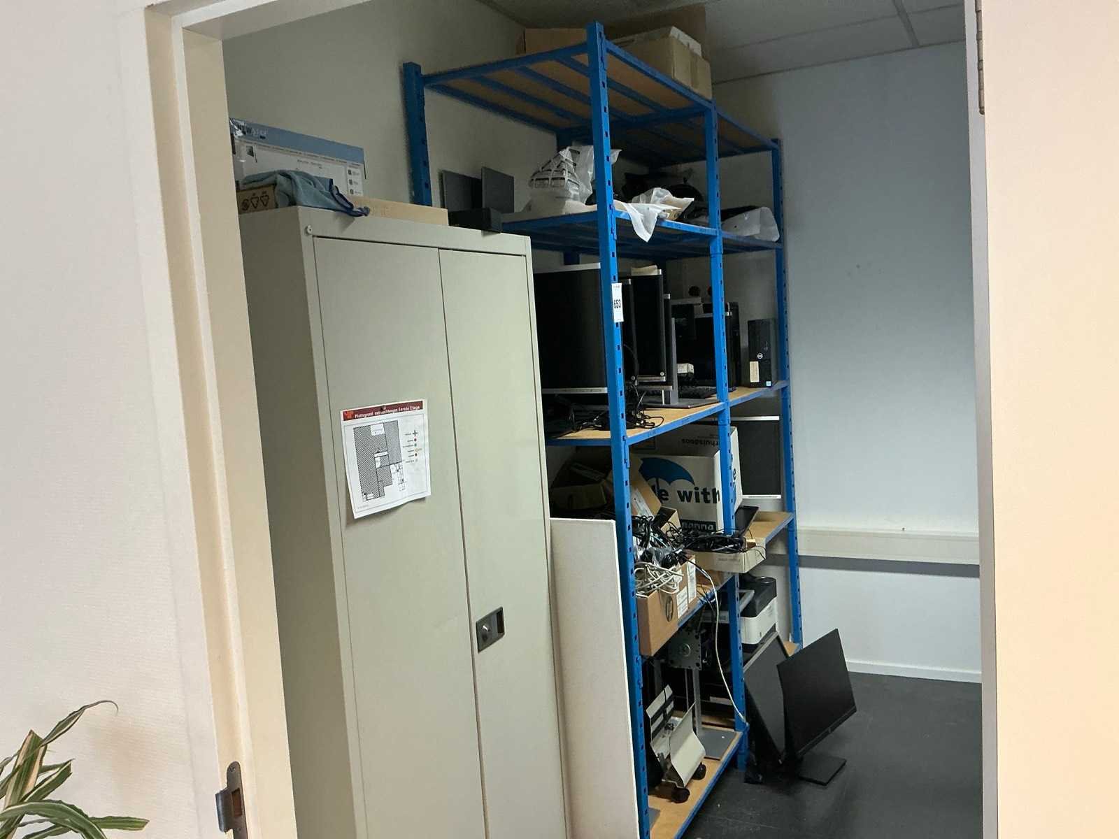 Archiefkast 89x43x195cm, 1 tafel 160x80cm, stoel, stelling met diverse randapparatuur (o.a. monitoren, toetsenborden etc) Nee