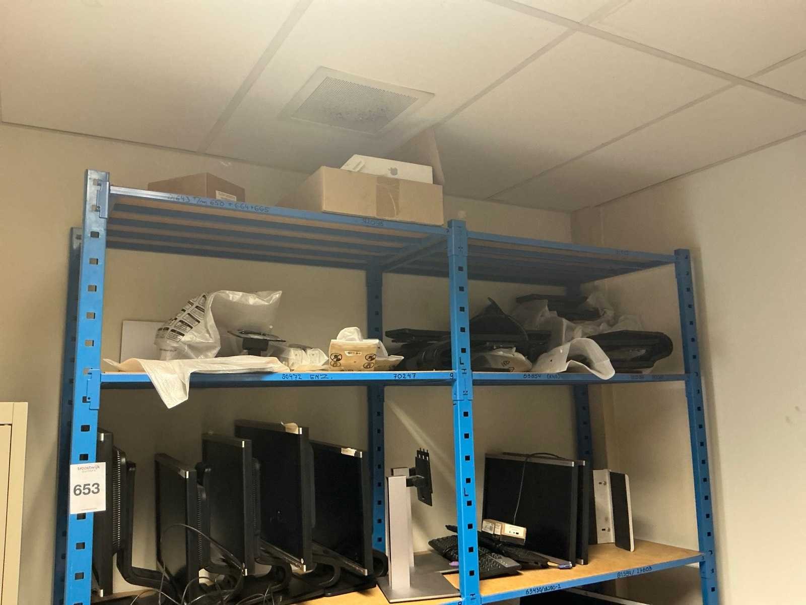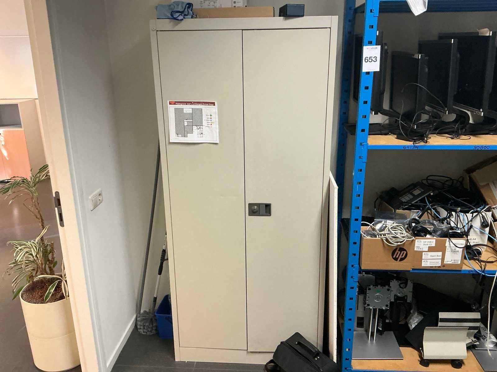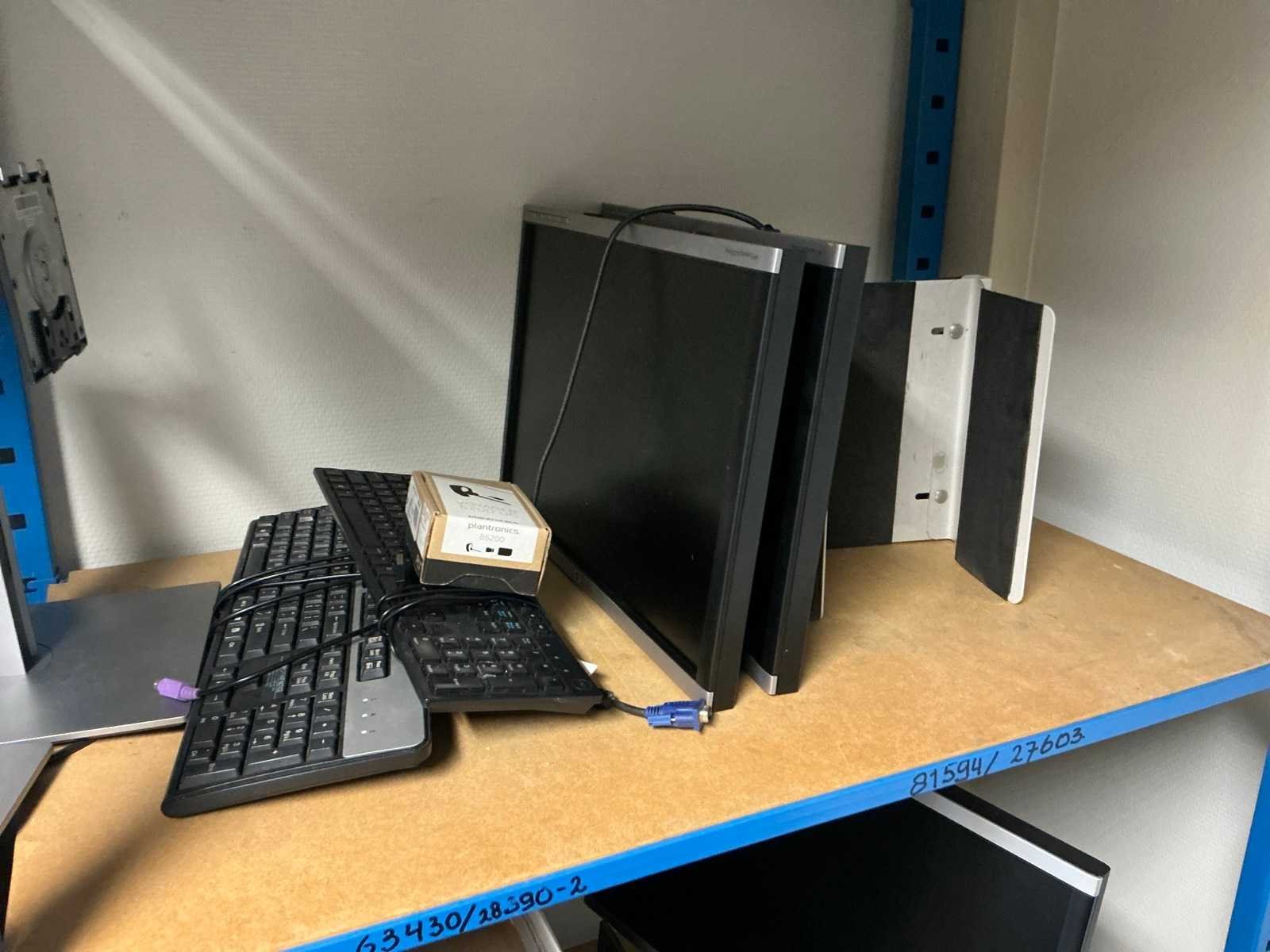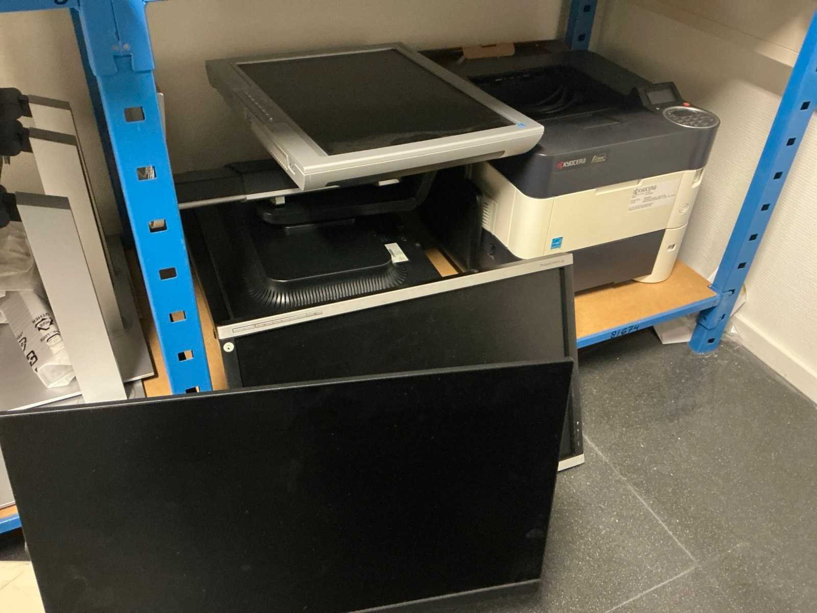 Archiefkast 89x43x195cm, 1 tafel 160x80cm, stoel, stelling met diverse randapparatuur (o.a. monitoren, toetsenborden etc) Nee