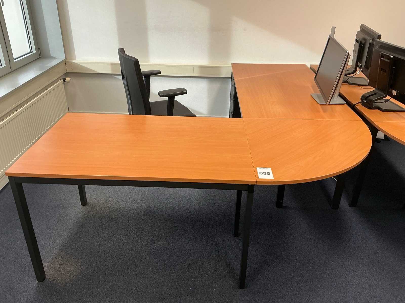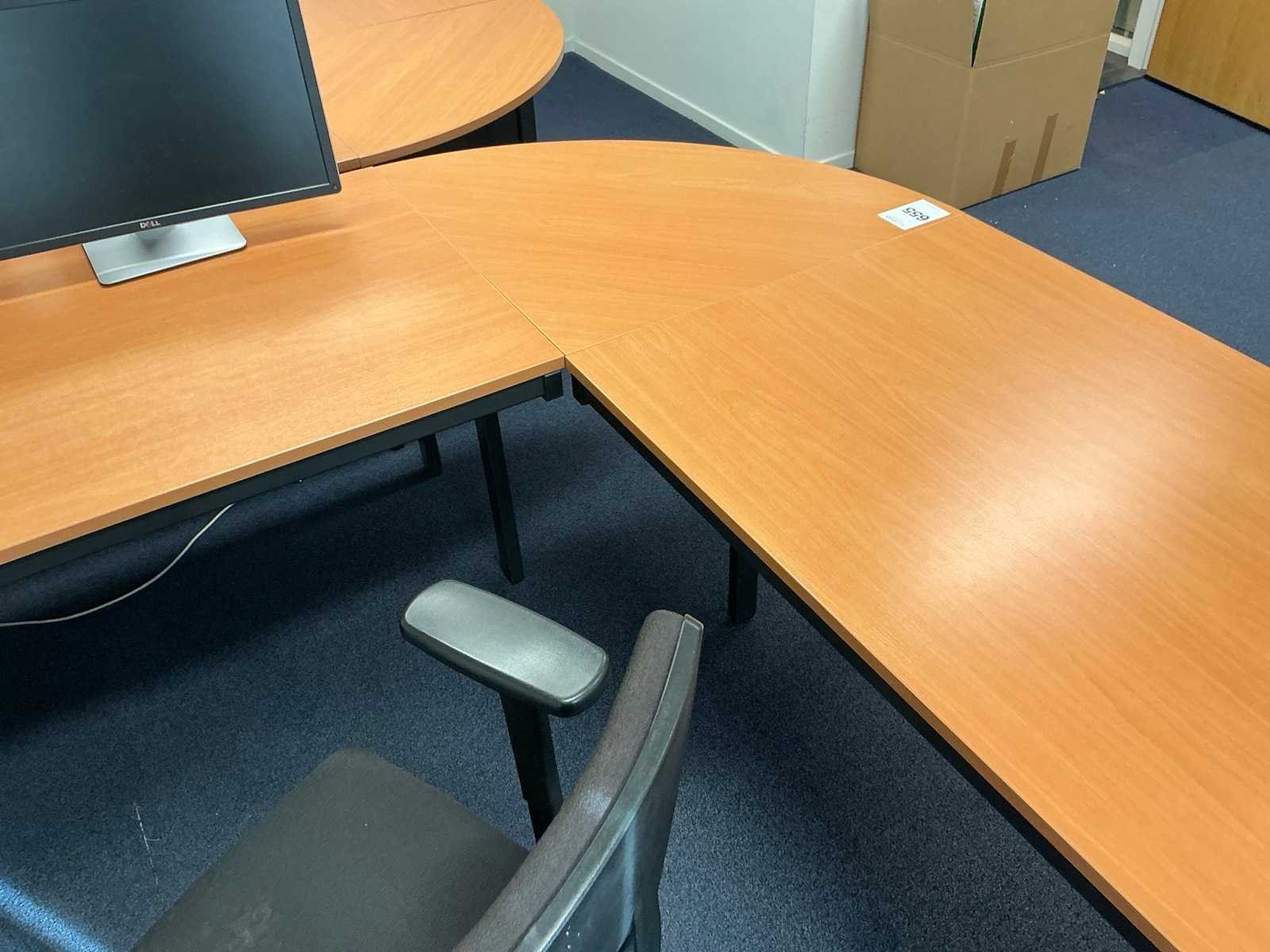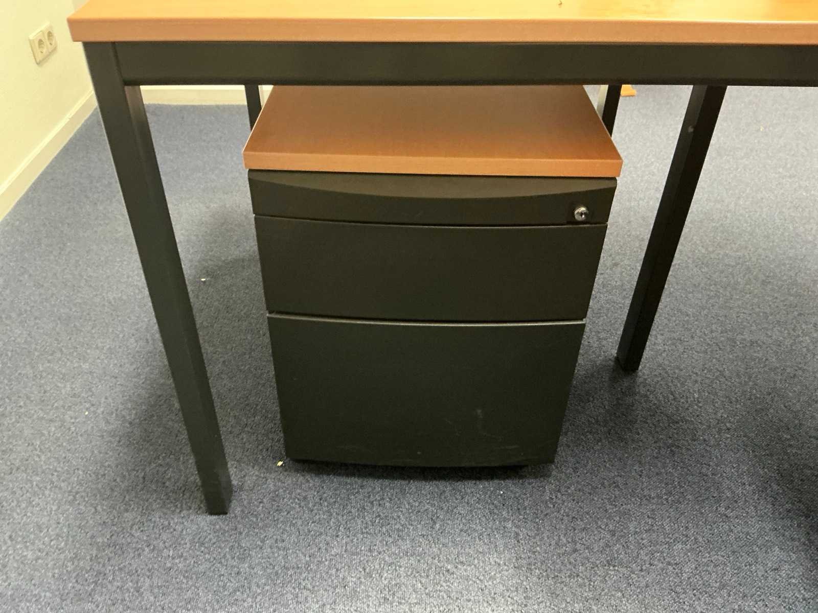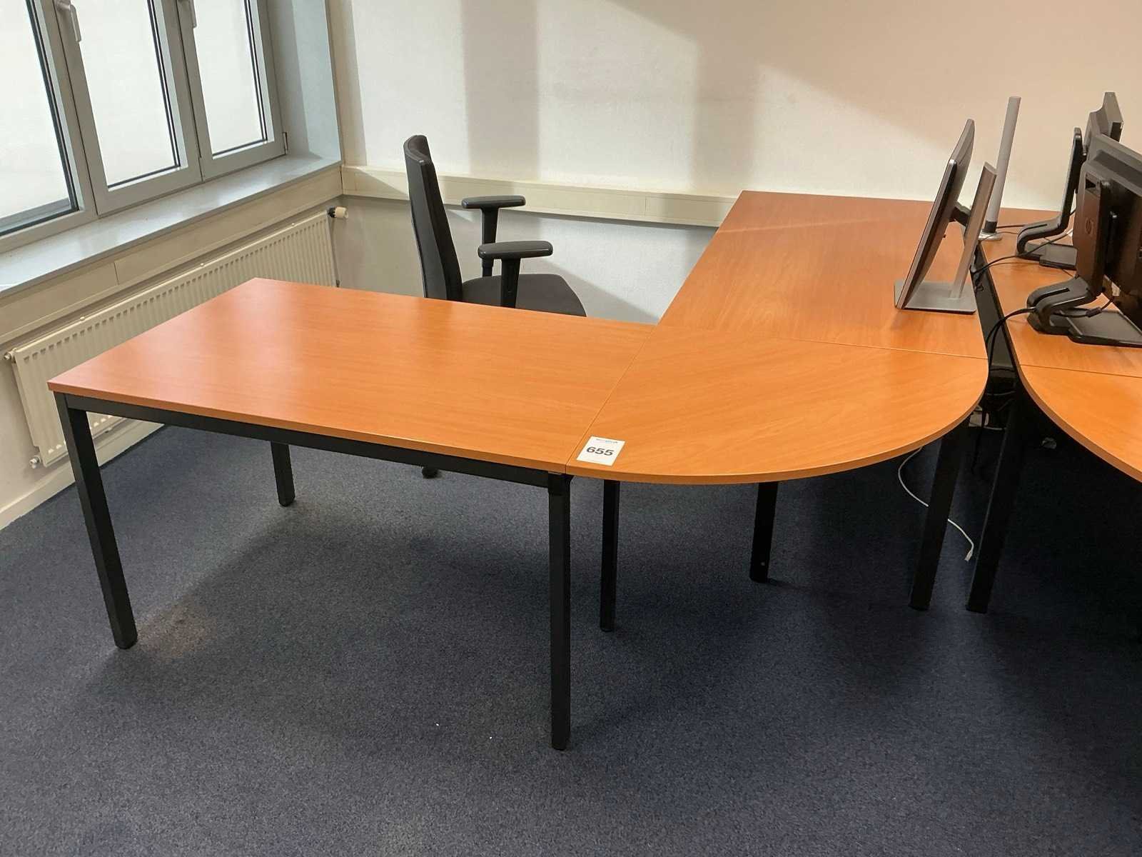 Bestaande uit 2x hoekbureau 240x200x80x75cm met bureaustoel, 1 kapstok, 1 archiefkast, 1x Dell monitor P2714ht, 2x HP LA2405x Nee