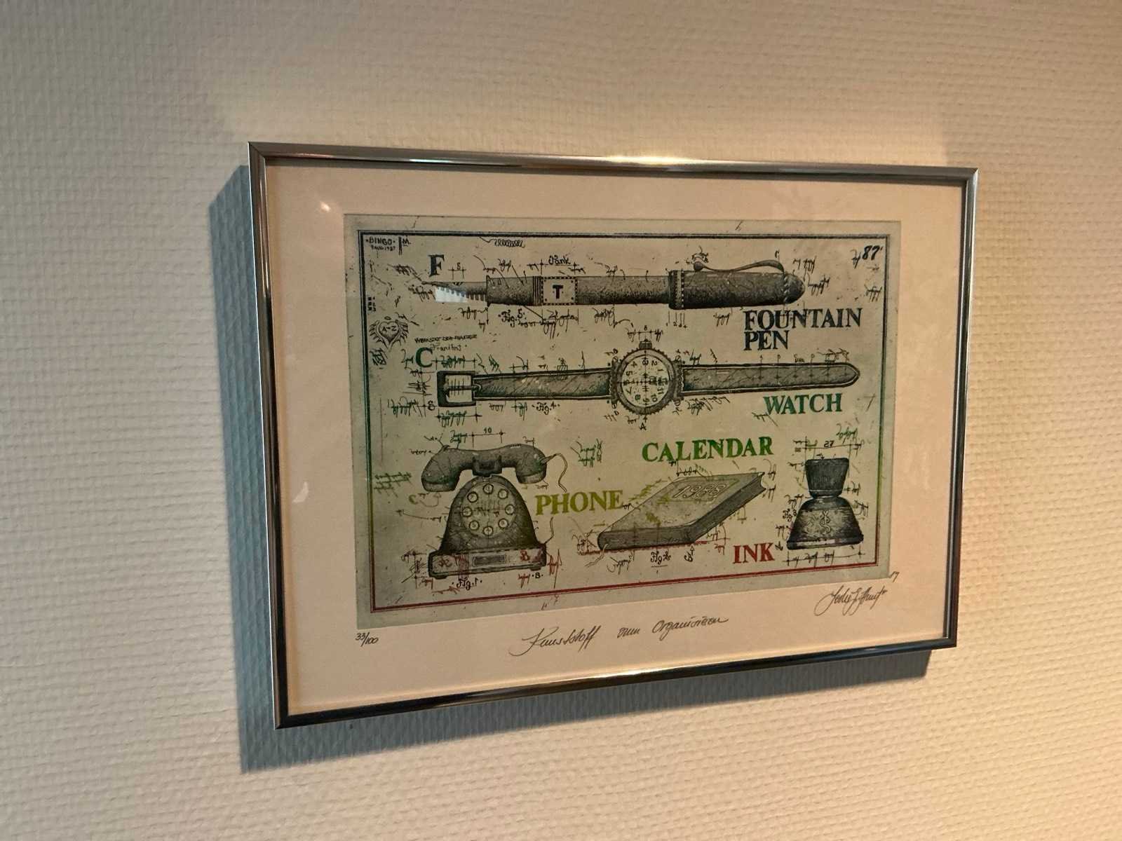 Diverse gesigneerde wanddecoratie in lijst, van diverse kunstenaars. Afmetingen 38x27cm (3x), 31x41cm (2x), 49x61cm (1x), 70x50cm (1x) Nee