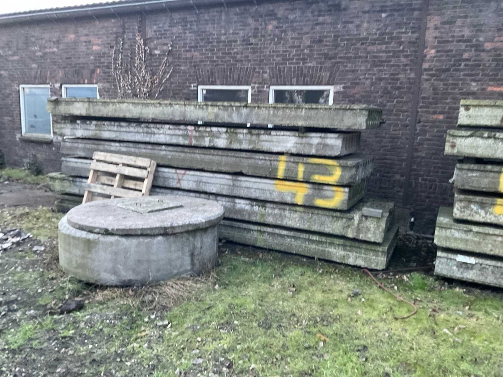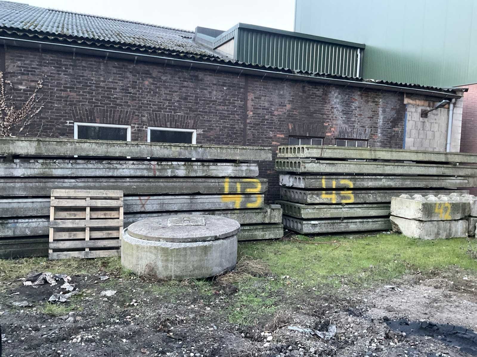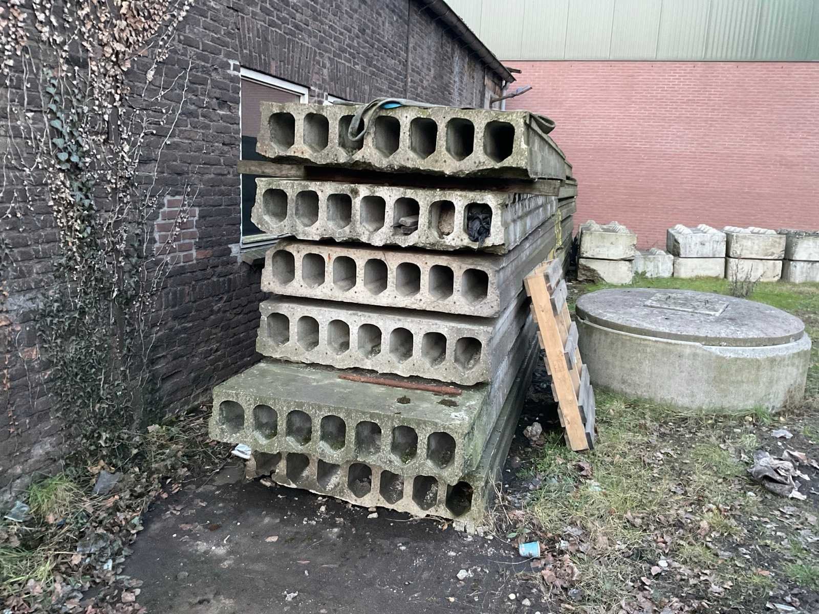 Diverselengtes vloerdelen van beton, langste lengte ca. 500 cm, breedte ca. 117cm, hoogte ca. 25 cm. Nee Materiaal: Beton