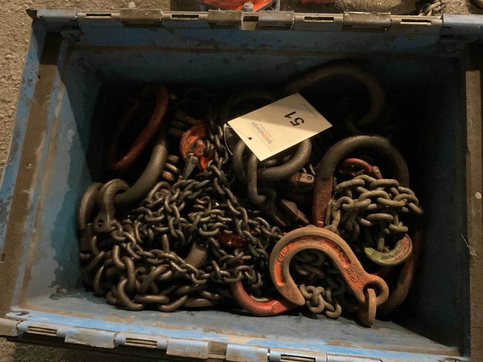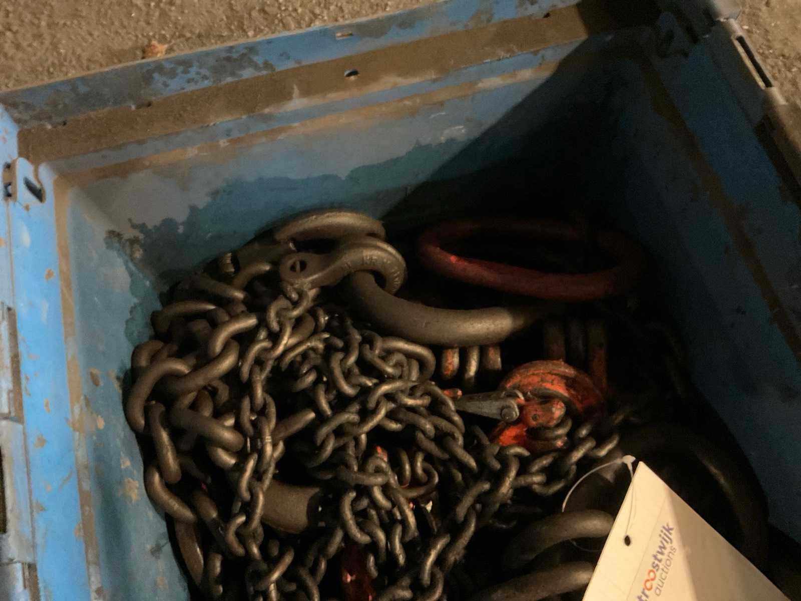 Diverse hijskettingen in krat. Nee