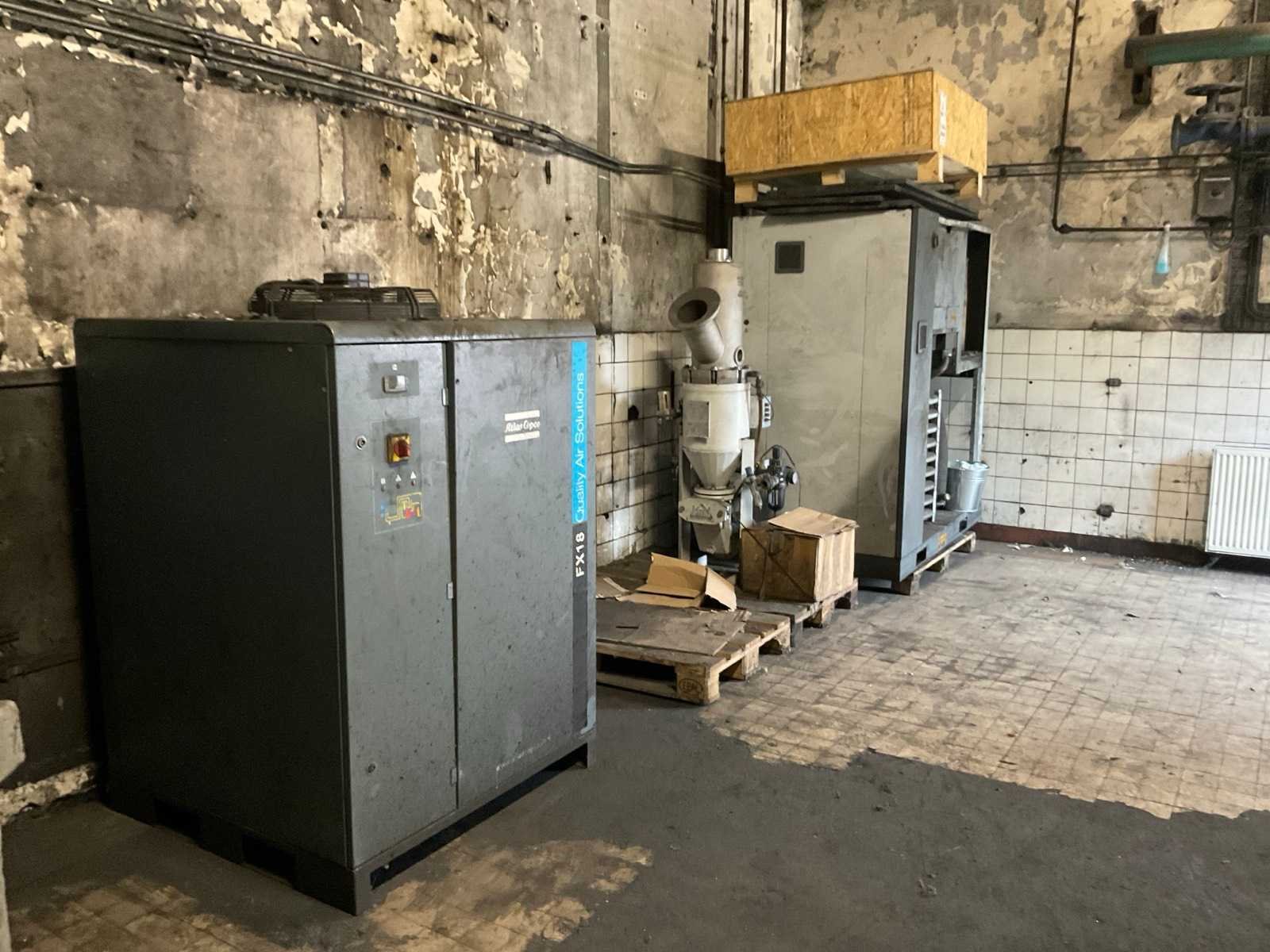 Inhoud compressorruimte bestaande uit 1 Atlas Copco compressor, type: GA110VSD+ff, 2x type: GA45, Rootselaar luchttank, inhoud 11420 liter, inclusief diverse accessoires w.o. olieafscheiders, luchtdroger etc. Nee Merk: AtlasCopco Type: GA110VSD+ff, GA45 Bouwjaar: 2019 Vermogen: 110kW Buffertank inhoud: 11420l Luchtdroger: true Aansluiting: 400V