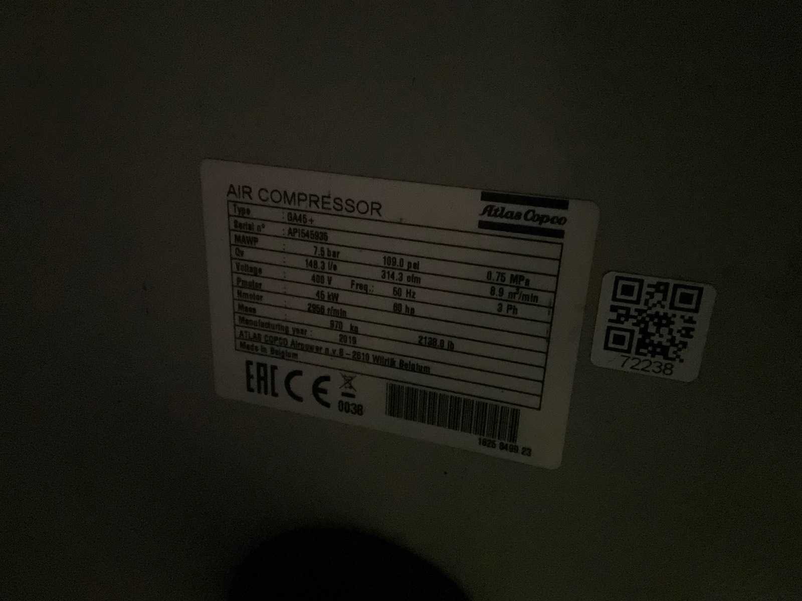 2019 atlascopco ga110vsd+ff, ga45 inhoud compressorruimte