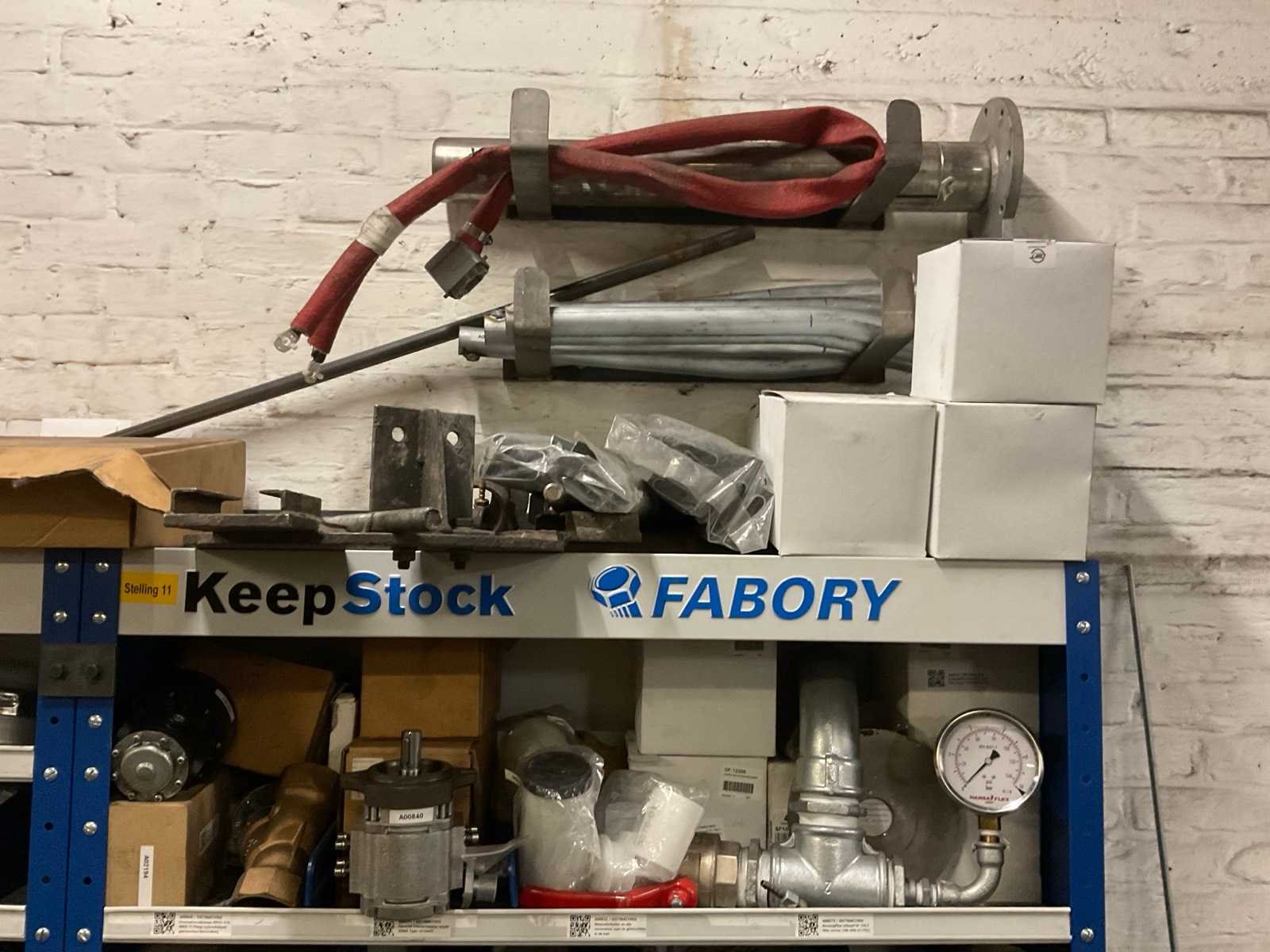 In 2 kasten en los,bestaande uit o.a. trechterhouder, afdekplaten, steunen, bevestigingsmaterialen, dosseerders, slang etc, inclusief 2 ‘Fabory’ kasten. Nee